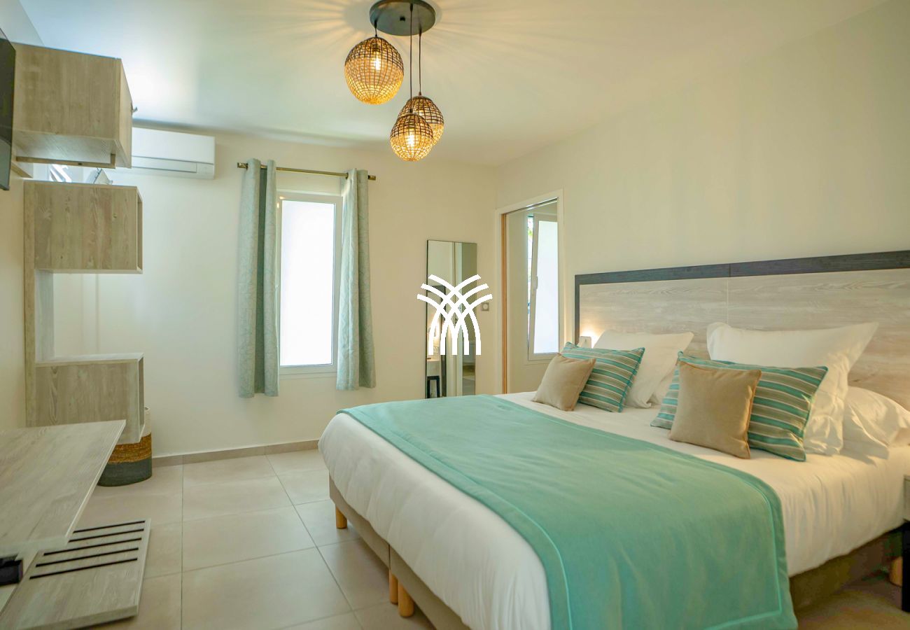 La Villa Tanya dispose de quatre chambres climatisées, réparties sur deux niveaux, décorées avec goût et douceur. Les suites parentales, dotées de lits king size et de salles d’eau privatives, offrent une atmosphère apaisante et des vues sublimes sur la mer ou le jardin tropical. Les deux autres chambres, modulables selon vos besoins, conviennent parfaitement à une famille avec enfants ou à un groupe d’amis souhaitant partager un séjour d’exception.