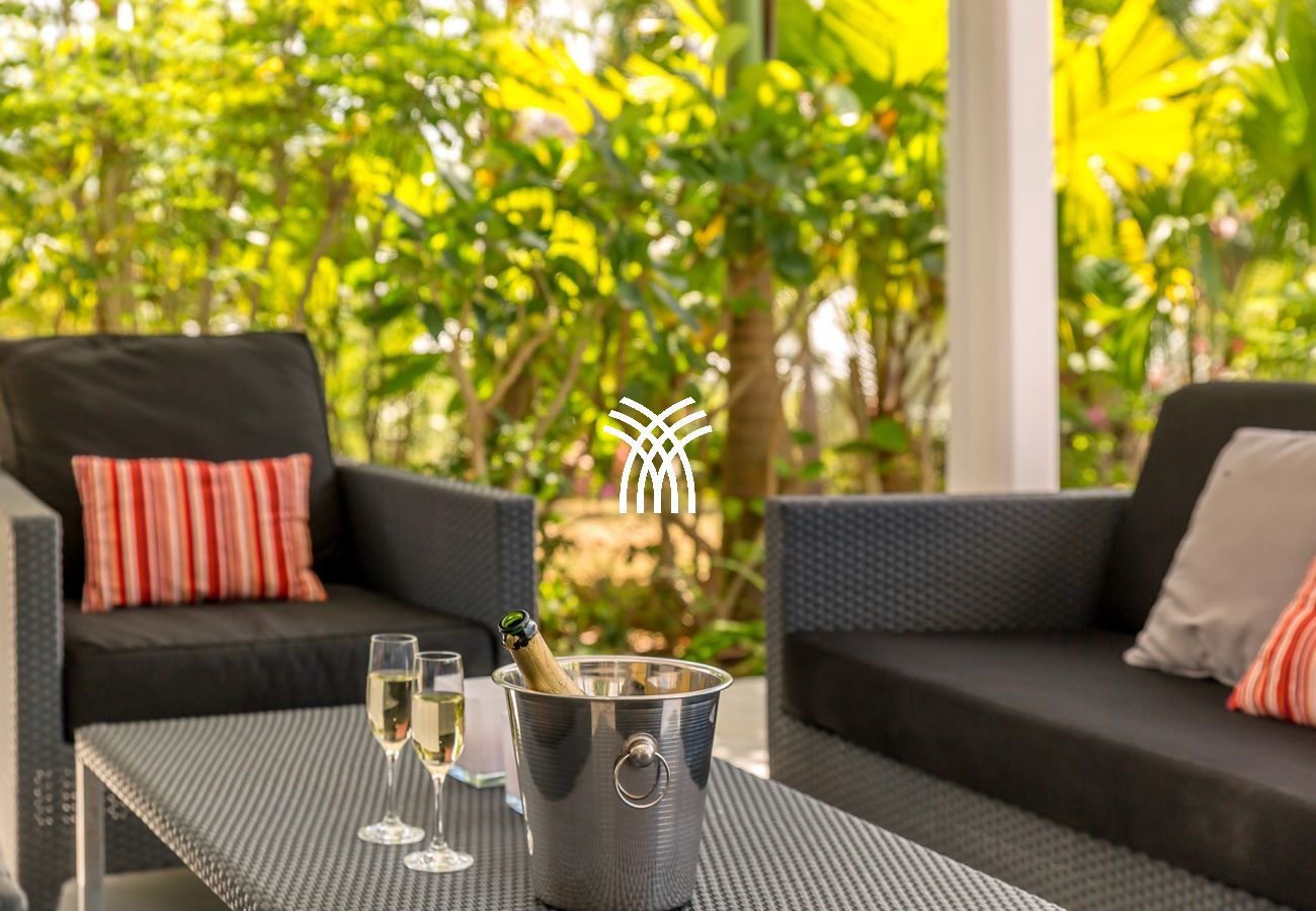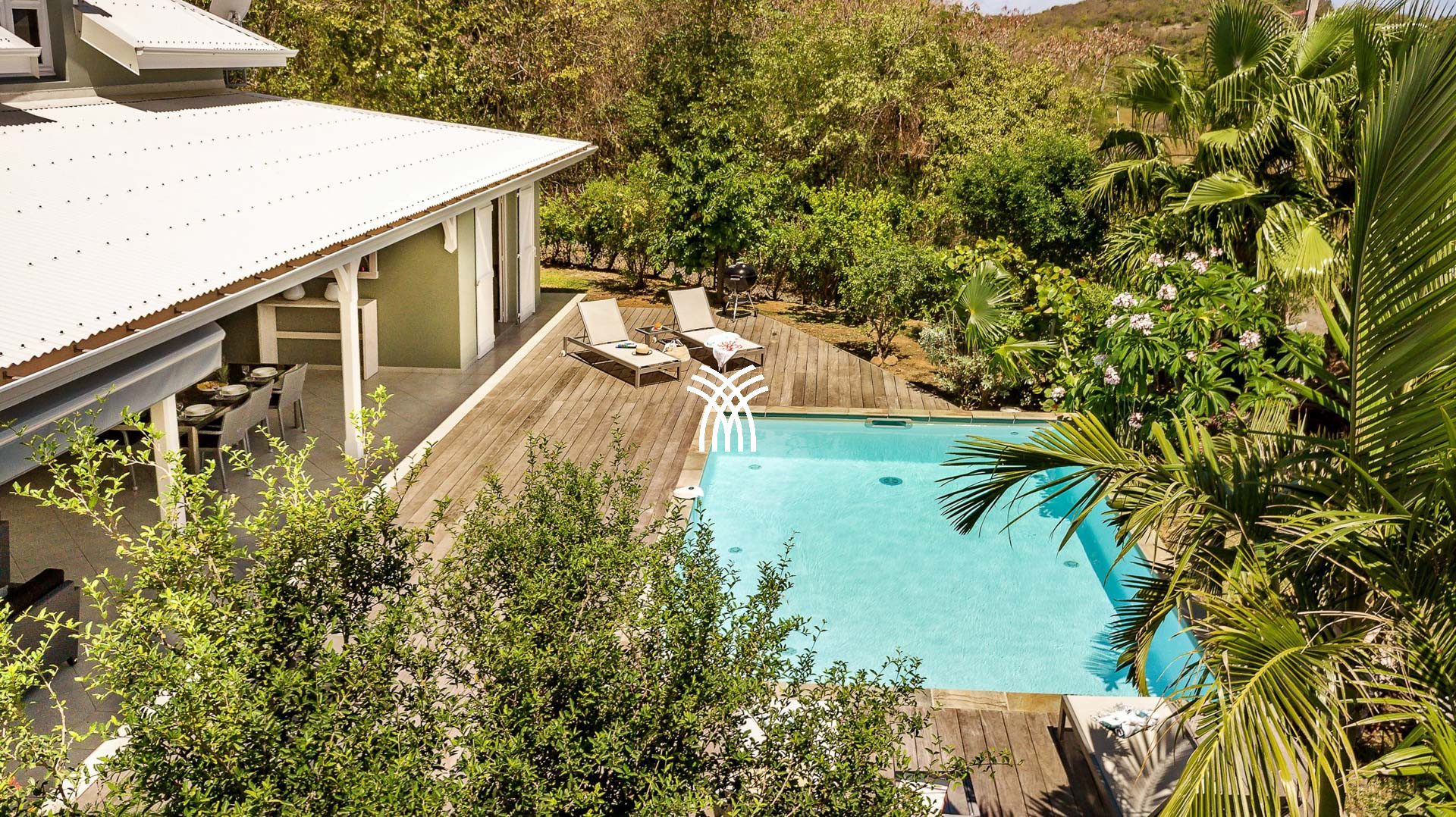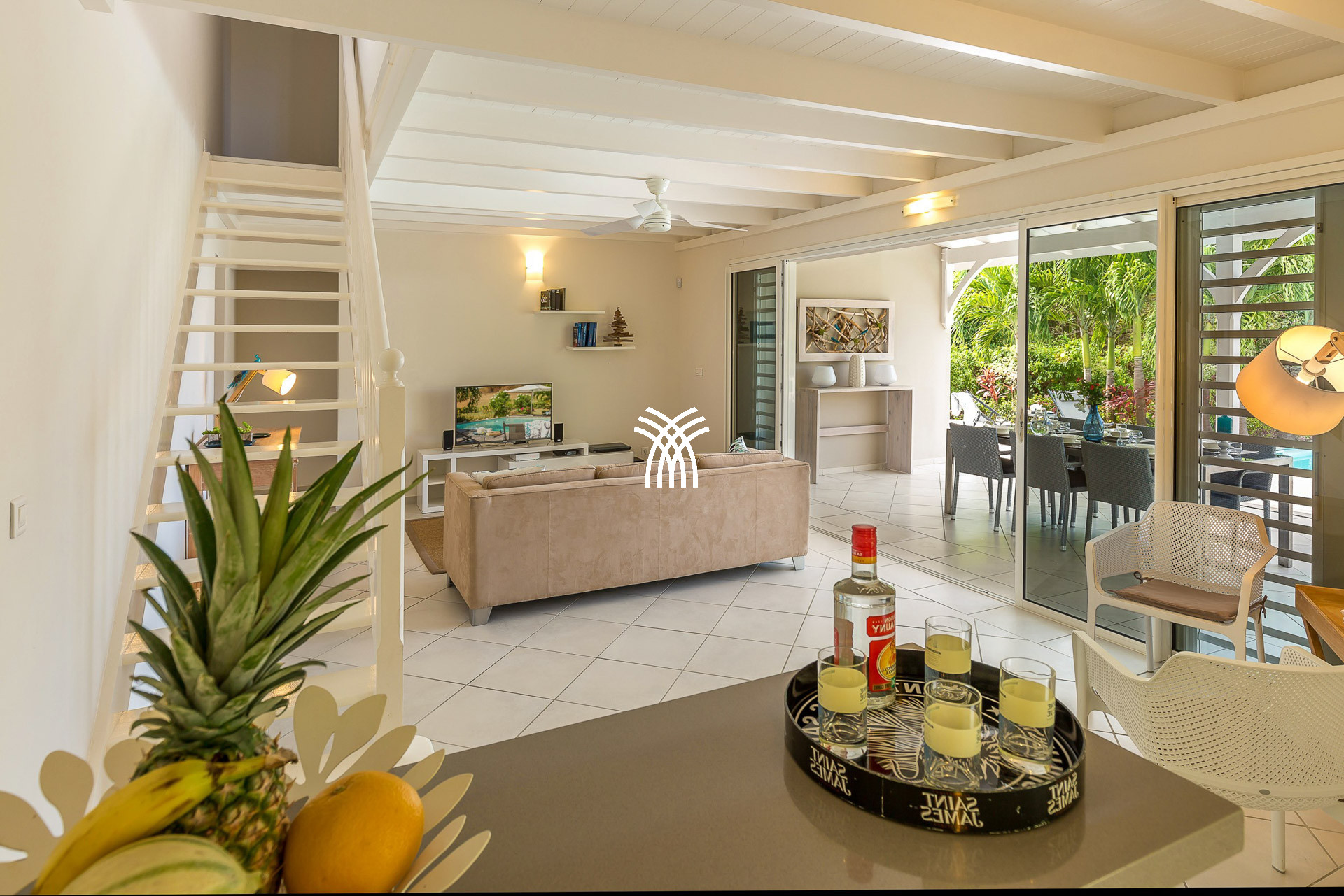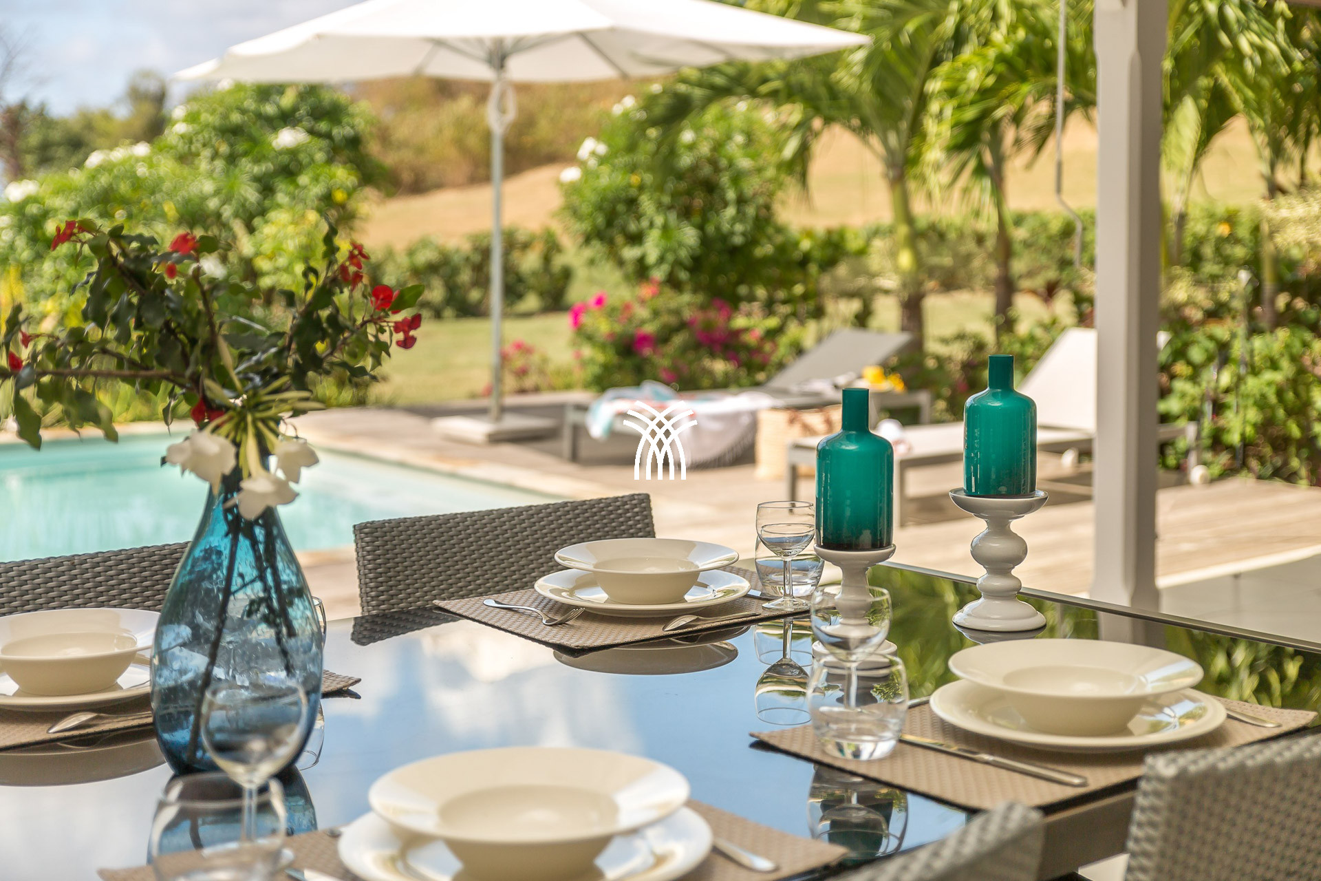 À l’extérieur, votre piscine privée fait face à une terrasse de 41 m² d’où vous pourrez jouir d’une vue apaisante sur la campagne et la mer tout en profitant d’un barbecue sous les rayons du soleil et de la douce chaleur des Antilles.