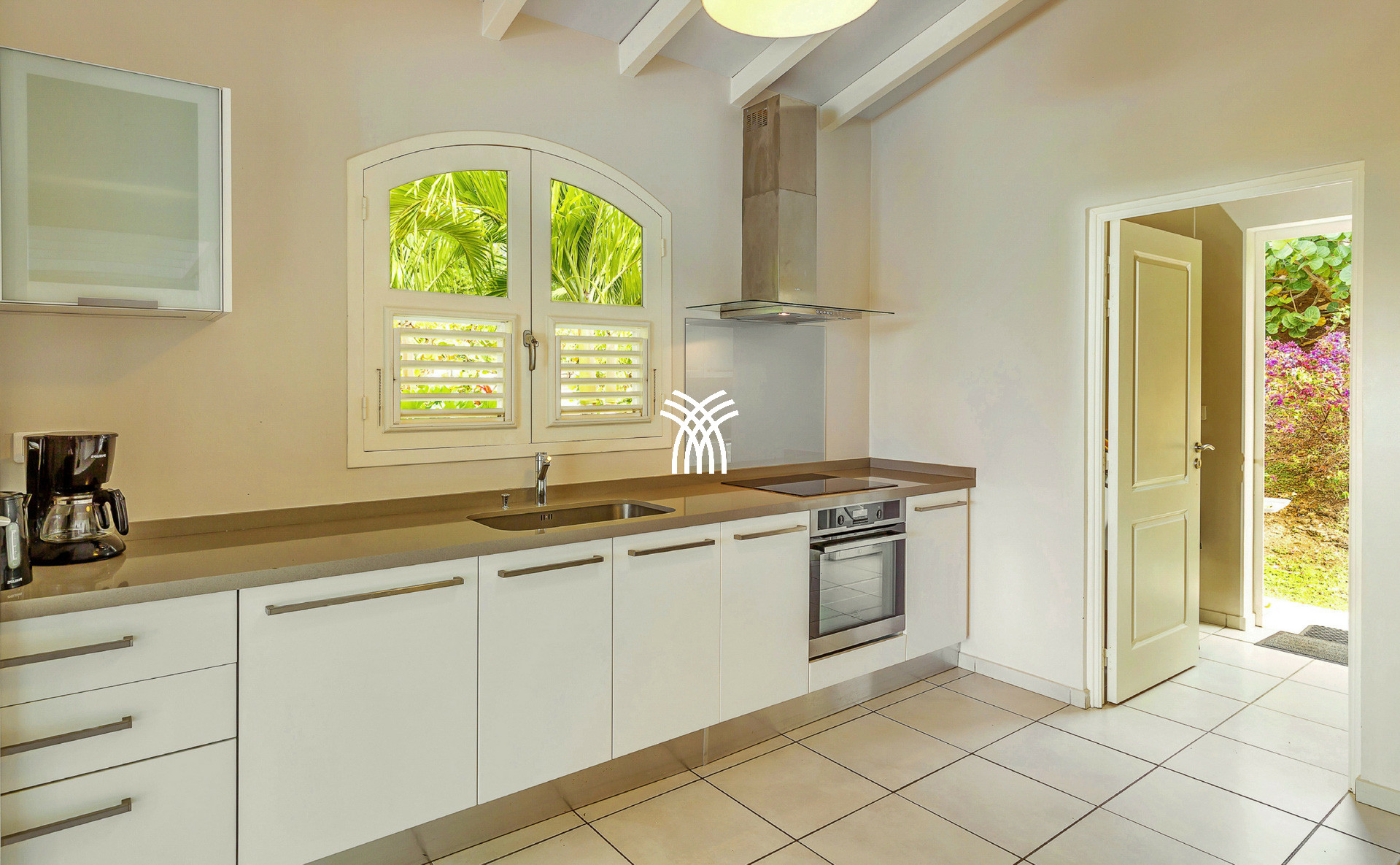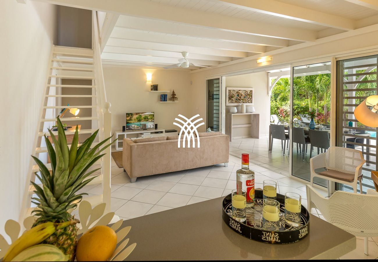 Lumineux et spacieux, le rez-de-chaussée est composé d’une cuisine entièrement équipée qui ouvre sur un extérieur présentant une piscine privée d’où vous pourrez jouir d’une vue apaisante sur la campagne tout en profitant d’un barbecue sous les rayons du soleil et de la douce chaleur des Antilles. La villa Jade Palm Martinique, mêlant modernité et touche créole, fera le bonheur des voyageurs en quête de tranquillité.