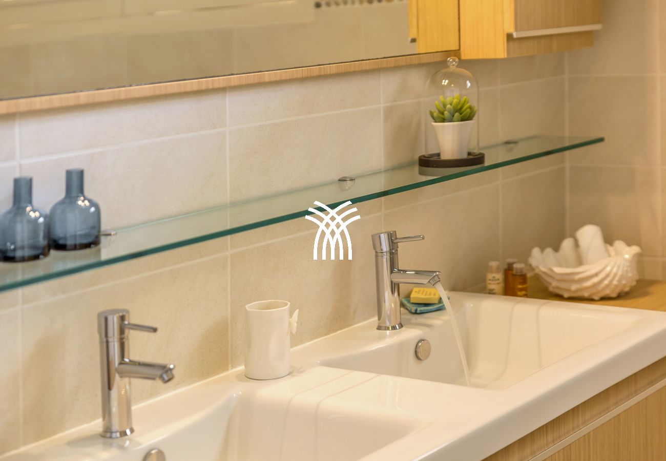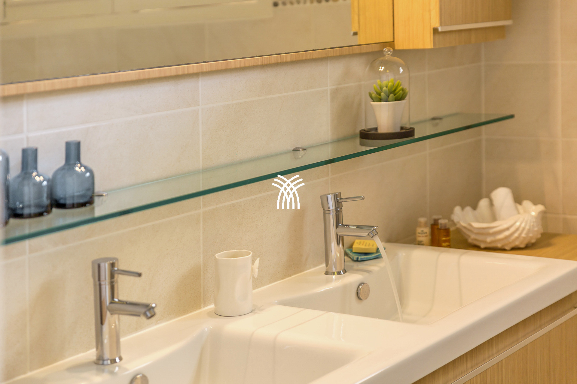 Coté logement, Trois chambres prennent place au rez-de-chaussée ; une avec salle de bain attenante et ouverture sur la terrasse. Les deux autres se font face et sont séparées par une salle de bain et un WC indépendant. A l’étage, une grande chambre dispose d’une salle de bain et d’un dressing.