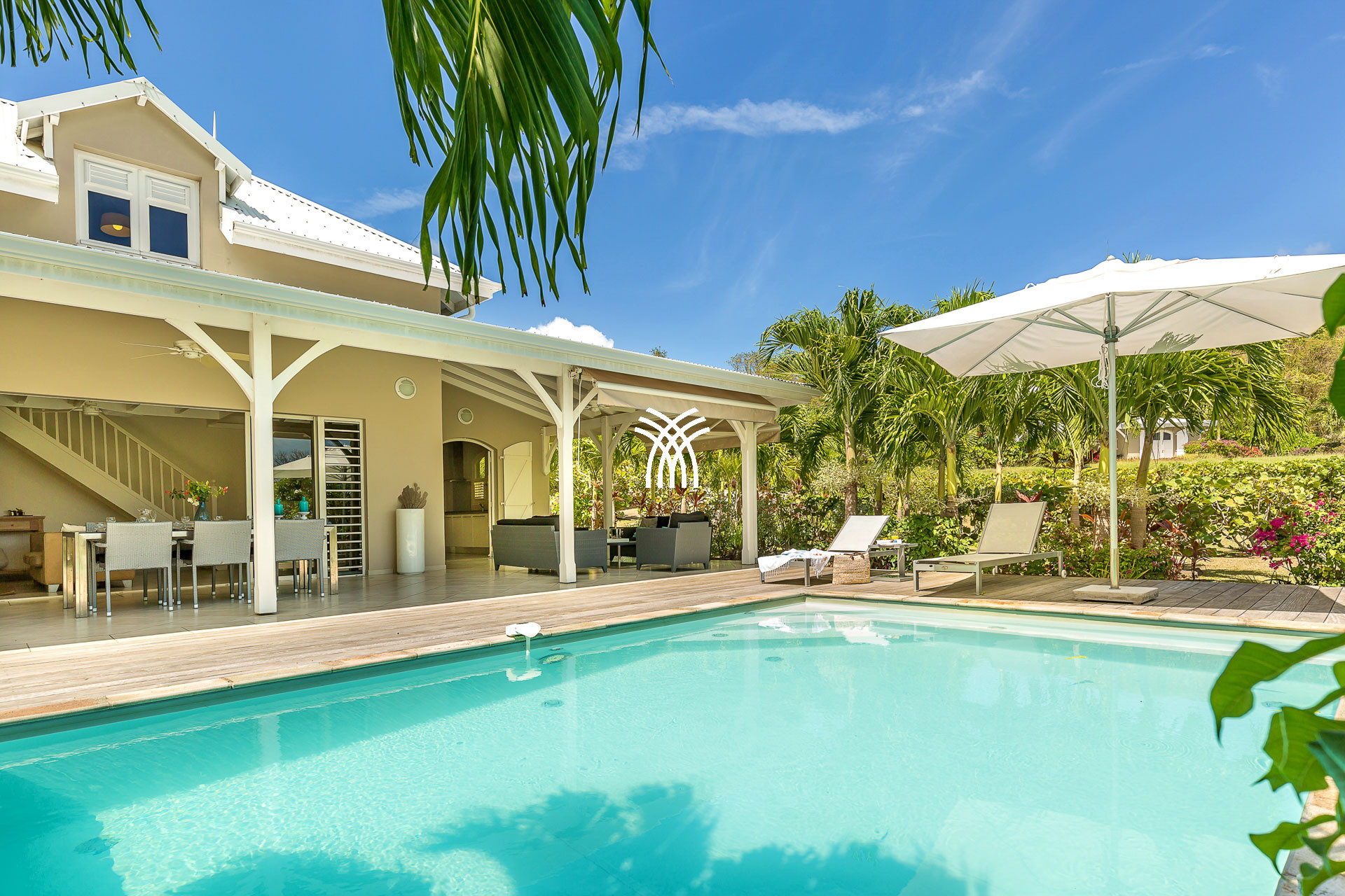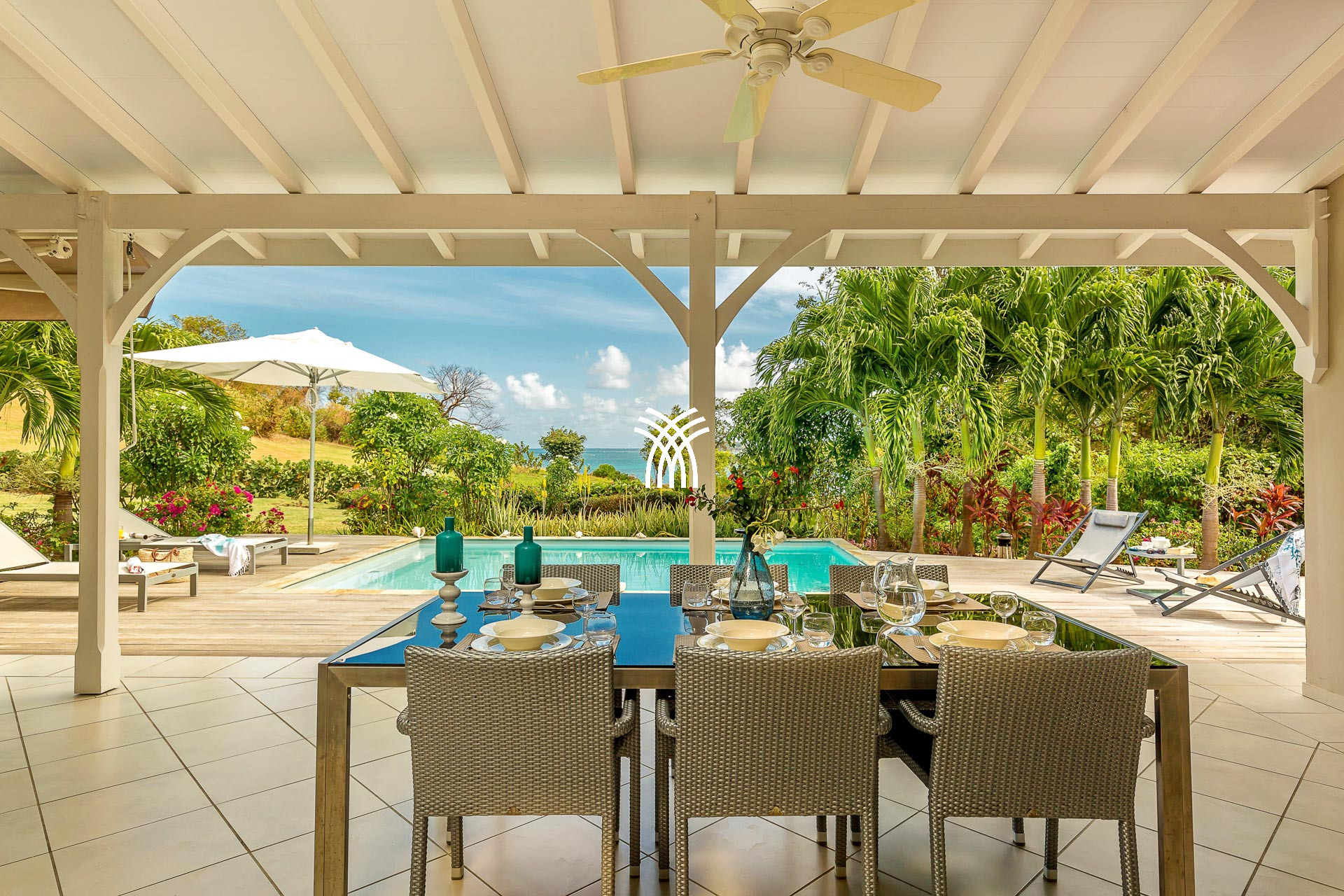 À l’extérieur, votre piscine privée fait face à une terrasse de 41 m² d’où vous pourrez jouir d’une vue apaisante sur la campagne et la mer tout en profitant d’un barbecue sous les rayons du soleil et de la douce chaleur des Antilles.