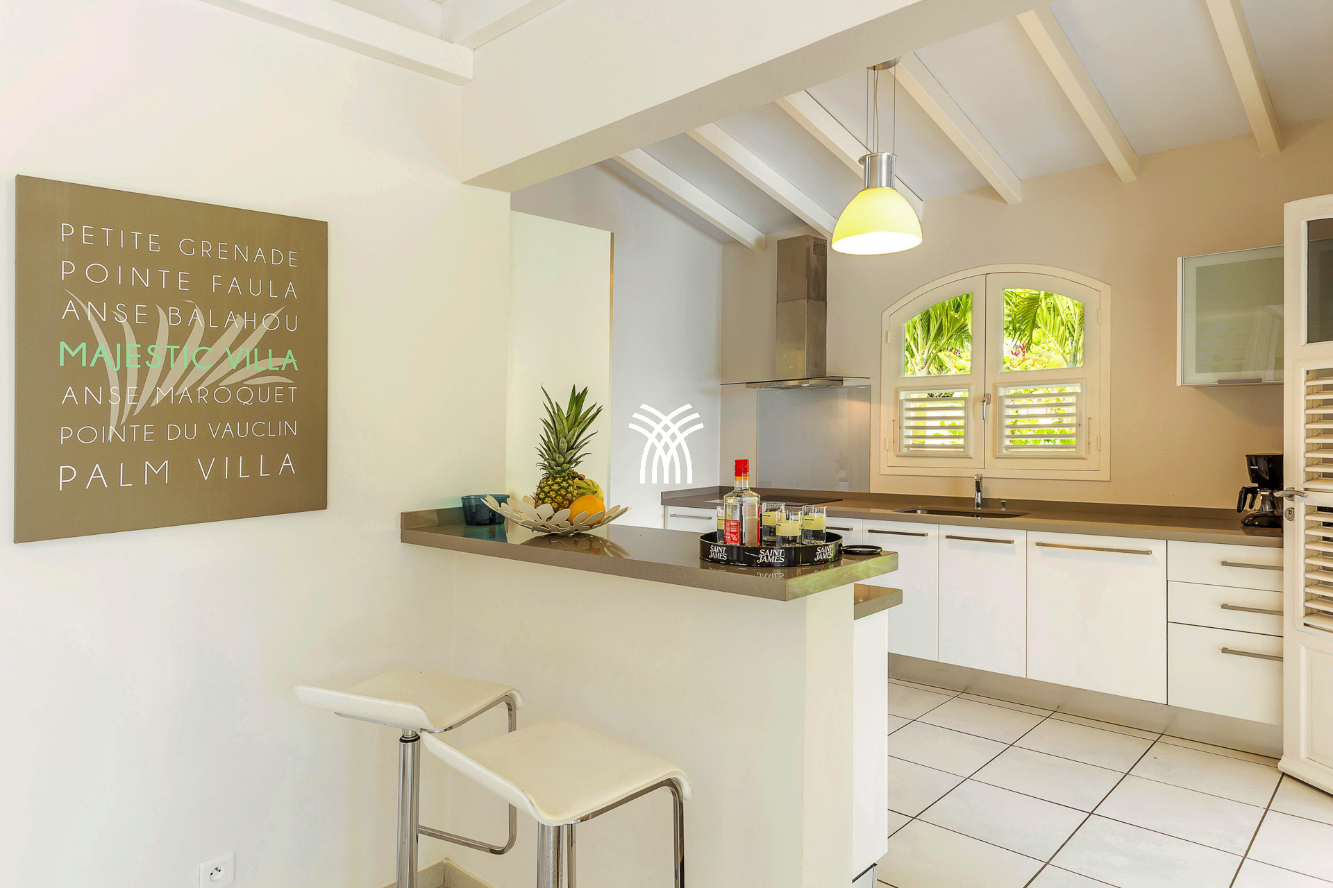 Lumineux et spacieux, le rez-de-chaussée est composé d’une cuisine entièrement équipée qui ouvre sur un extérieur présentant une piscine privée d’où vous pourrez jouir d’une vue apaisante sur la mer tout en profitant d’un barbecue sous les rayons du soleil et de la douce chaleur des Antilles. La villa Majestic Palm Martinique, mêlant modernité et touche créole, fera le bonheur des voyageurs en quête de tranquillité.