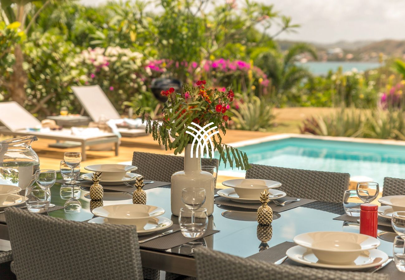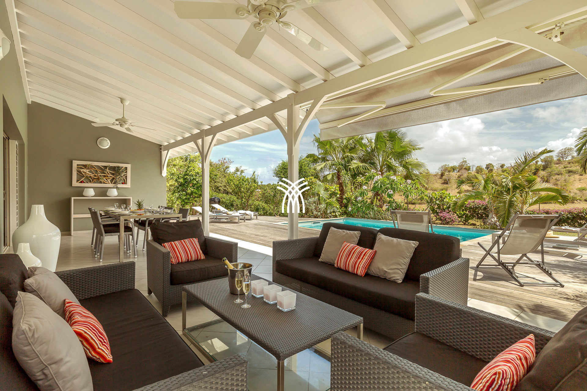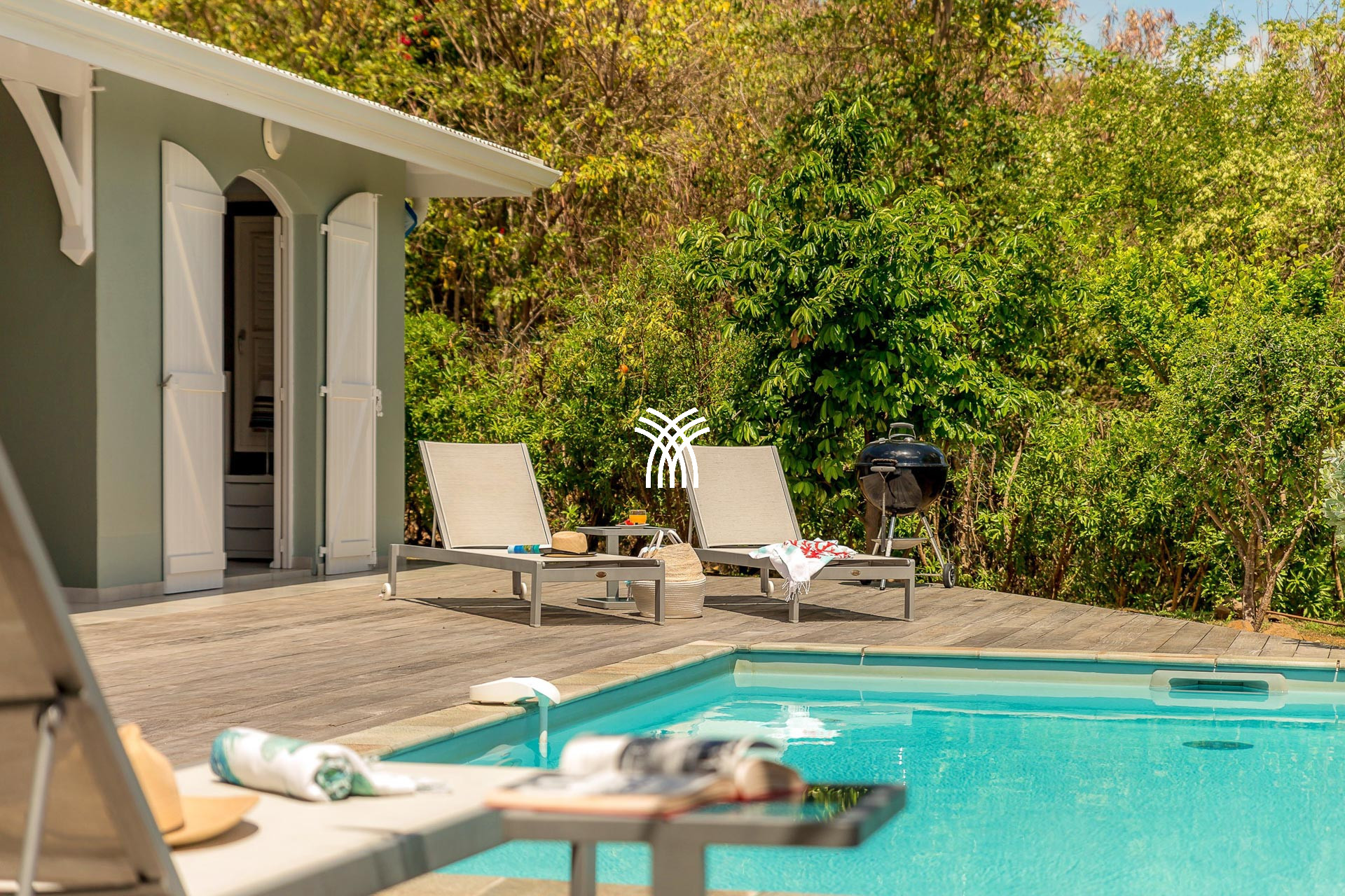 À l’extérieur, votre piscine privée fait face à une terrasse de 41 m² d’où vous pourrez jouir d’une vue apaisante sur la campagne et la mer tout en profitant d’un barbecue sous les rayons du soleil et de la douce chaleur des Antilles.