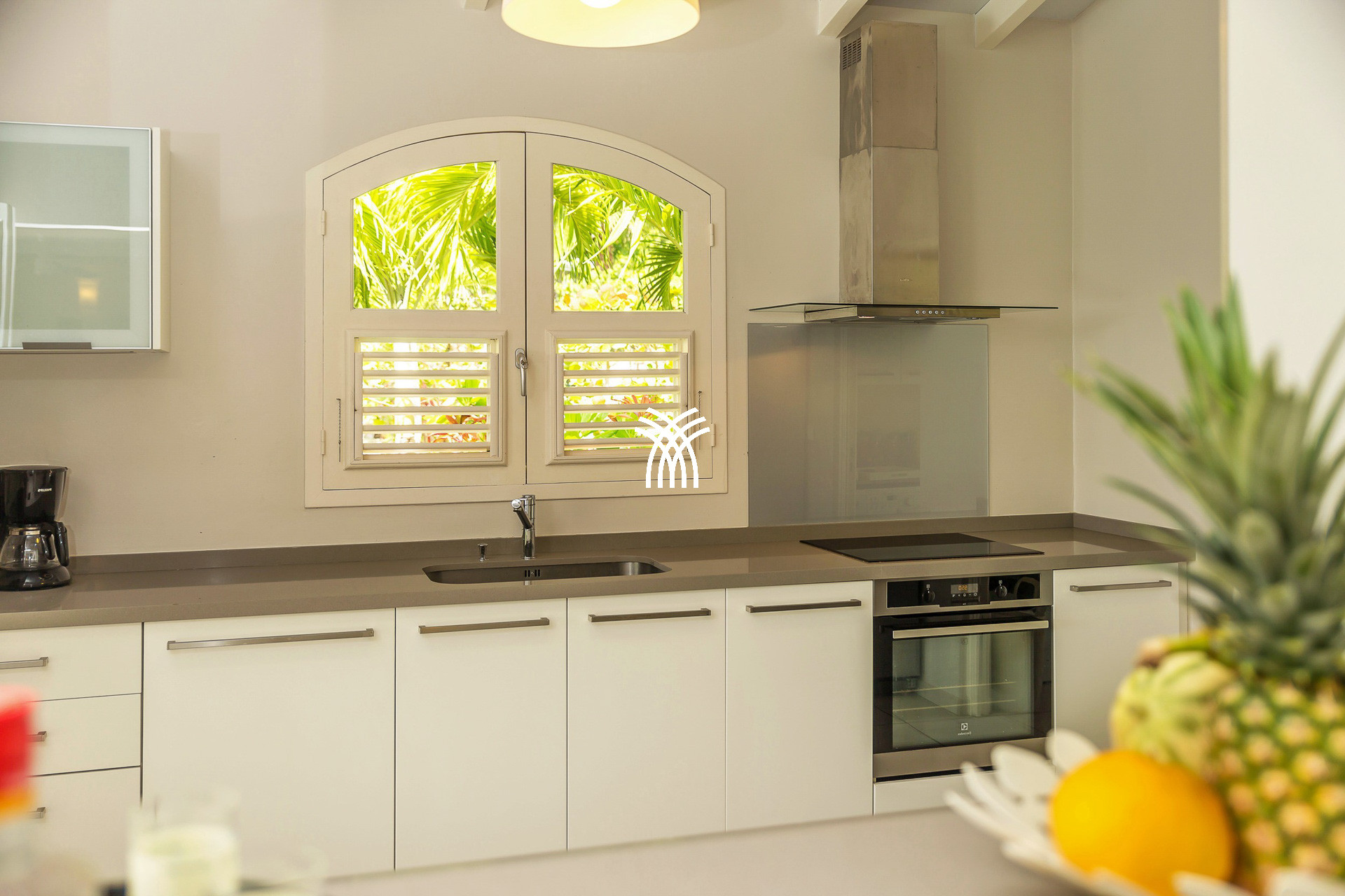 Lumineux et spacieux, le rez-de-chaussée est composé d’une cuisine entièrement équipée qui ouvre sur un extérieur présentant une piscine privée d’où vous pourrez jouir d’une vue apaisante sur la campagne tout en profitant d’un barbecue sous les rayons du soleil et de la douce chaleur des Antilles. La villa Jade Palm Martinique, mêlant modernité et touche créole, fera le bonheur des voyageurs en quête de tranquillité.