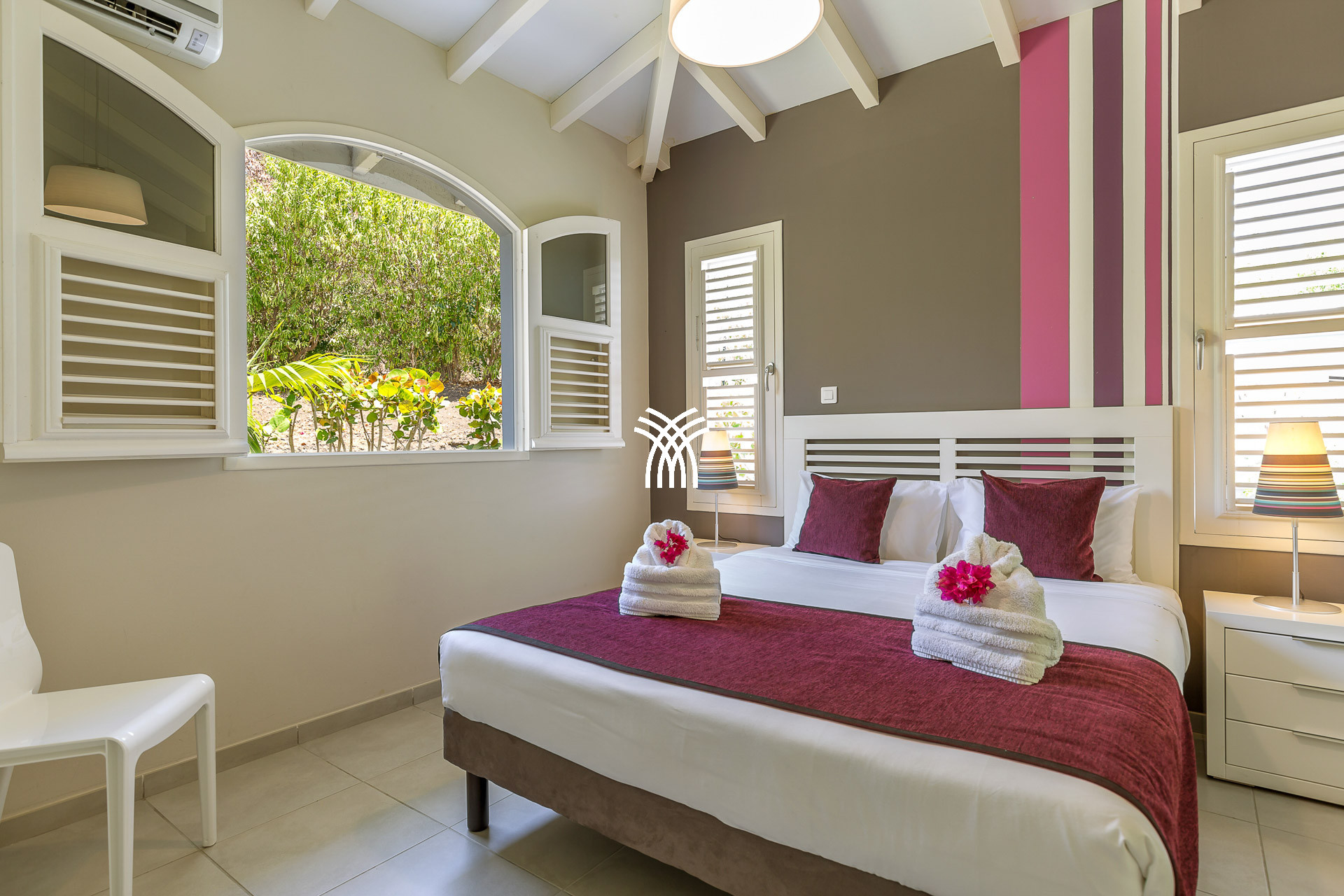 Lit queen size air-conditionné, placard, salle de douche et WC, vue mer, accès terrasse et piscine