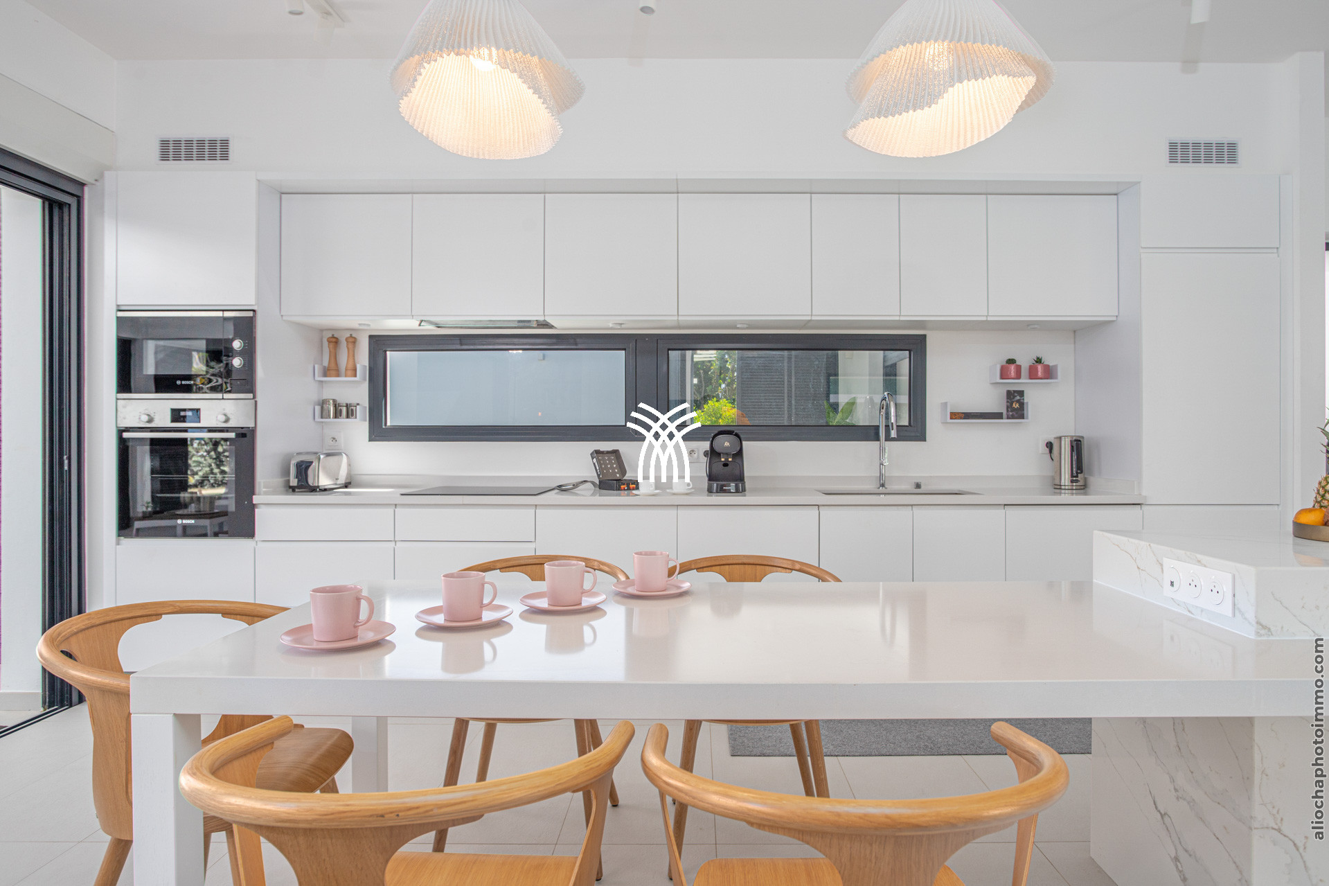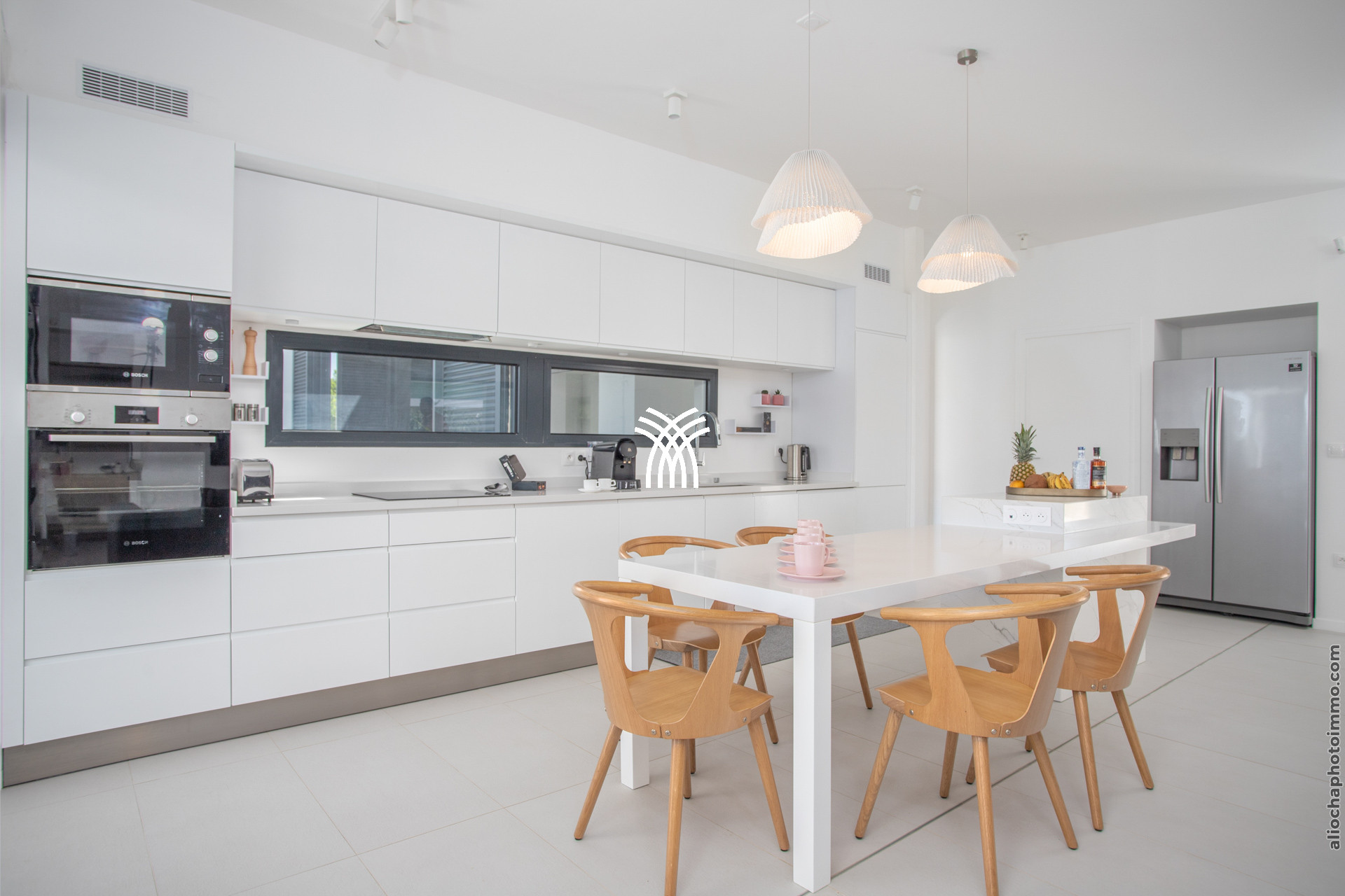Plaques de cuisson induction, four micro-ondes, machine à café Nespresso+ café italien, réfrigérateur US, grille-pain, four, lave-vaisselle, bouilloire