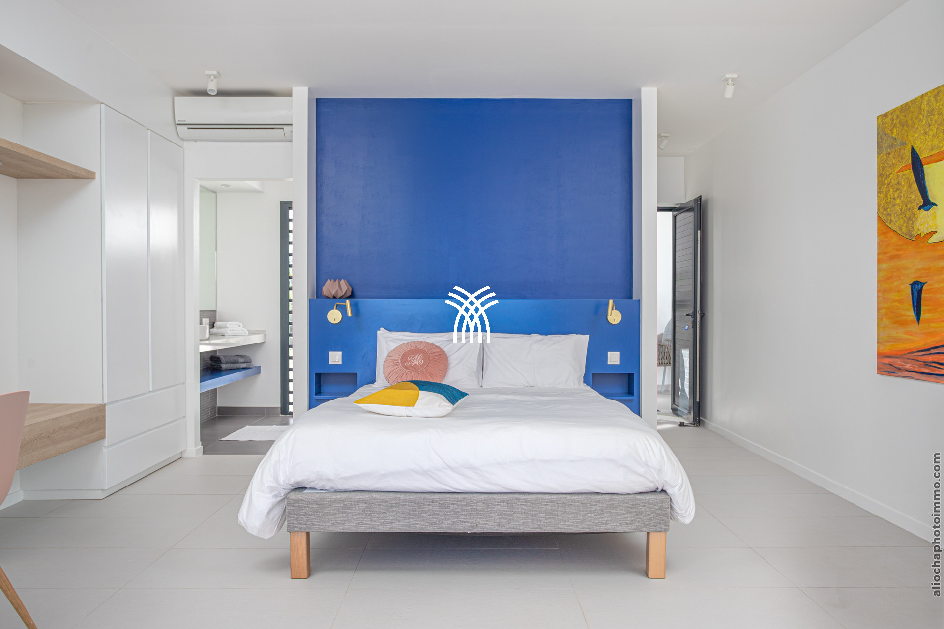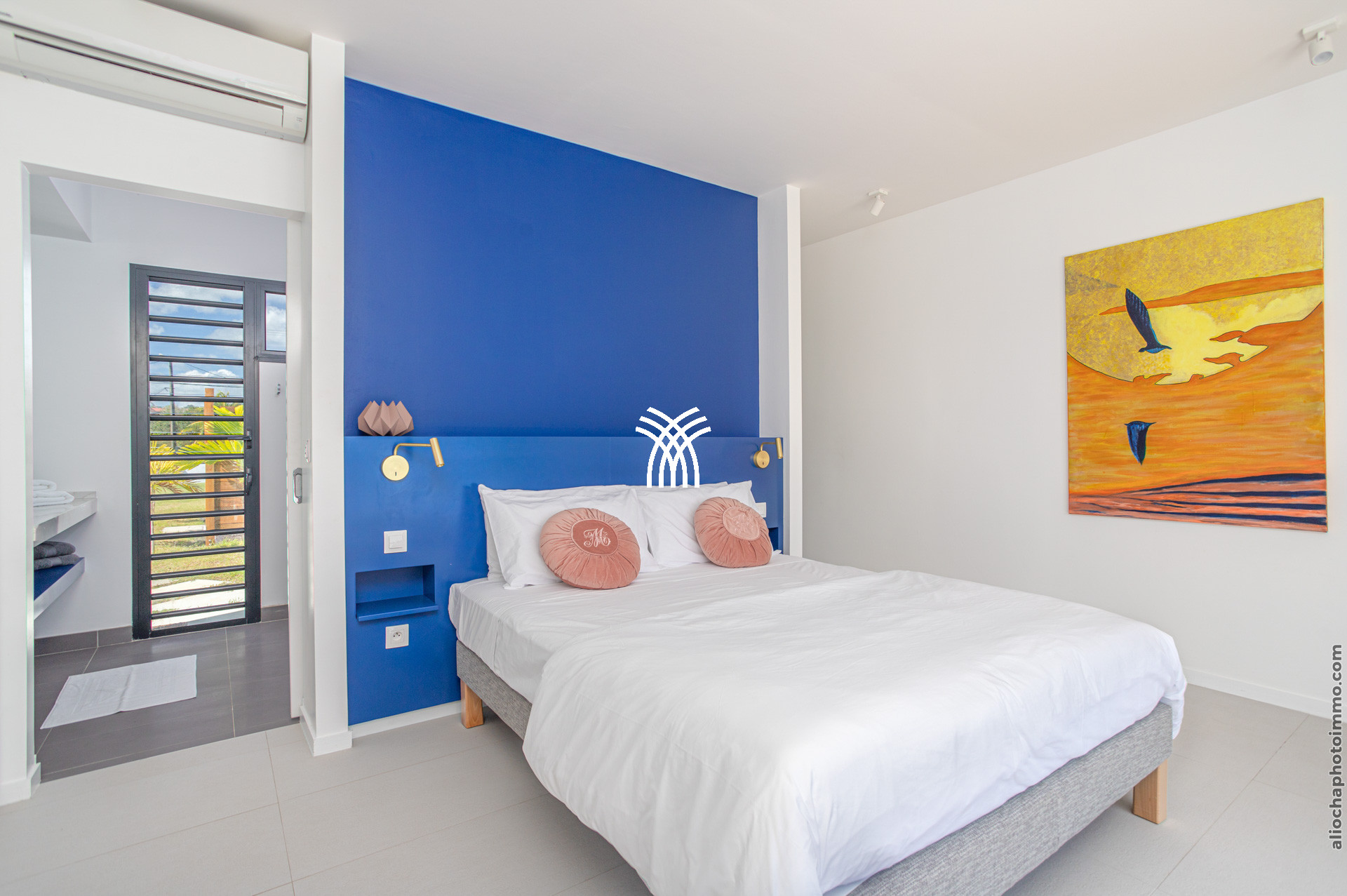 Lit queen size air-conditionné, placard, salle de douche et WC, vue mer, accès terrasse et piscine