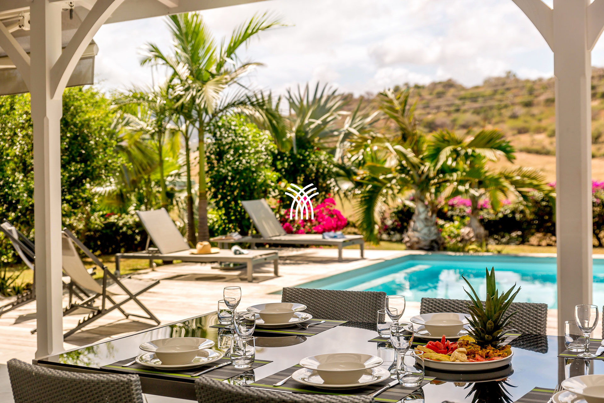 À l’extérieur, votre piscine privée fait face à une terrasse de 41 m² d’où vous pourrez jouir d’une vue apaisante sur la campagne et la mer tout en profitant d’un barbecue sous les rayons du soleil et de la douce chaleur des Antilles.