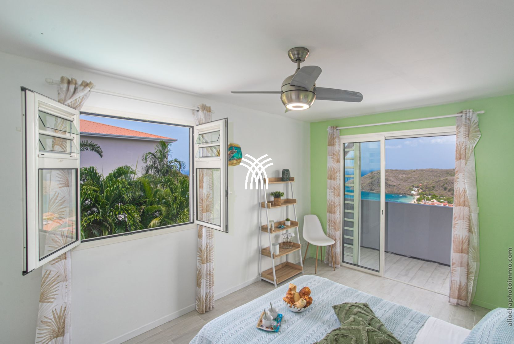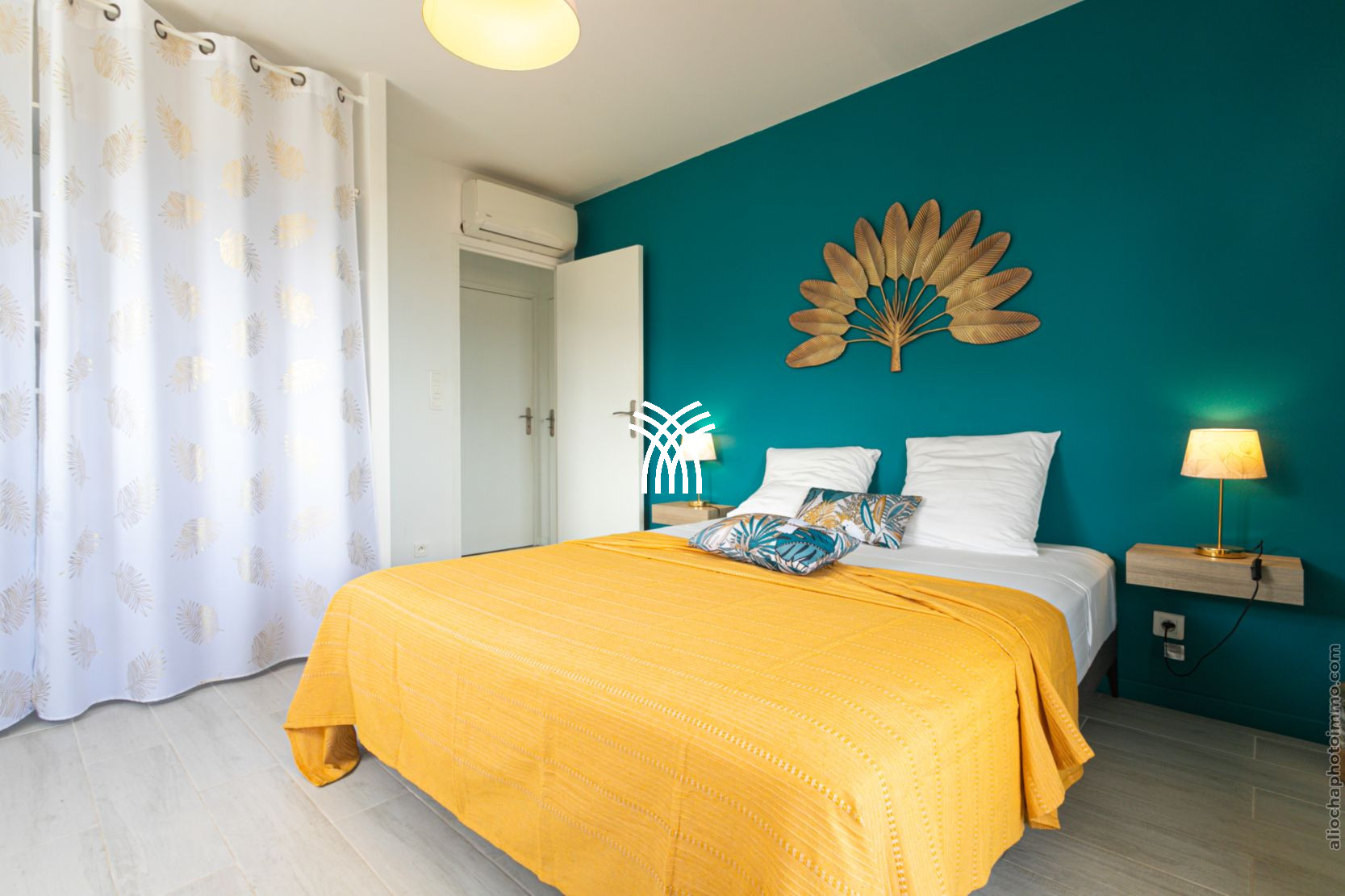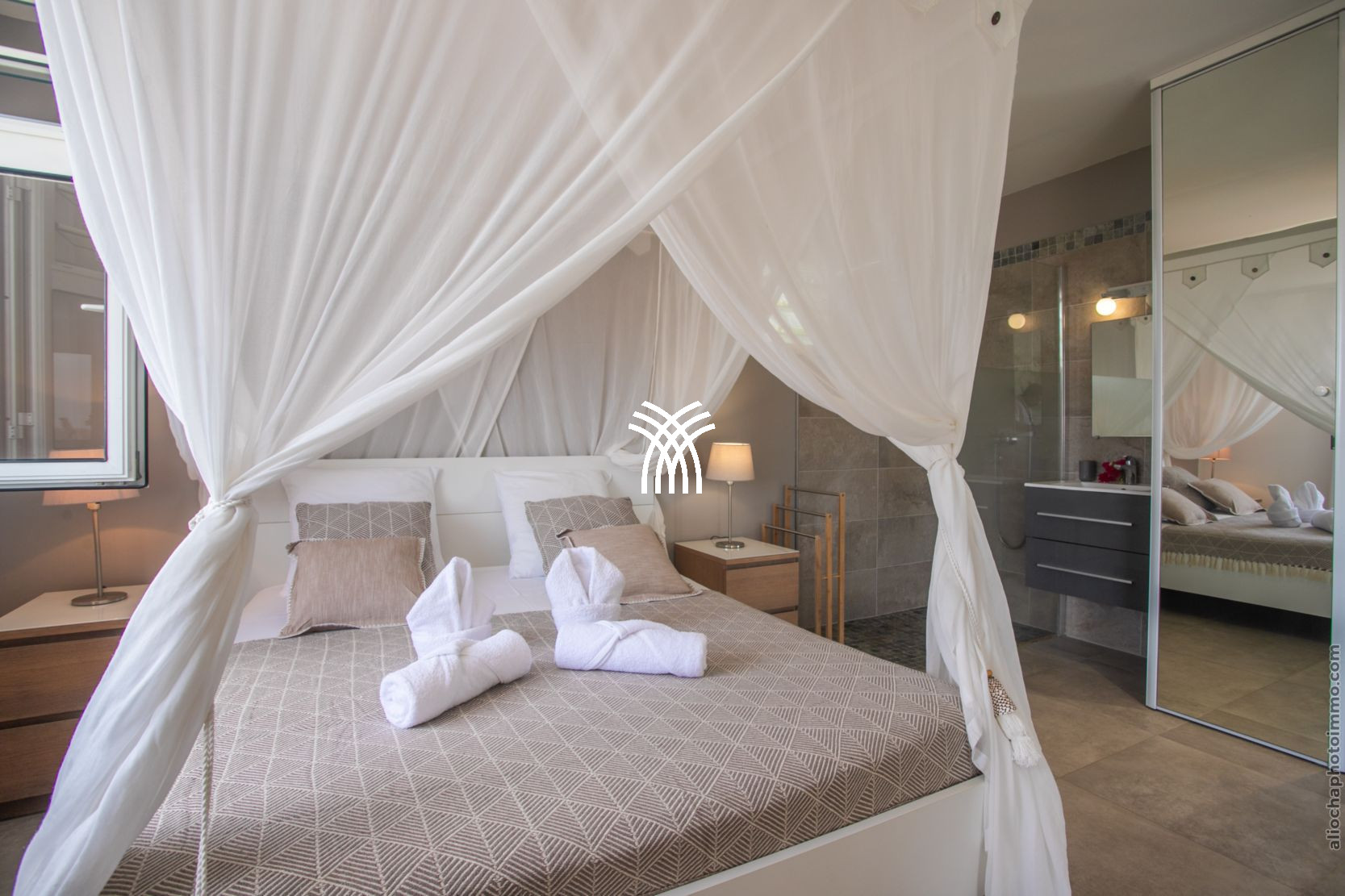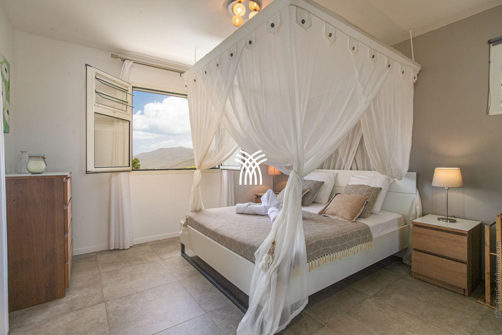 La villa BellaVista propose cinq élégantes chambres climatisées : une au rez-de-chaussée, trois au premier étage et une en rez-de-jardin. La suite parentale vous transporte dans un univers paisible avec ses teintes naturelles, sa vue de rêve, son accès à la terrasse et sa belle salle de douche intégrée. À l’étage, trois charmantes chambres vous accueillent dans une atmosphère tendance et douillette, ouvrant sur un balcon face à la mer. La première chambre dispose d’un lit 160x200 et de sa propre salle d’eau avec WC indépendant. Les deux autres chambres, une double (lit 140x190) et une twin (2 lits 90x190), partagent une salle de douche avec WC. La cinquième chambre, située en rez-de-jardin, offre une terrasse privative entourée de végétation tropicale. Indépendante et paisible, elle dispose d’un coin salon, d’un espace nuit avec un lit 160x200 et d’une salle de douche avec WC.