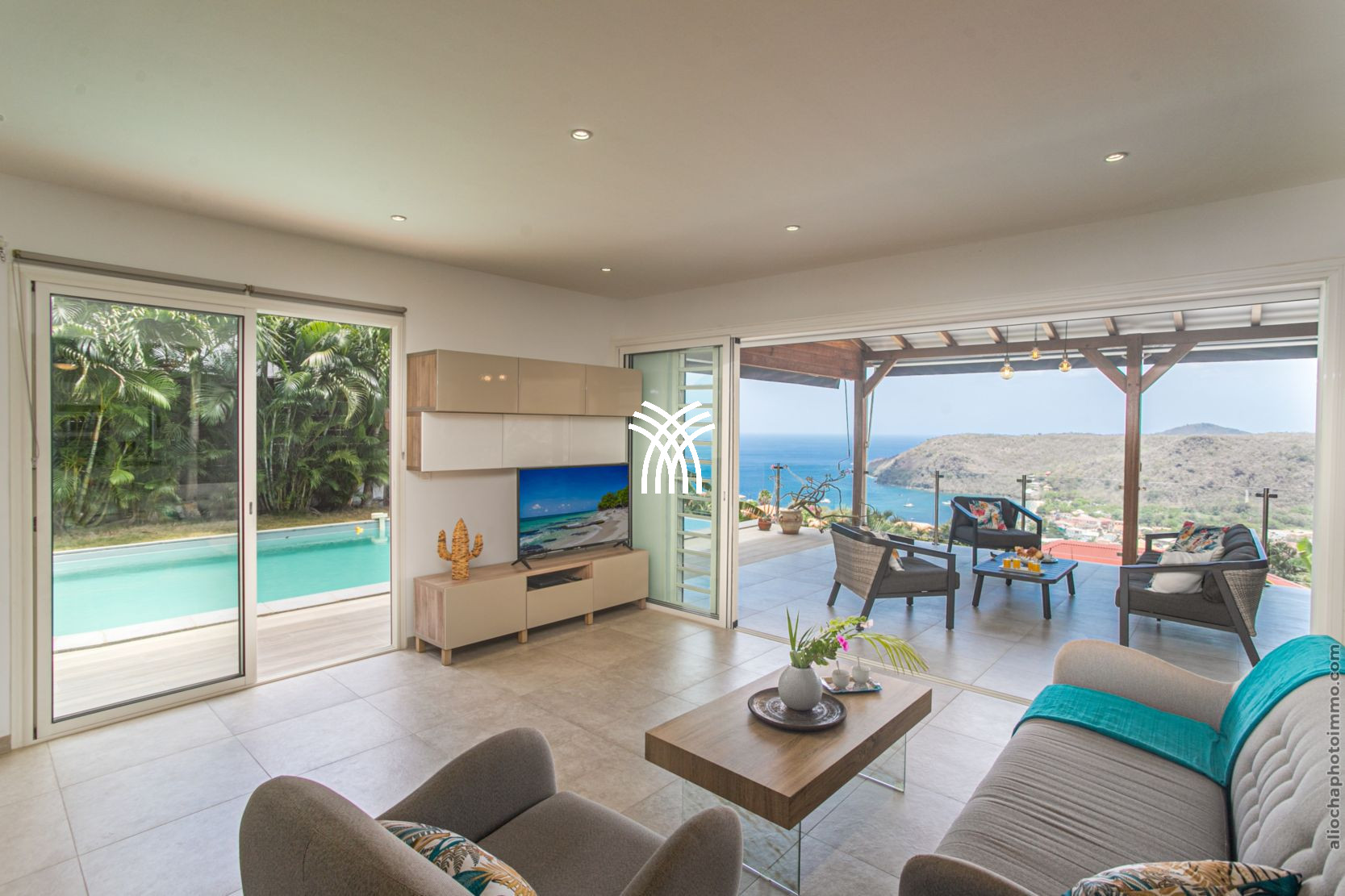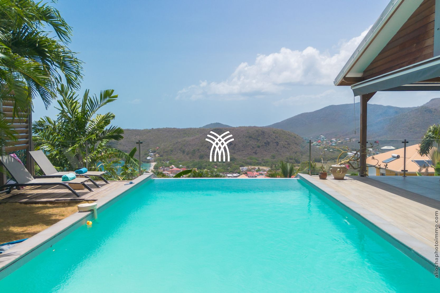 BellaVista, une villa au design contemporain, offre une vue panoramique à 180° sur la mer. Ici, l'atmosphère chaleureuse et le confort invitent à la détente et à savourer pleinement la villa. Espace, douceur et décoration créole-chic... partout, le bien-être est un art de vivre.