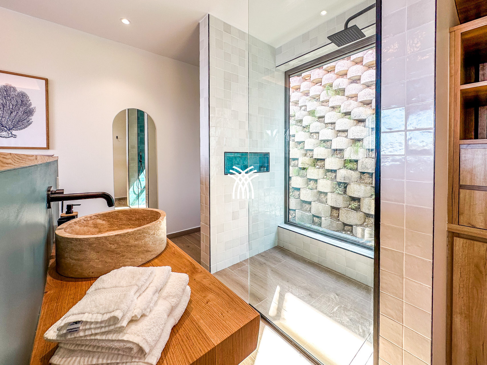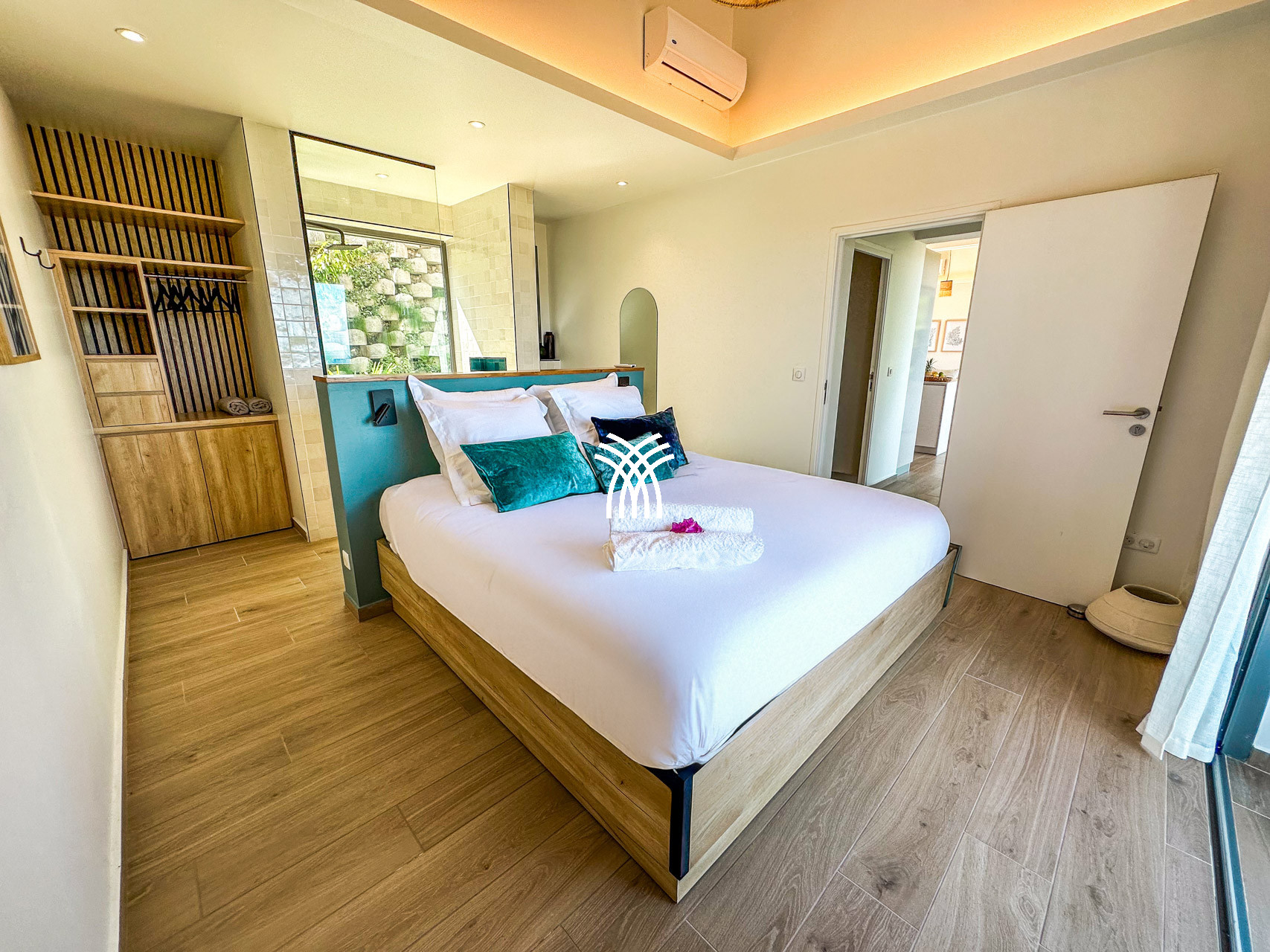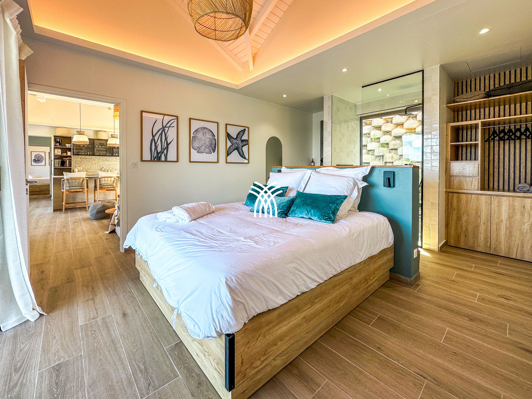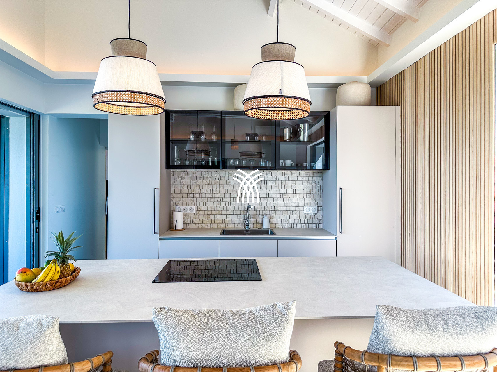 La villa Inawa séduit par son architecture contemporaine, ses lignes épurées et ses espaces baignés de lumière. Elle dispose de 100m² de confort raffiné, comprenant trois suites parentales intimistes avec lit king size et salle de bain attenante. Chaque espace de vie a été pensé pour la détente et le plaisir des sens : cuisine ouverte avec îlot central, salon élégant, terrasse panoramique, piscine à débordement et mobilier extérieur soigneusement sélectionné.