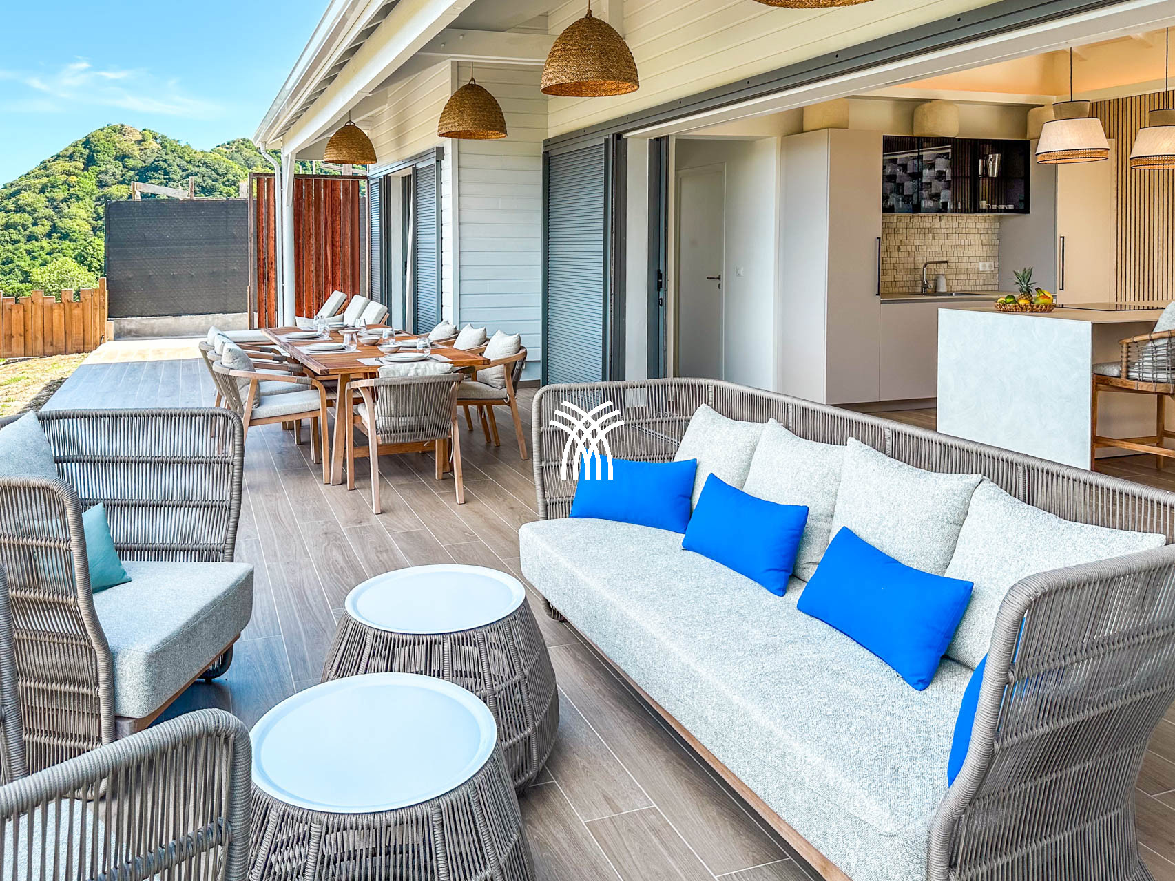 La Villa Inawa séduit par son architecture contemporaine, ses lignes épurées et ses espaces baignés de lumière. Sur 100m² de confort raffiné, elle propose trois suites parentales intimistes, chacune dotée d’un lit king size et d’une salle de bain attenante. Les pièces de vie, pensées pour la détente et le plaisir des sens, comprennent une cuisine moderne avec îlot central, un salon élégant, une terrasse panoramique et une piscine à débordement, le tout sublimé par un mobilier extérieur soigneusement sélectionné.
