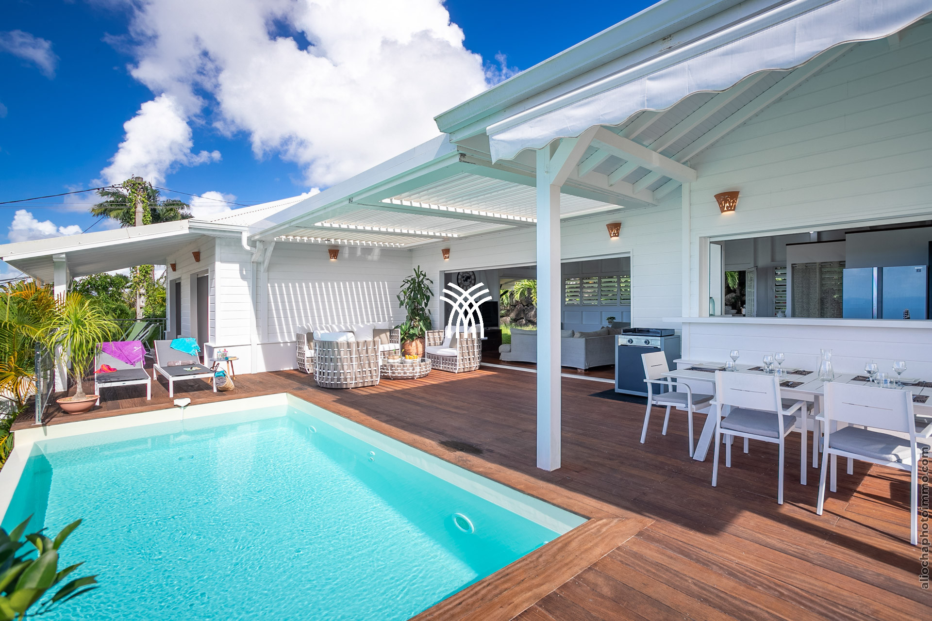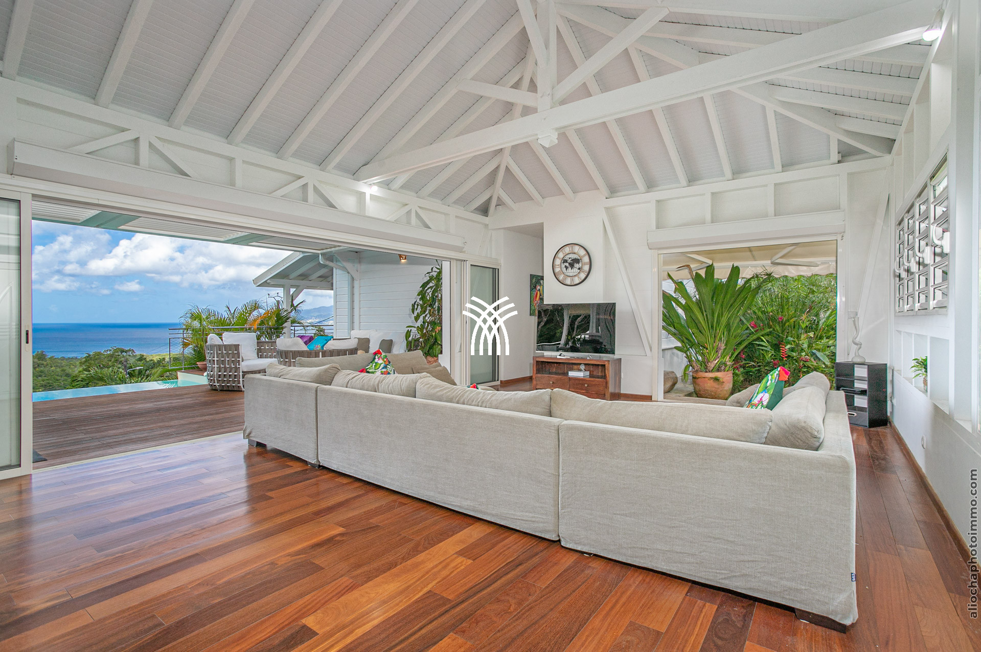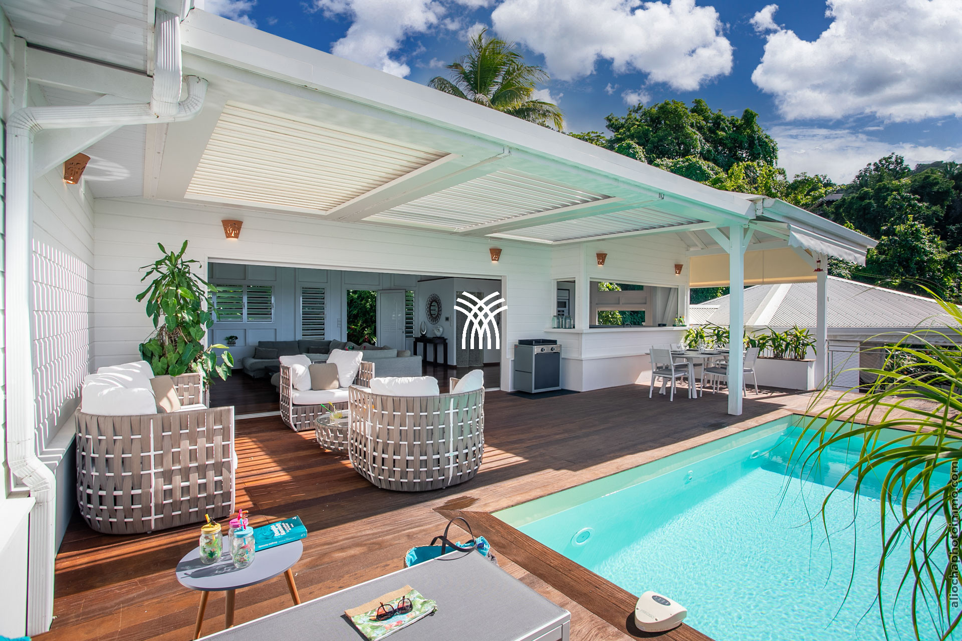 Entièrement orientée vers la mer, la Bahia Villa offre une vue panoramique à couper le souffle sur les îlets et les eaux cristallines de la mer des Caraïbes. Admirez les nuances de bleus sublimes qui se dessinent à l’horizon. Située sur les hauteurs du bourg de Trois-Îlets, cette villa allie élégance chic et confort cosy, offrant plus de 300 m² d’espace de vie en plein air, incluant une immense terrasse, un solarium en bois exotique, une piscine et un carbet. Dès votre arrivée, vous serez captivés par l’harmonie parfaite entre les espaces intérieurs et extérieurs, une fusion réussie qui magnifie chaque instant de votre séjour.