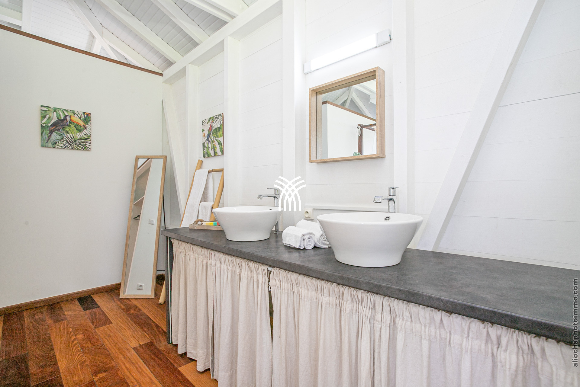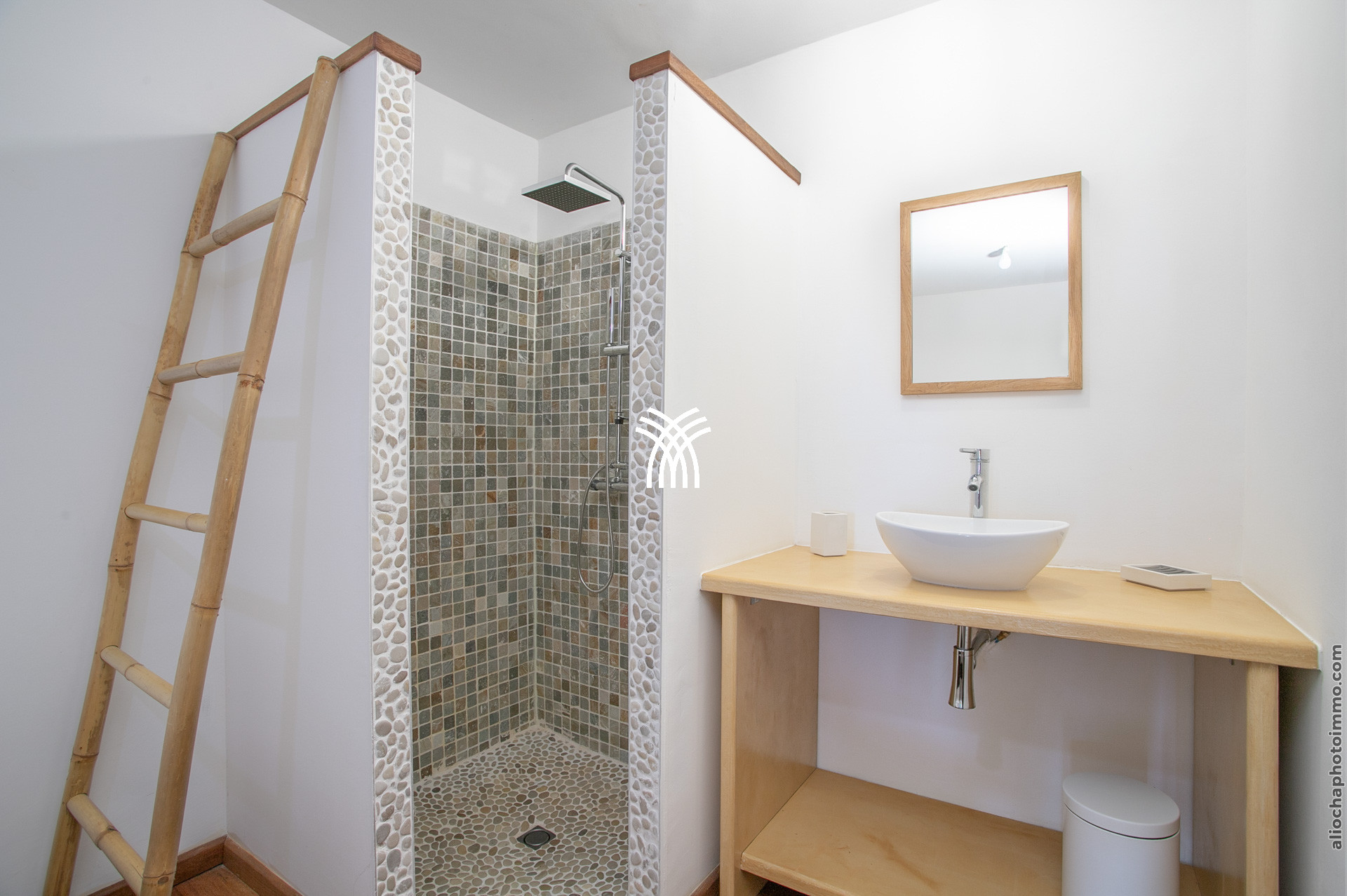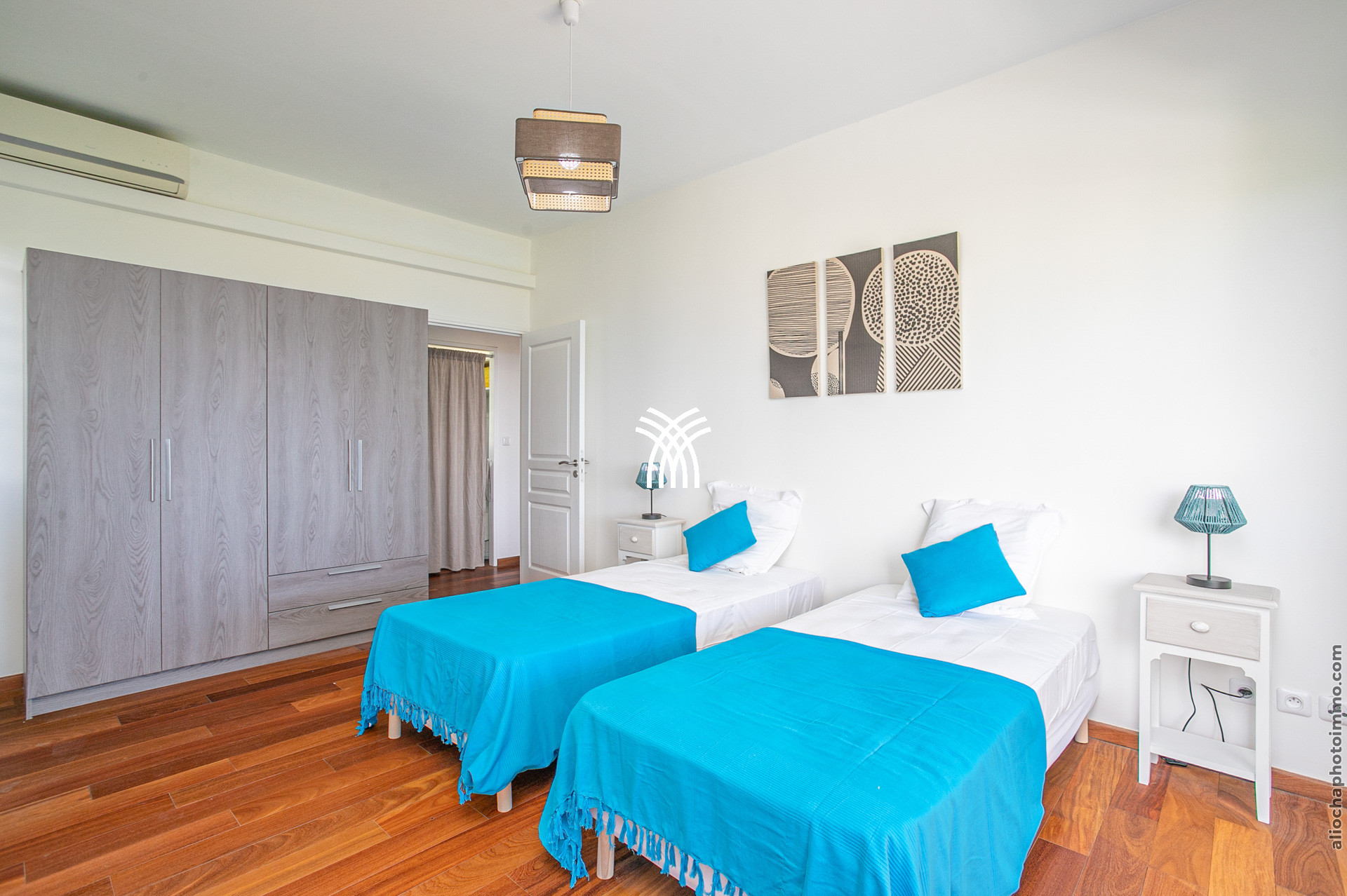 La Villa Madolyne dispose d’une suite parentale et de deux chambres lumineuses, offrant un confort optimal. La suite parentale, avec son lit à baldaquin orné d’une moustiquaire, s’accompagne d’un dressing, d’une terrasse privée et d’une salle de douche extérieure, parfaite pour se reconnecter à la nature. Les deux autres chambres, ouvertes sur la mer, partagent une salle de douche et un WC, l’une équipée d’un lit 160x200 et l’autre de deux lits simples.