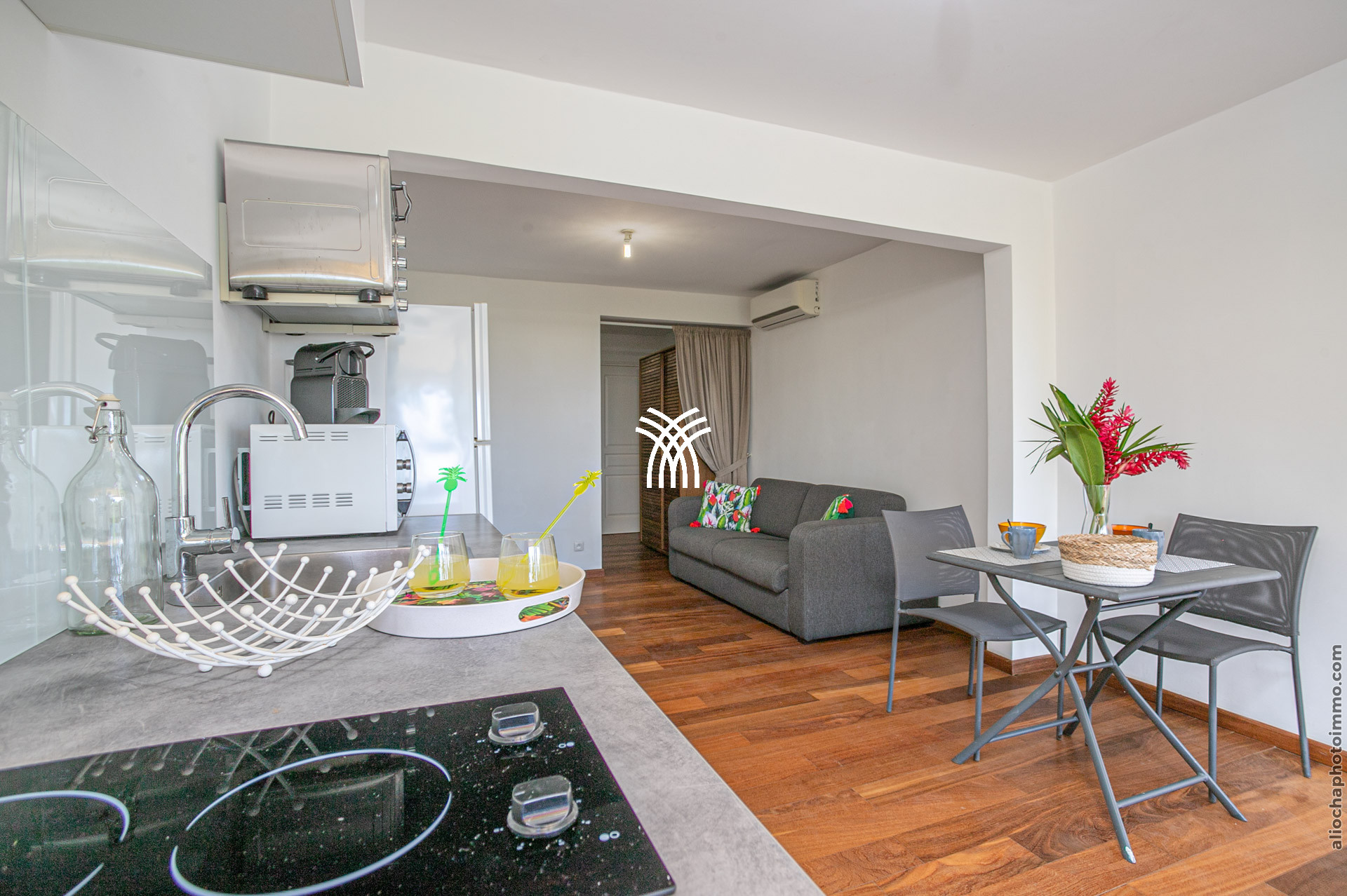 Pour encore plus de flexibilité, le rez-de-chaussée propose deux T2 indépendants climatisés, chacun avec une terrasse privée, une kitchenette, un coin salon et une chambre confortable équipée d’un lit 140. Ces espaces supplémentaires permettent d’accueillir famille et amis tout en garantissant intimité et autonomie.