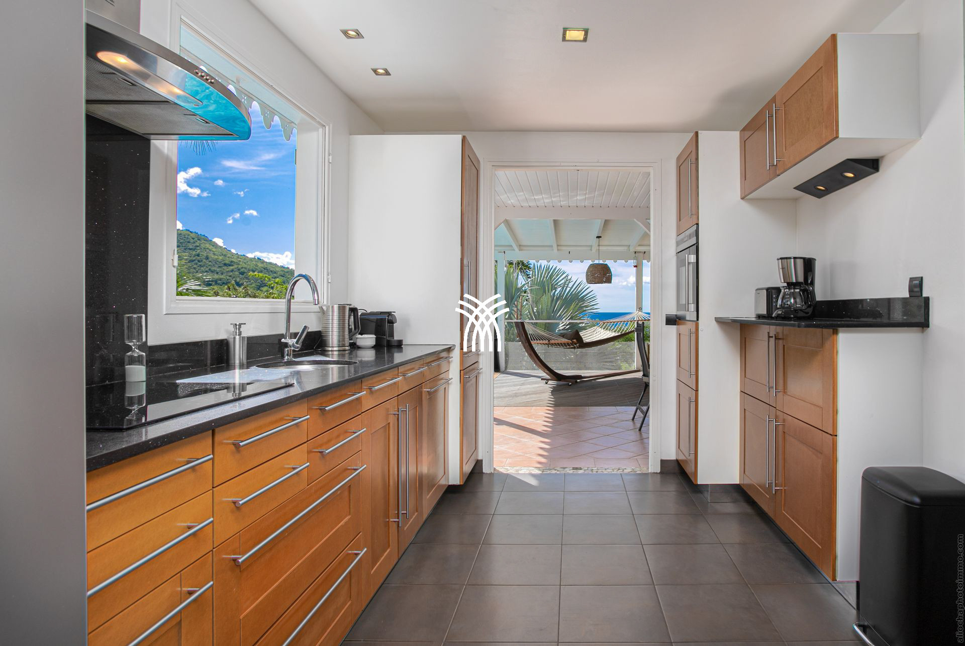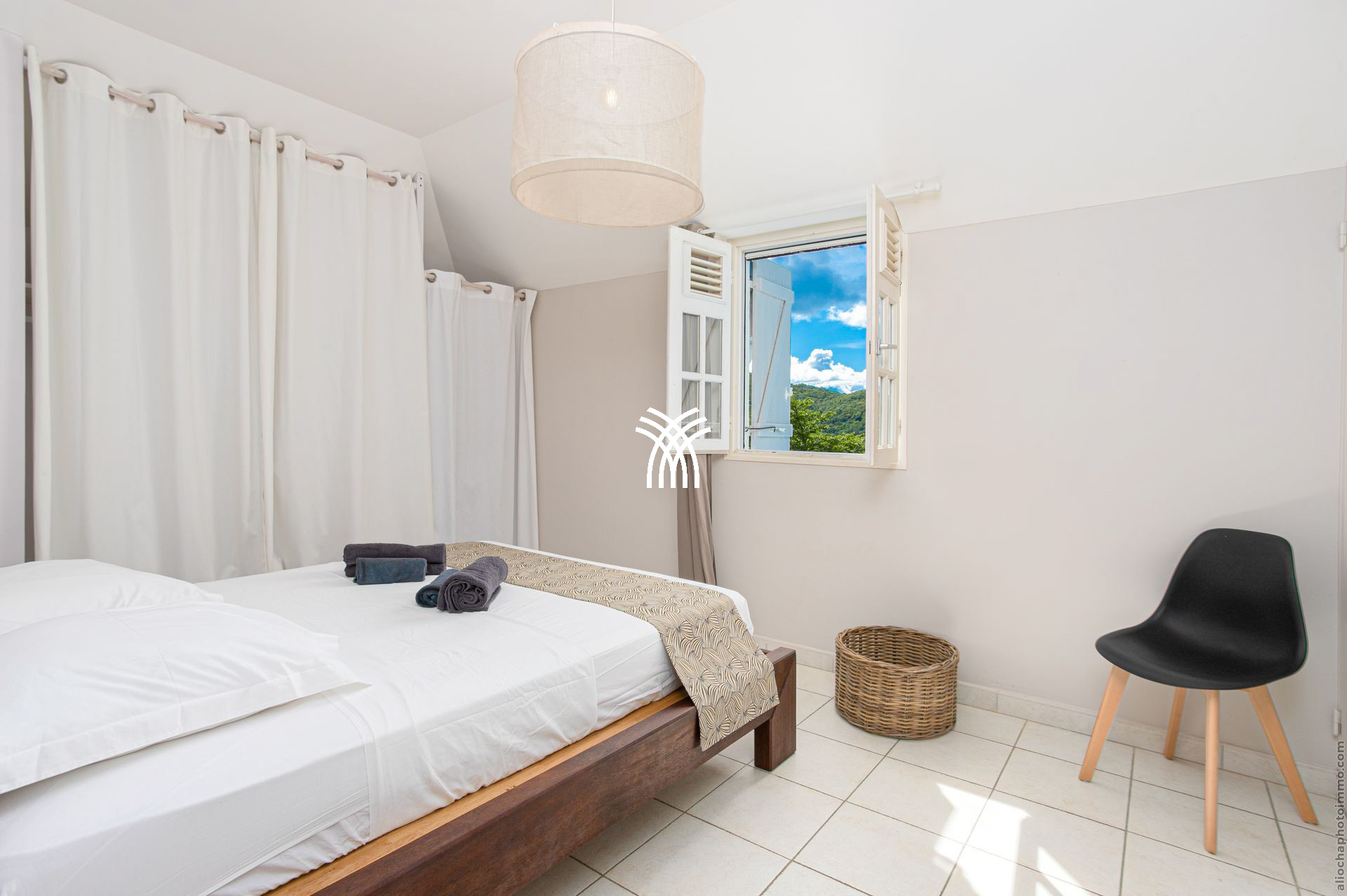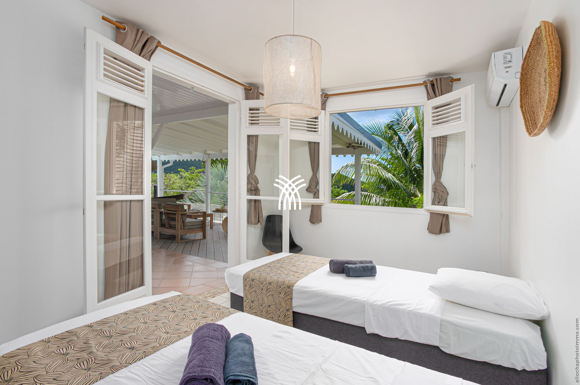 Aménagée sur deux niveaux, cette villa de standing propose cinq chambres climatisées équipées de moustiquaires et des salles de bains modernes dotées de sèche-cheveux. À l’étage, une élégante suite parentale avec lit double 160 cm offre une vue imprenable sur la mer des Caraïbes depuis sa salle de bain privative avec baignoire. Au rez-de-chaussée, le spacieux salon avec TV écran plat et canapé confortable s’ouvre sur une cuisine contemporaine entièrement équipée (machine Nespresso, four, lave-vaisselle, micro-ondes, réfrigérateur américain, grille-pain…). De là, on accède à la terrasse ombragée et au deck qui mène à la piscine.