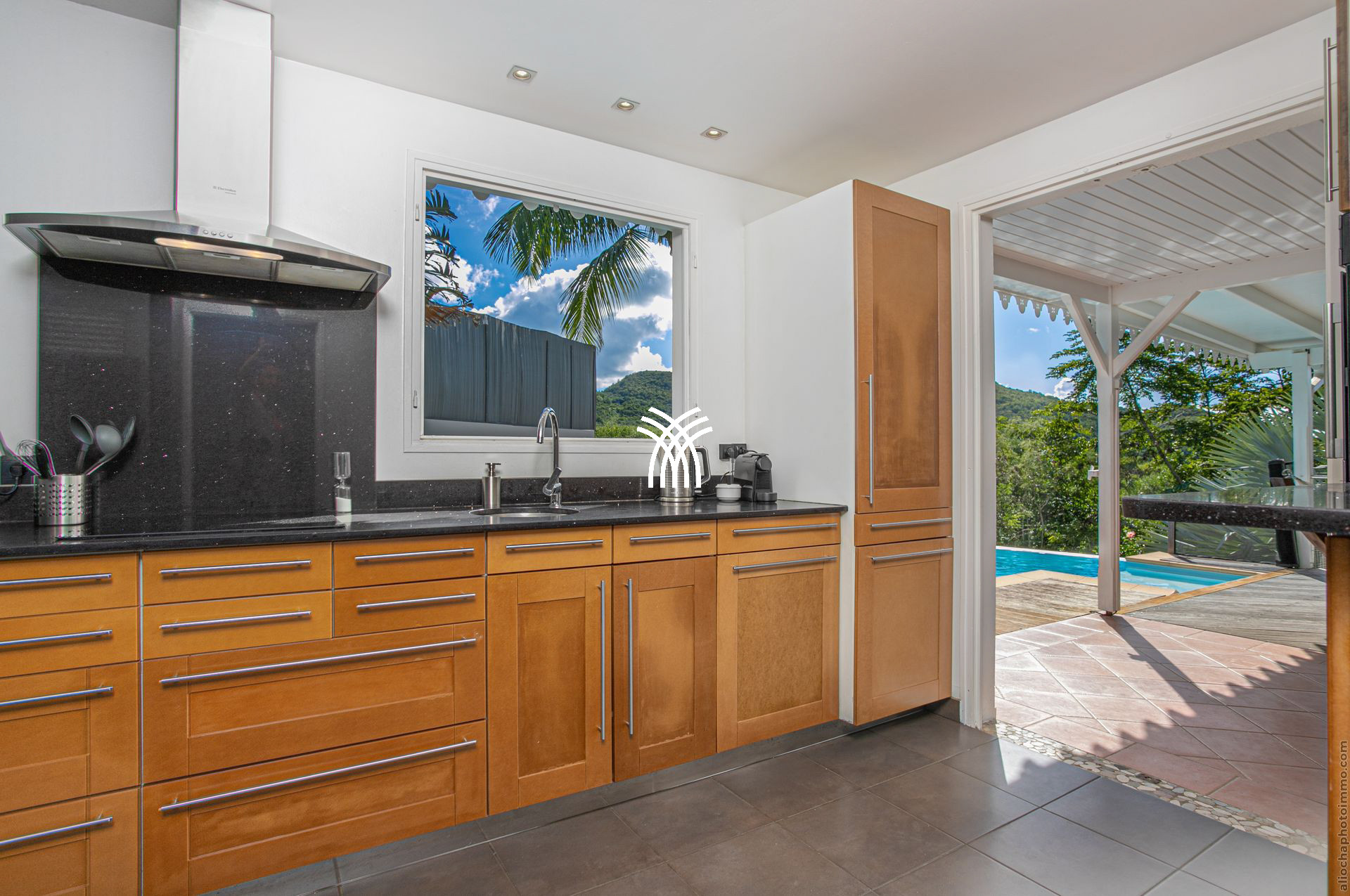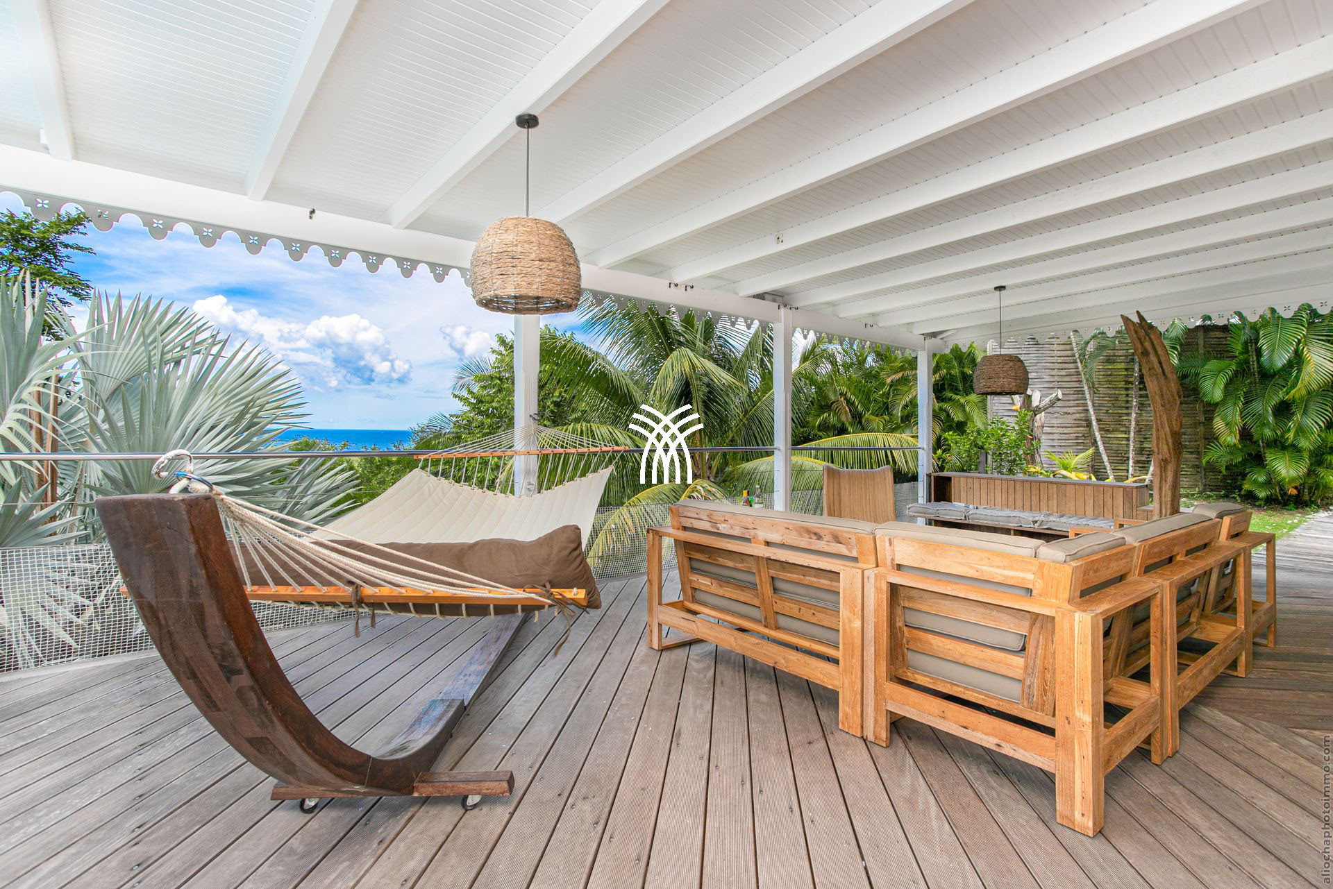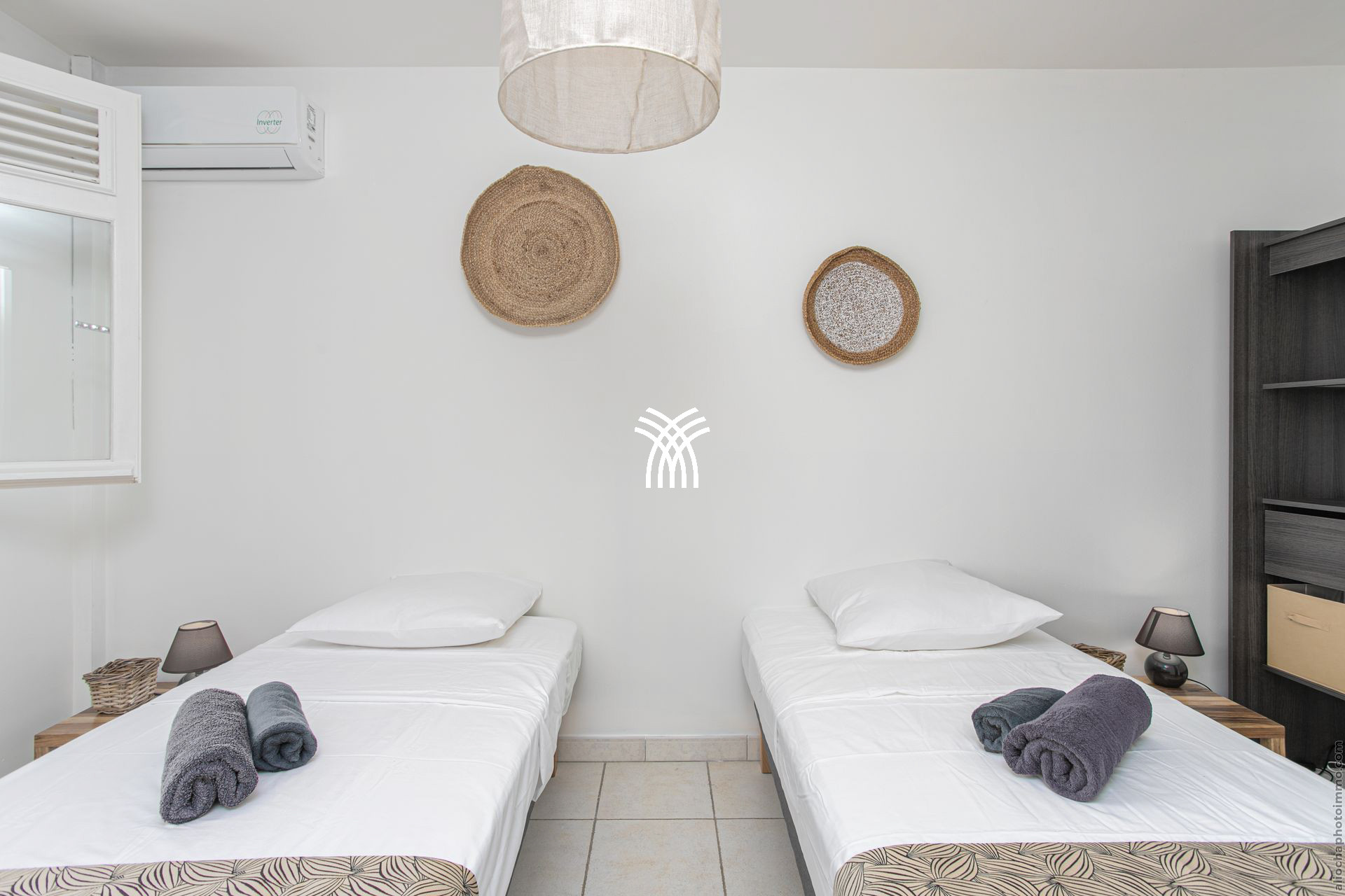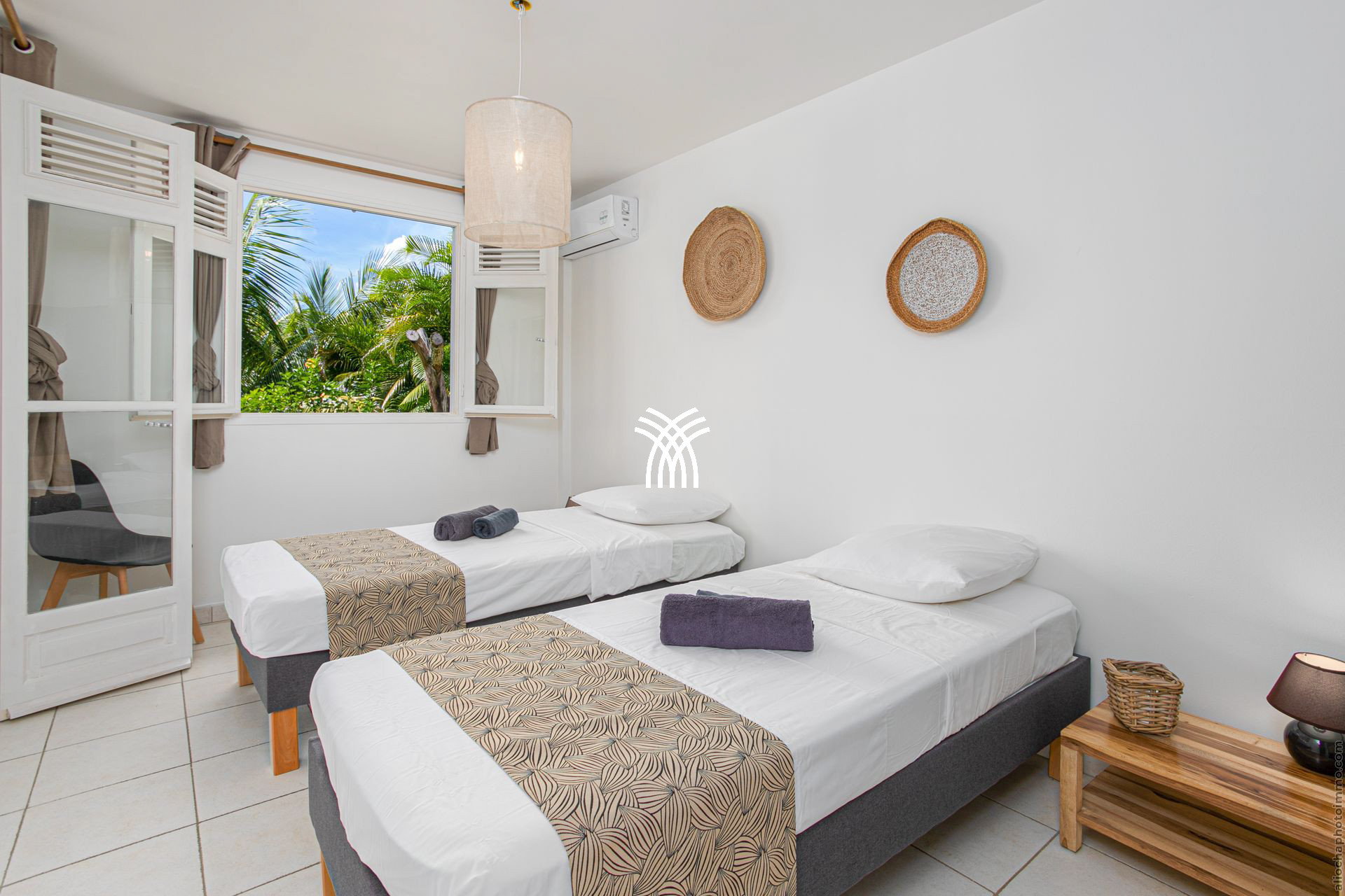 Aménagée sur deux niveaux, cette villa de standing propose cinq chambres climatisées équipées de moustiquaires et des salles de bains modernes dotées de sèche-cheveux. À l’étage, une élégante suite parentale avec lit double 160 cm offre une vue imprenable sur la mer des Caraïbes depuis sa salle de bain privative avec baignoire. Au rez-de-chaussée, le spacieux salon avec TV écran plat et canapé confortable s’ouvre sur une cuisine contemporaine entièrement équipée (machine Nespresso, four, lave-vaisselle, micro-ondes, réfrigérateur américain, grille-pain…). De là, on accède à la terrasse ombragée et au deck qui mène à la piscine.