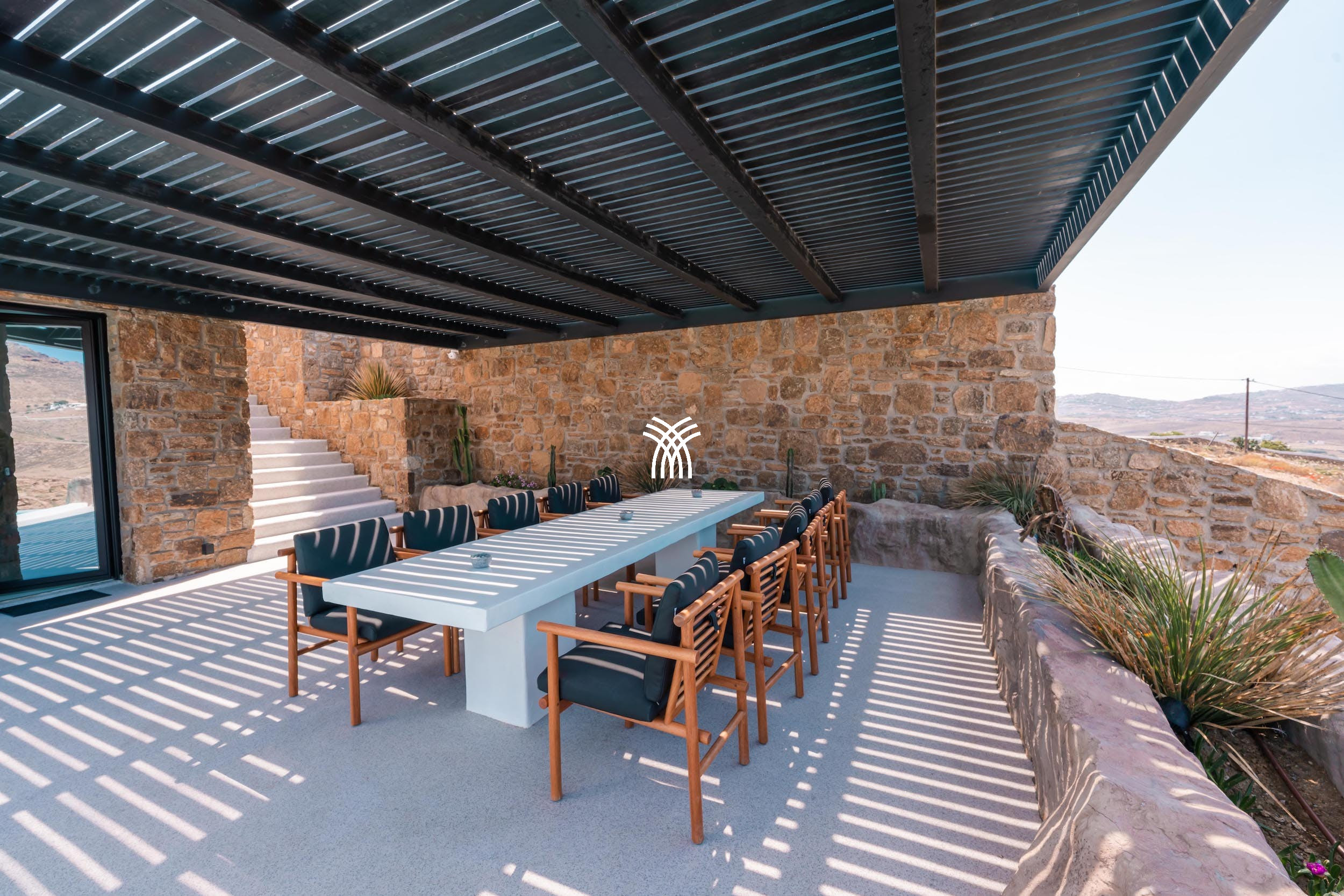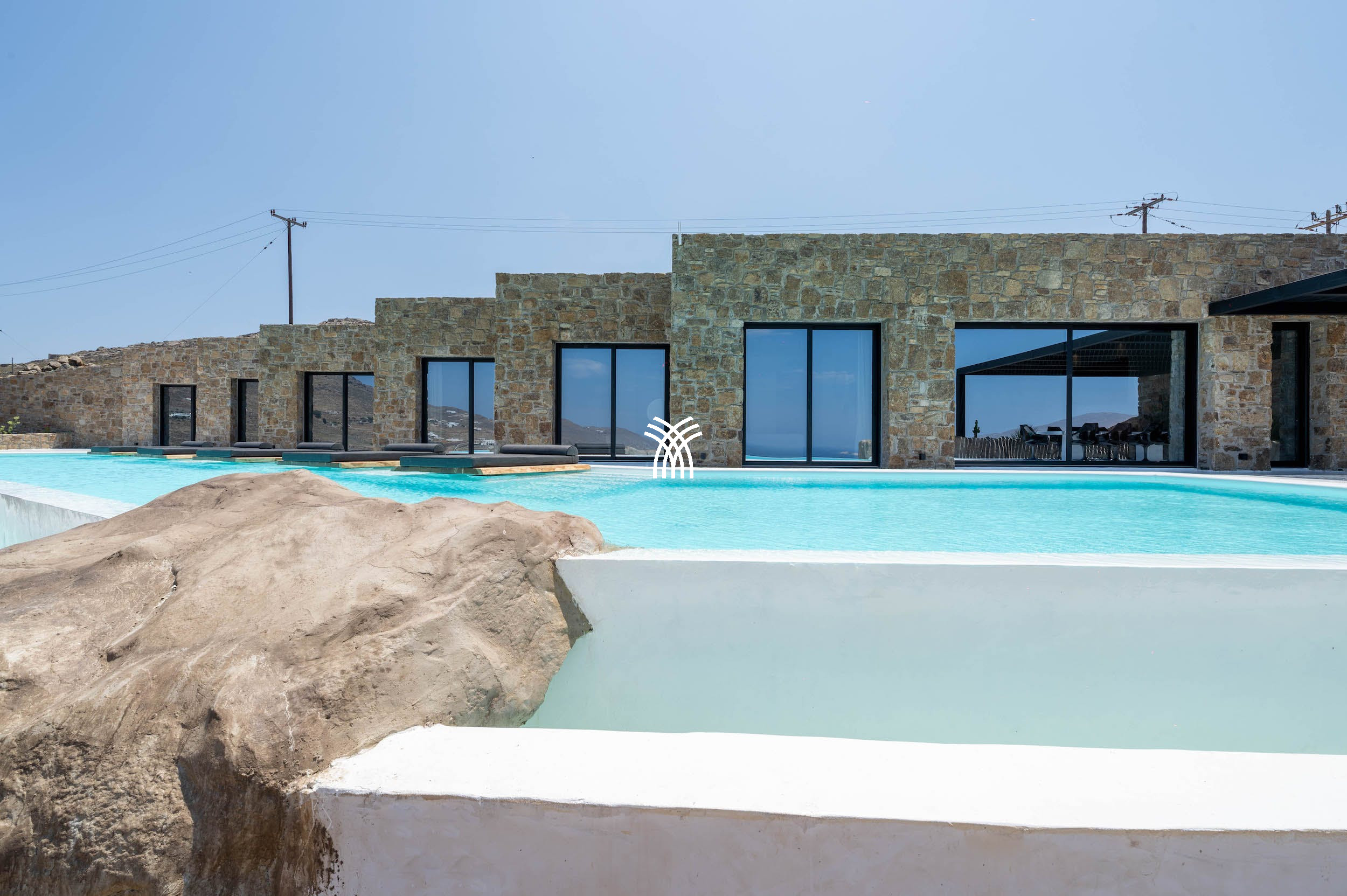 À l'extérieur, la villa dispose d'une piscine privée, d'une zone de barbecue et d'un environnement paysager soigneusement aménagé, idéal pour se divertir, se détendre ou profiter du coucher de soleil mykonien inoubliable. Que vous recherchiez des moments de tranquillité ou des rassemblements festifs, cette location de villa de luxe en Grèce promet des vacances de rêve remplies de confort, d'élégance et de vues imprenables.