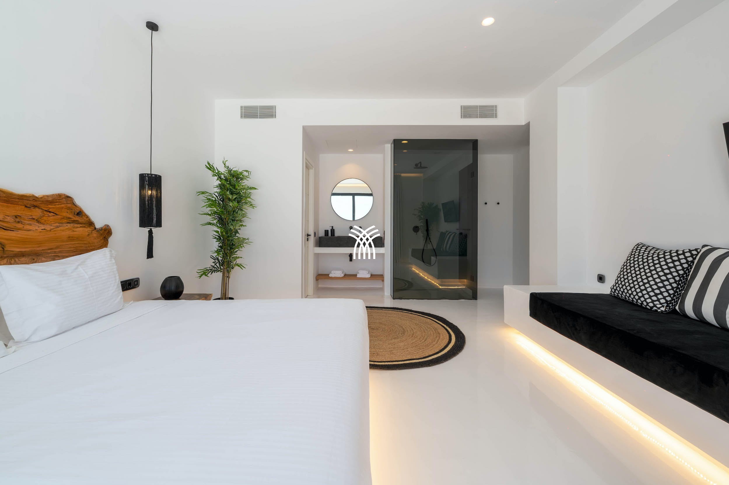 Cette villa extraordinaire offre une intimité absolue, un accès privé à la plage et une terrasse immense de 300 mètres carrés, comprenant une piscine à débordement chauffée et une charmante chapelle bleu et blanc. Conçue à la fois pour la détente et la célébration, Villa Goddess est le parfait mélange de tranquillité et de luxe. Le double salon de la villa accueille la douce brise égéenne, tandis que les chambres entièrement blanches respirent le calme et le confort. Chaque coin a été conçu avec une attention exceptionnelle aux détails — des pergolas ombragées au barbecue en pierre fait main, en passant par la piscine XXL chauffée et même un héliport privé pour des arrivées en toute simplicité.