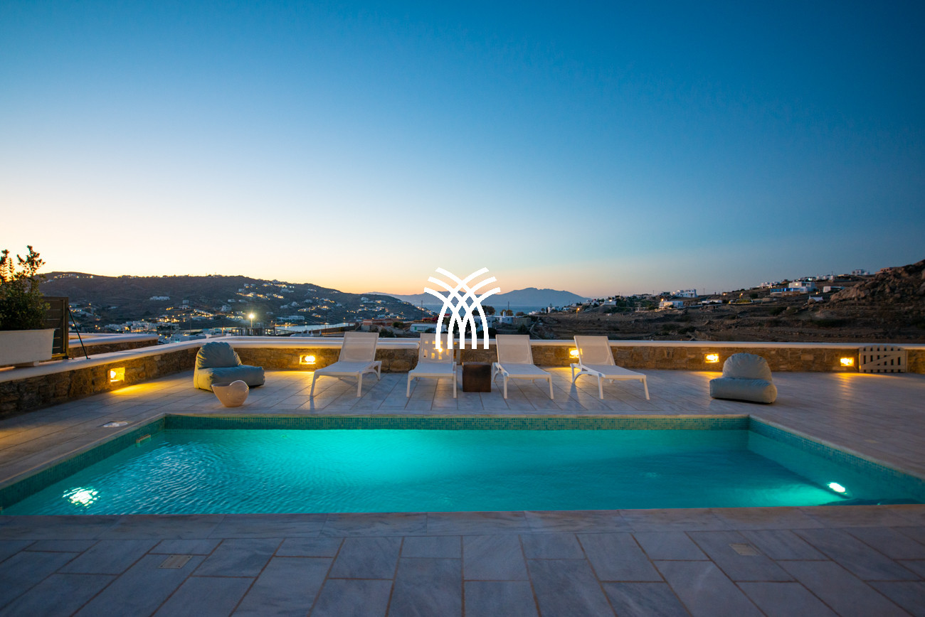 Découvrez la beauté intemporelle de Mykonos avec une location de villa de luxe en Grèce dans cette retraite raffinée sur les hauteurs, surplombant Pouli dans l'exclusif quartier de Kanalia. Offrant une vue panoramique sur le coucher de soleil au-dessus de la mer Égée et de l'île sacrée de Délos, cette villa élégante mêle le charme cycladique à une sophistication moderne dans l'un des emplacements les plus recherchés de l'île.