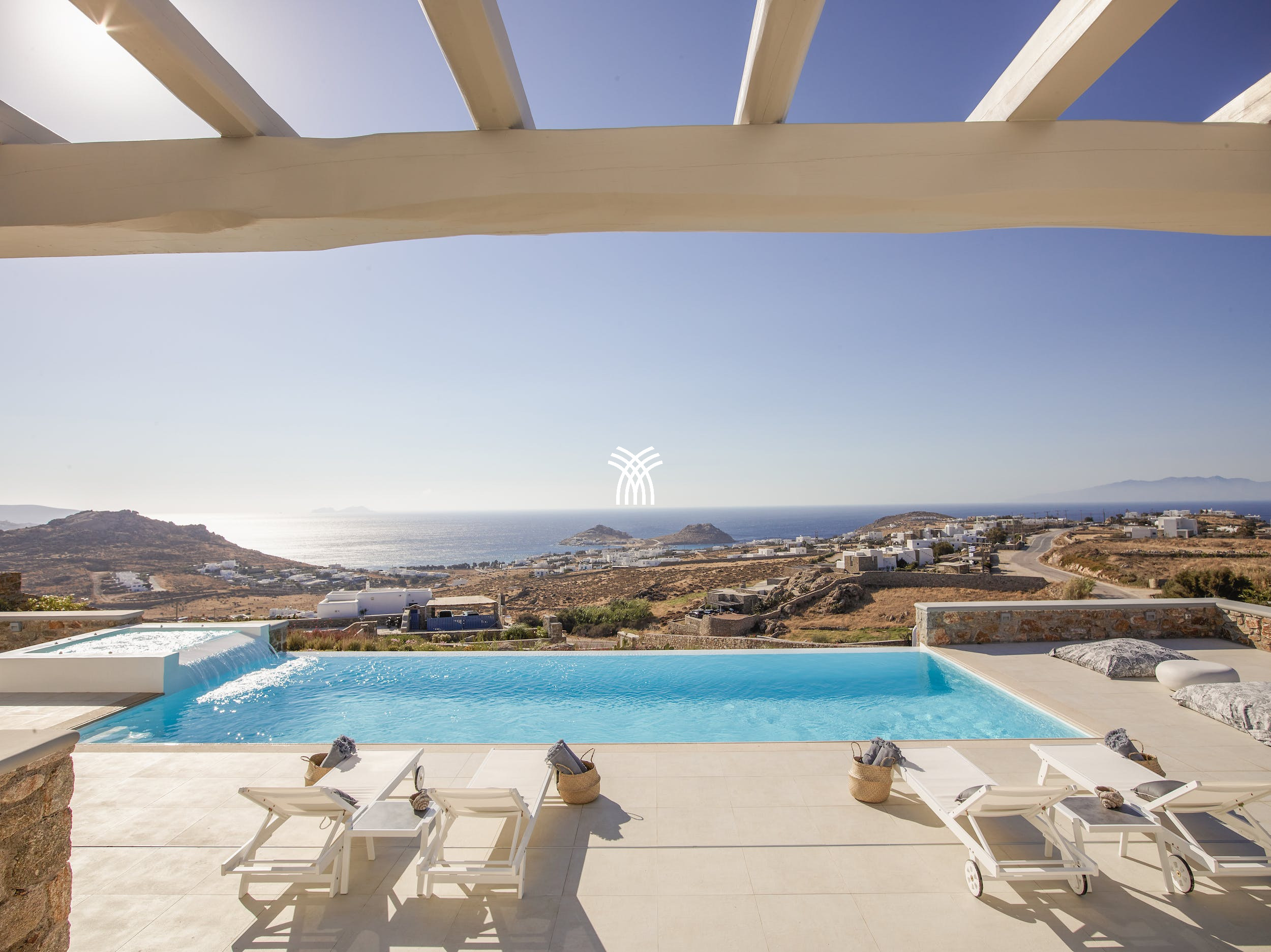 Découvrez la beauté intemporelle de Mykonos avec une location de villa de luxe en Grèce dans cette retraite raffinée sur les hauteurs, surplombant Pouli dans l'exclusif quartier de Kanalia. Offrant une vue panoramique sur le coucher de soleil au-dessus de la mer Égée et de l'île sacrée de Délos, cette villa élégante mêle le charme cycladique à une sophistication moderne dans l'un des emplacements les plus recherchés de l'île.