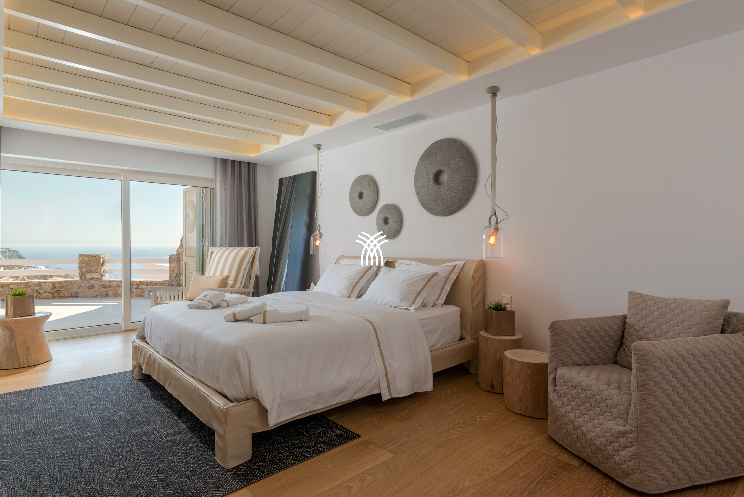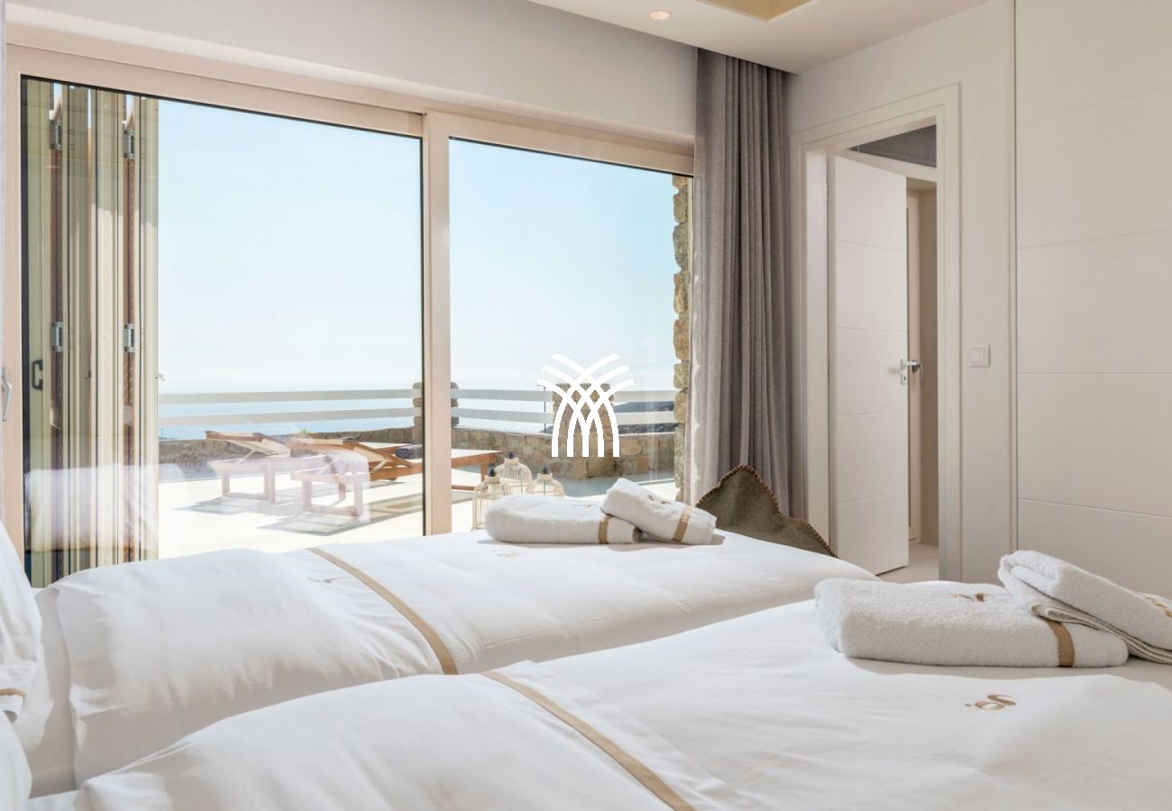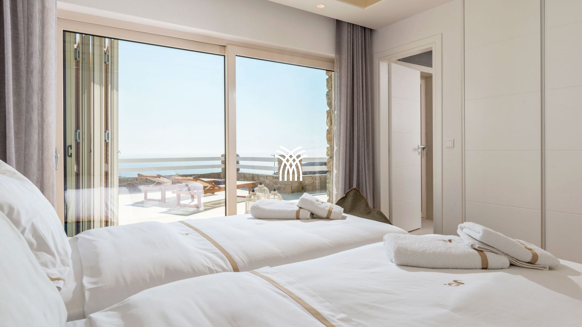 La Villa Demeter dispose de cinq chambres luxueuses, offrant chacune un confort premium. Deux chambres principales au rez-de-chaussée donnent un accès direct aux jardins et à la piscine, tandis que trois chambres supplémentaires à l'étage possèdent des balcons privés et des vues mer à couper le souffle. Chaque chambre est équipée de la climatisation, de salles de bains attenantes avec douches, d'équipements de luxe, de coffres-forts, du WiFi et de la télévision satellite avec Netflix.