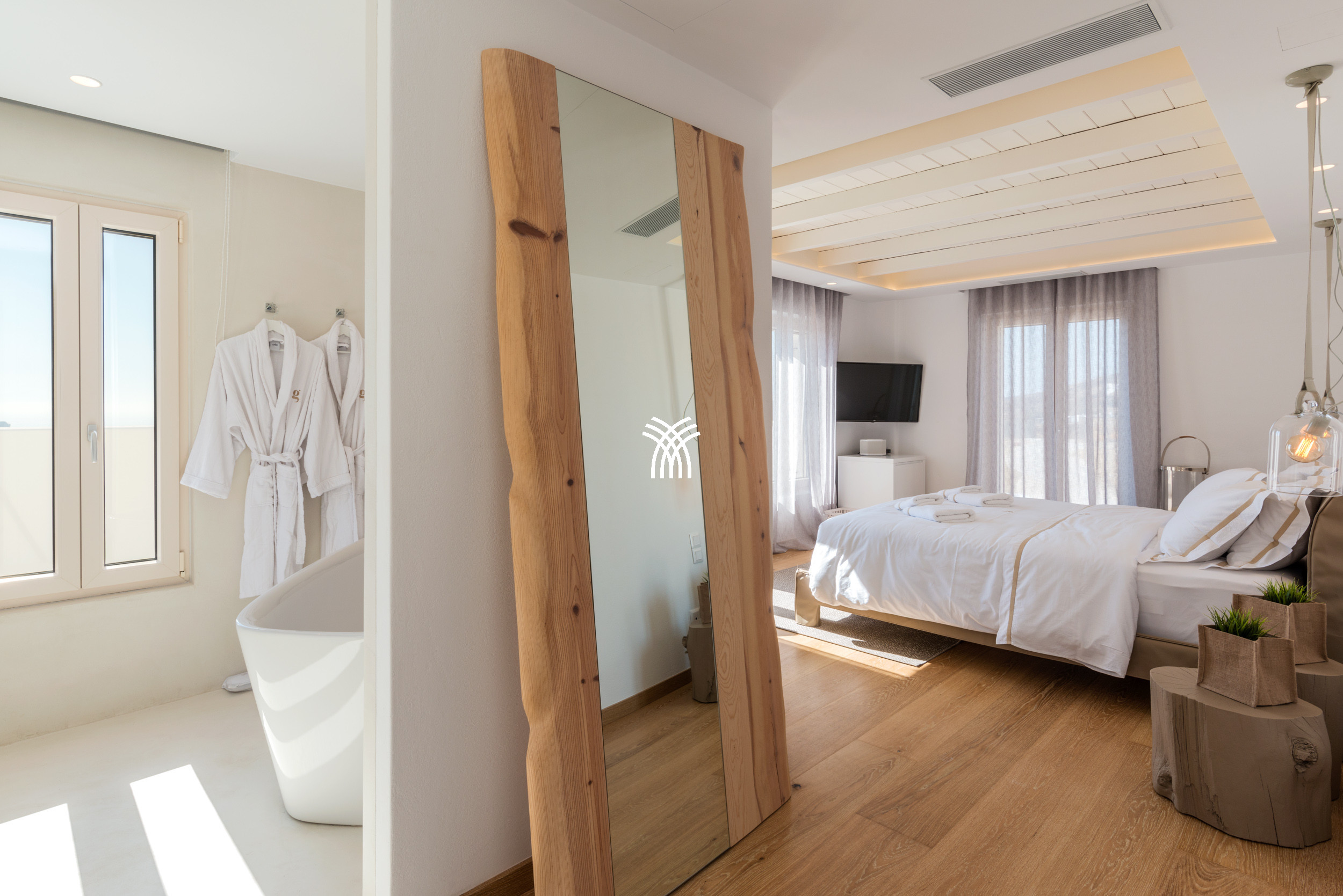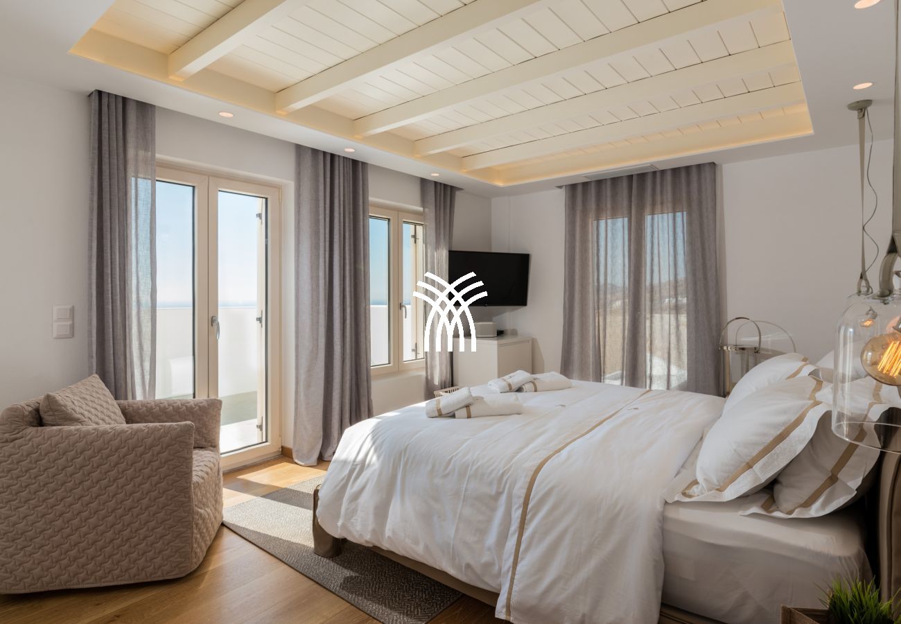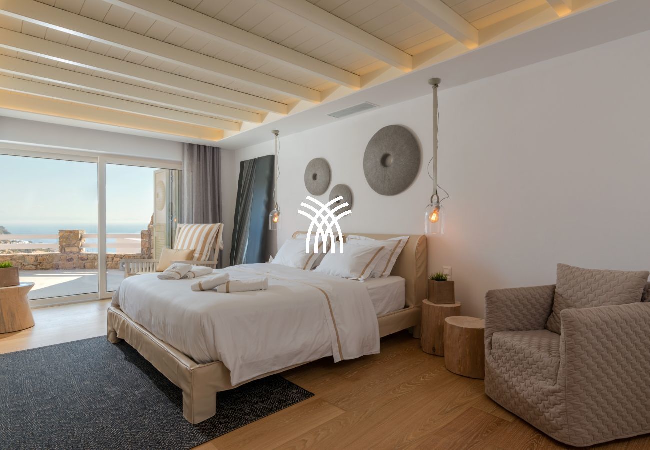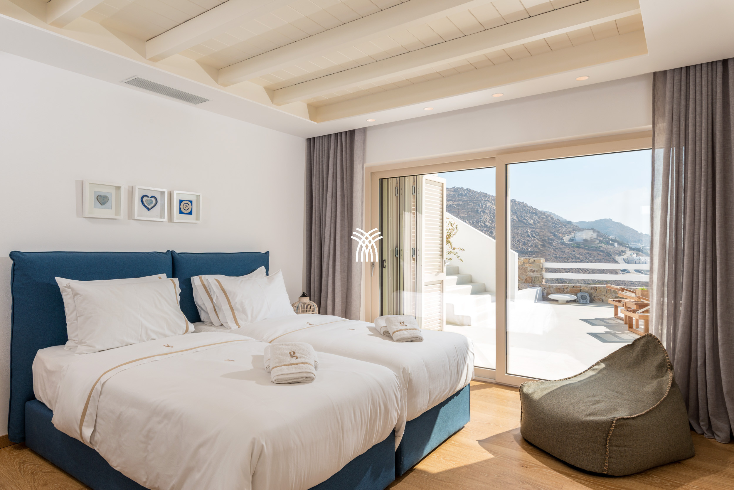 La Villa Demeter dispose de cinq chambres luxueuses, offrant chacune un confort premium. Deux chambres principales au rez-de-chaussée donnent un accès direct aux jardins et à la piscine, tandis que trois chambres supplémentaires à l'étage possèdent des balcons privés et des vues mer à couper le souffle. Chaque chambre est équipée de la climatisation, de salles de bains attenantes avec douches, d'équipements de luxe, de coffres-forts, du WiFi et de la télévision satellite avec Netflix.