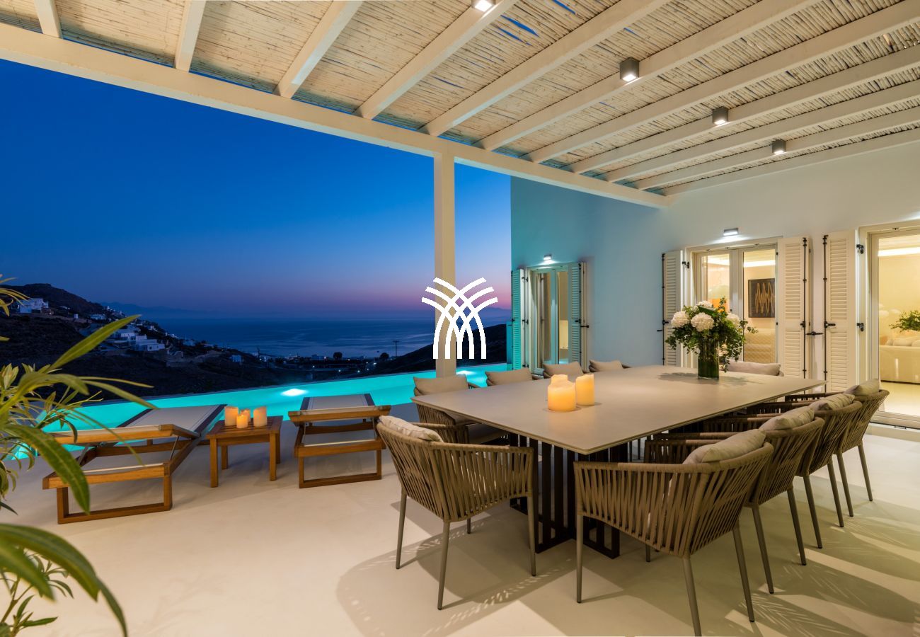Découvrez la beauté intemporelle de Mykonos avec une location de villa de luxe en Grèce dans cette retraite raffinée sur les hauteurs, surplombant Pouli dans l'exclusif quartier de Kanalia. Offrant une vue panoramique sur le coucher de soleil au-dessus de la mer Égée et de l'île sacrée de Délos, cette villa élégante mêle le charme cycladique à une sophistication moderne dans l'un des emplacements les plus recherchés de l'île.