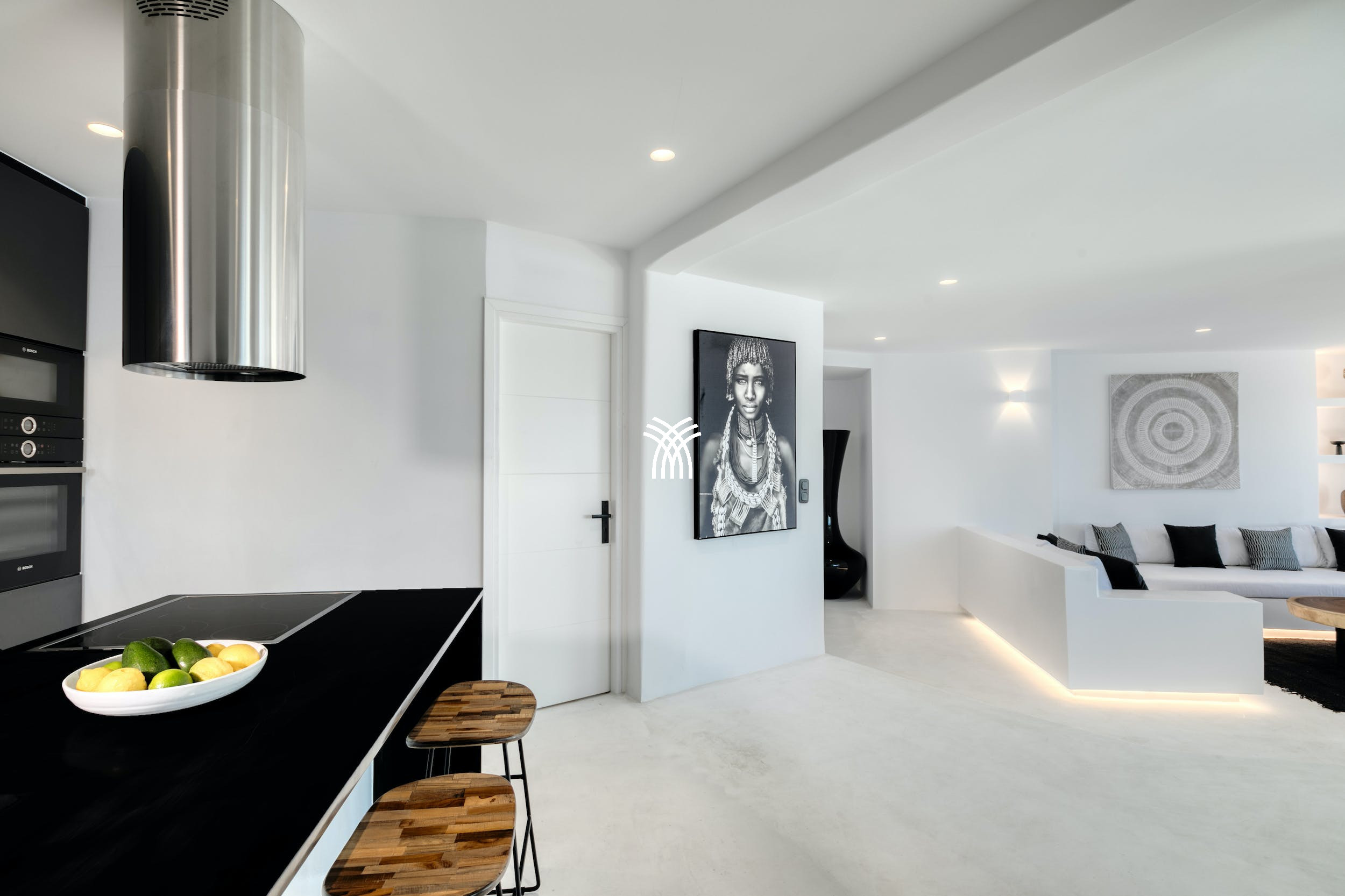 Découvrez la beauté intemporelle de Mykonos avec une location de villa de luxe en Grèce dans cette retraite raffinée sur les hauteurs, surplombant Pouli dans l'exclusif quartier de Kanalia. Offrant une vue panoramique sur le coucher de soleil au-dessus de la mer Égée et de l'île sacrée de Délos, cette villa élégante mêle le charme cycladique à une sophistication moderne dans l'un des emplacements les plus recherchés de l'île.