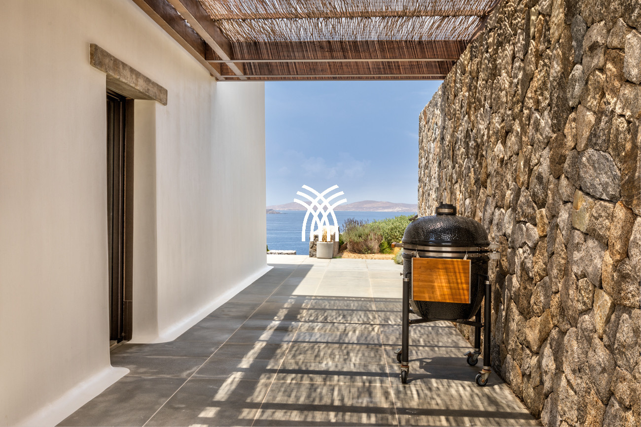 À l'extérieur, la villa dispose d'une piscine privée, d'une zone de barbecue et d'un environnement paysager soigneusement aménagé, idéal pour se divertir, se détendre ou profiter du coucher de soleil mykonien inoubliable. Que vous recherchiez des moments de tranquillité ou des rassemblements festifs, cette location de villa de luxe en Grèce promet des vacances de rêve remplies de confort, d'élégance et de vues imprenables.