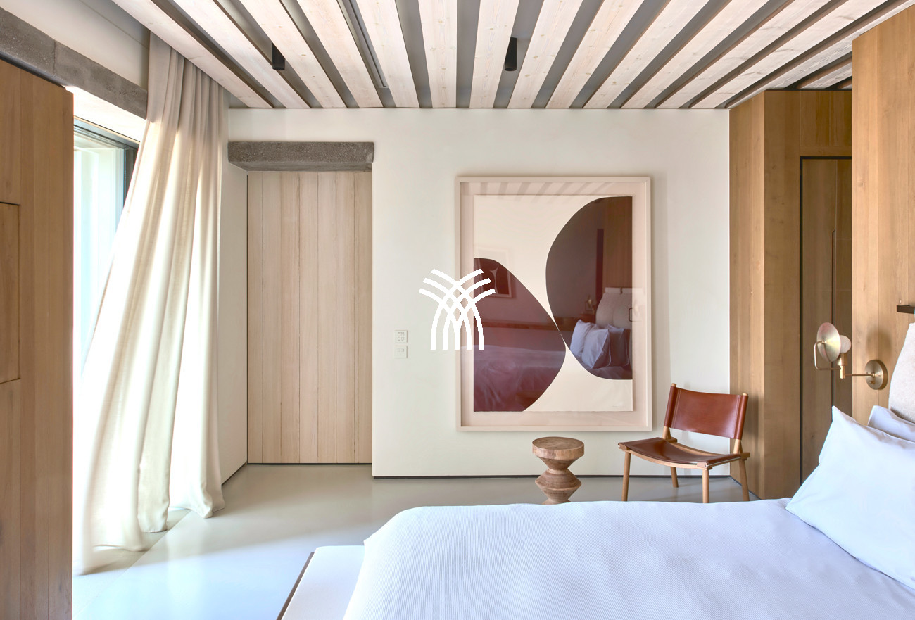 Au-dessous de la piscine et du jardin, les chambres privées offrent une tranquillité paisible, chacune avec une vue panoramique sur la mer et un accès direct aux espaces verdoyants de la villa. La disposition sépare intelligemment les espaces sociaux et intimes, permettant aux invités de se retirer en toute intimité sans jamais se sentir déconnectés de l'expérience partagée.