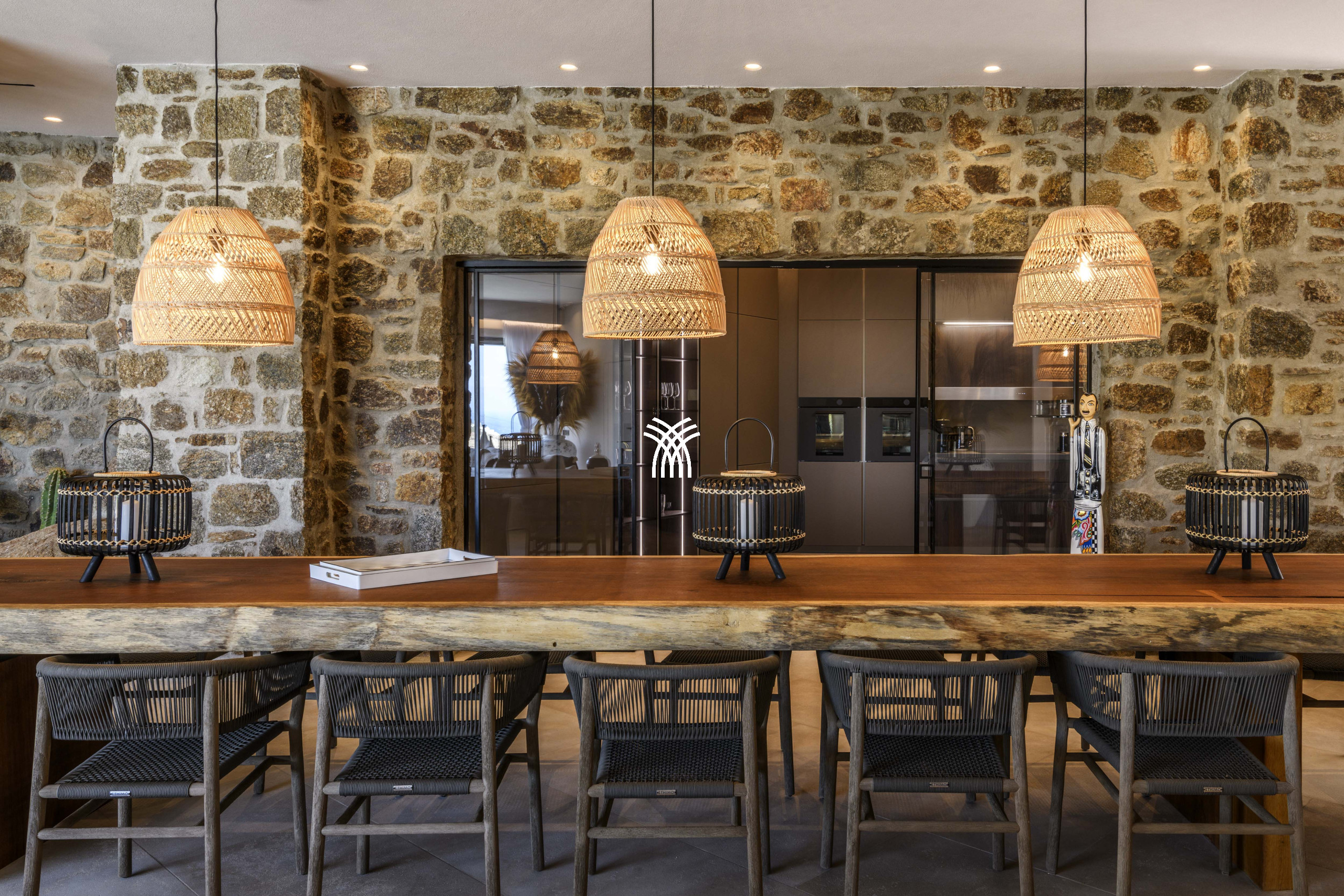 Villa Lavan est un chef-d'œuvre de design, inspiré par la beauté naturelle des Cyclades. La pierre locale, le bois de châtaignier et les finitions blanchies à la chaux s'harmonisent parfaitement, créant une ambiance raffinée mais bohème qui célèbre l'esprit de la vie insulaire grecque. Le résultat est un sanctuaire sophistiqué où le luxe rencontre l'âme.