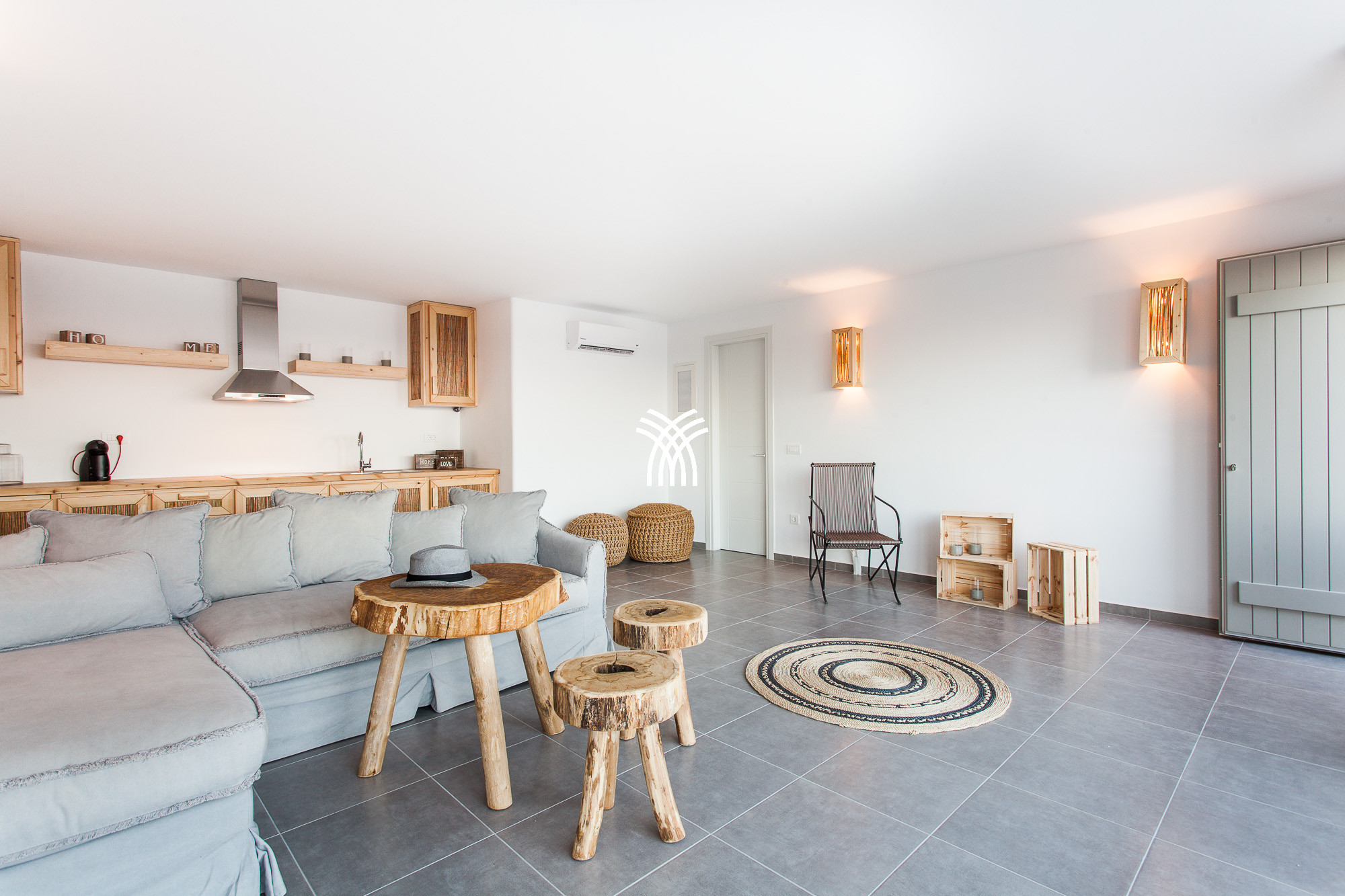 Conçue pour harmoniser les espaces intérieurs et extérieurs, cette villa de quatre chambres présente des espaces ouverts élégants imprégnés de matériaux naturels tels que la pierre locale et des éléments en bois artisanaux. Les intérieurs sont soigneusement sélectionnés avec des meubles haut de gamme et des pièces de designer, combinant des esthétiques contemporaines avec des influences grecques intemporelles pour créer un environnement serein et luxueux.