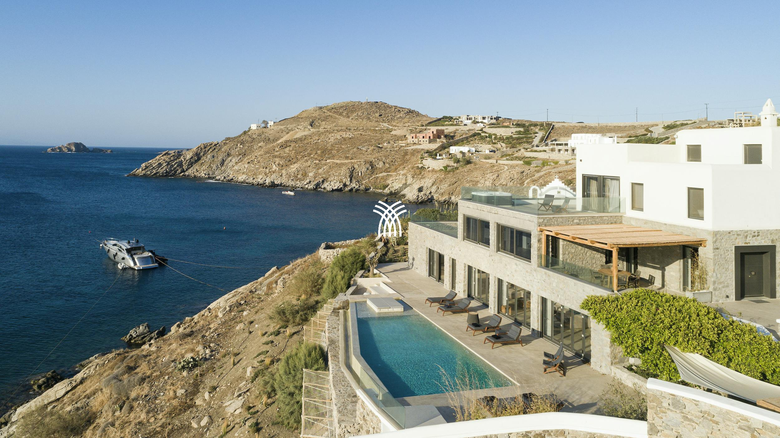 Cette villa extraordinaire offre une intimité absolue, un accès privé à la plage et une terrasse immense de 300 mètres carrés, comprenant une piscine à débordement chauffée et une charmante chapelle bleu et blanc. Conçue à la fois pour la détente et la célébration, Villa Goddess est le parfait mélange de tranquillité et de luxe. Le double salon de la villa accueille la douce brise égéenne, tandis que les chambres entièrement blanches respirent le calme et le confort. Chaque coin a été conçu avec une attention exceptionnelle aux détails — des pergolas ombragées au barbecue en pierre fait main, en passant par la piscine XXL chauffée et même un héliport privé pour des arrivées en toute simplicité.