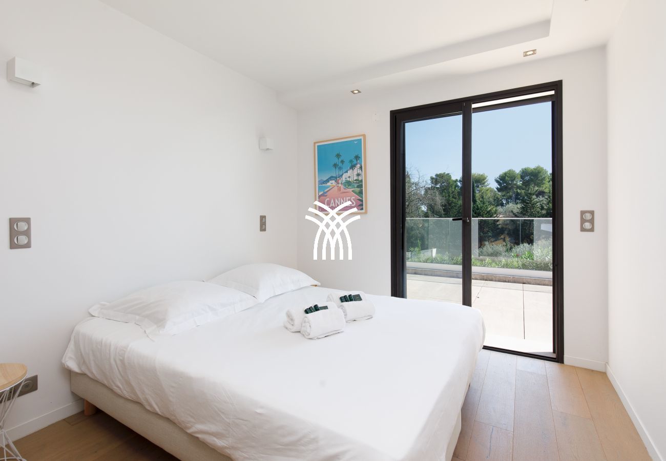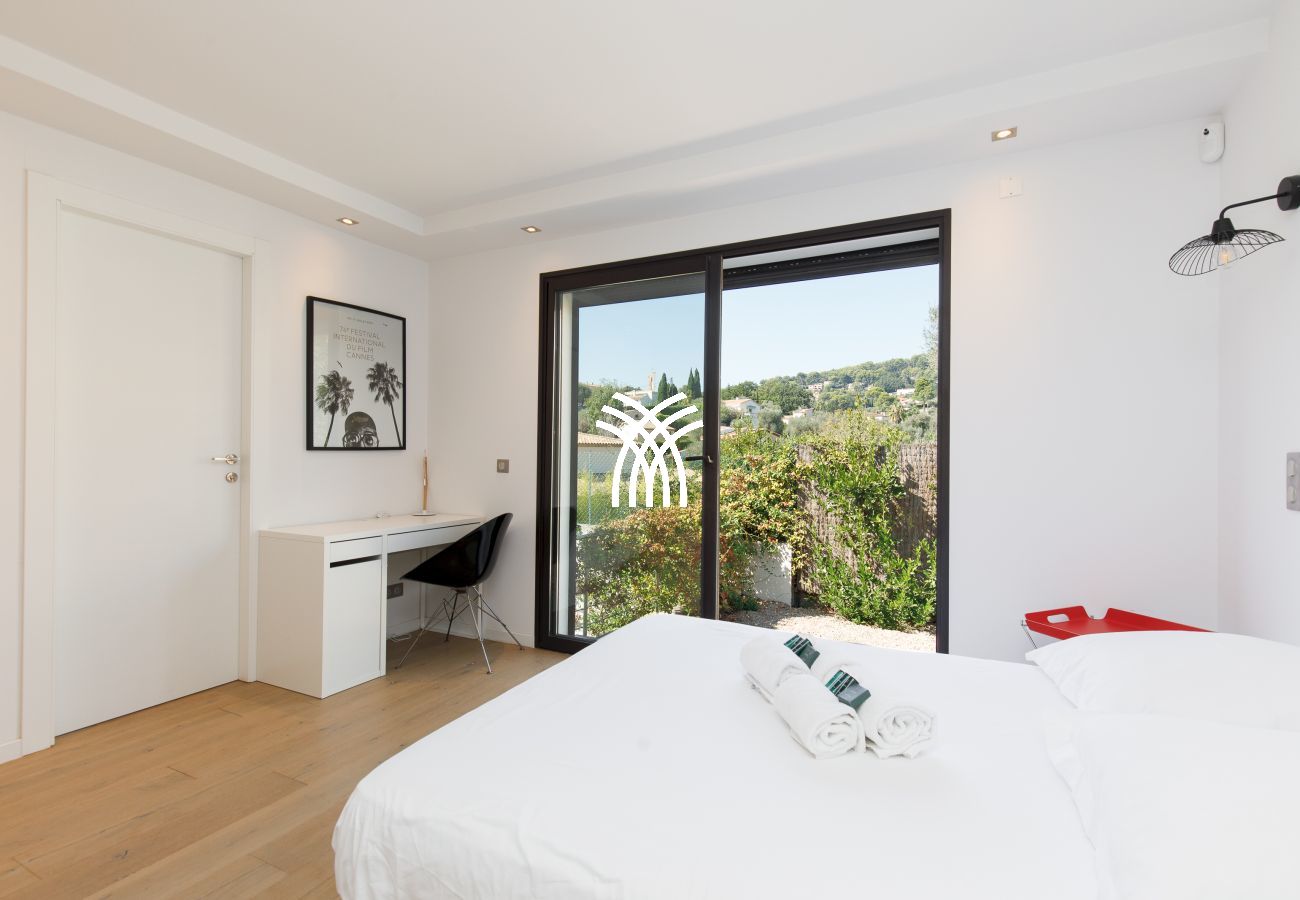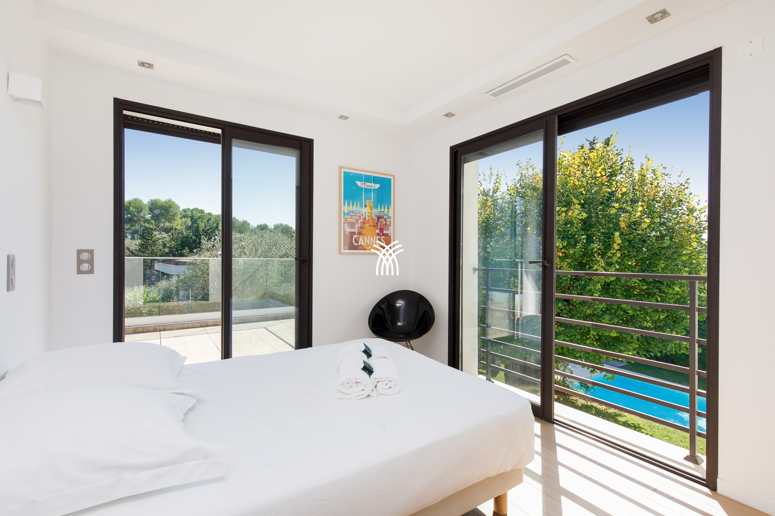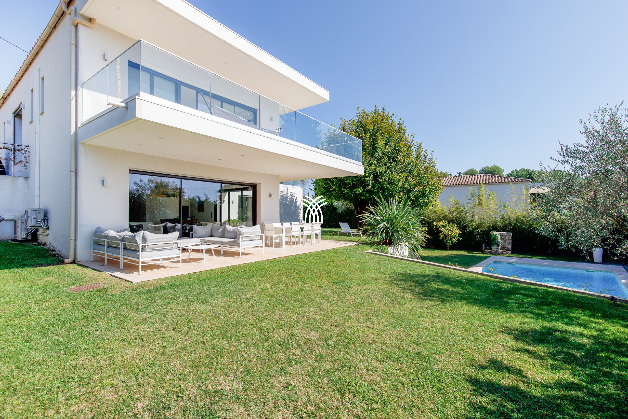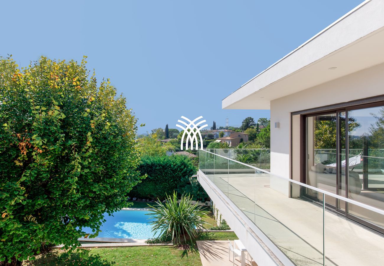 À 7 km de Cannes et de ses plages, dans un quartier résidentiel calme, villa moderne située sur un terrain de 1000 m² non exposé directement.