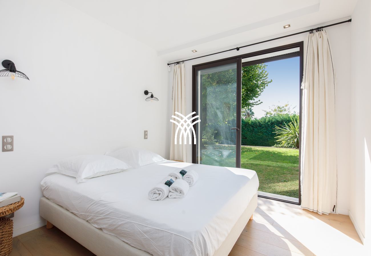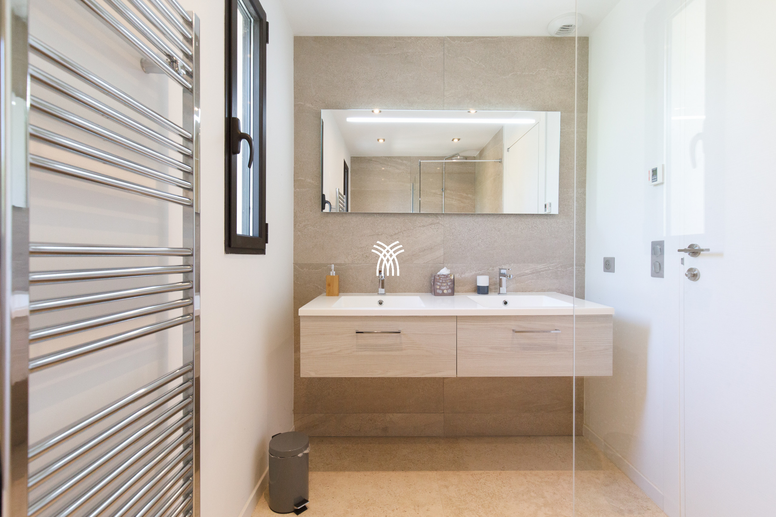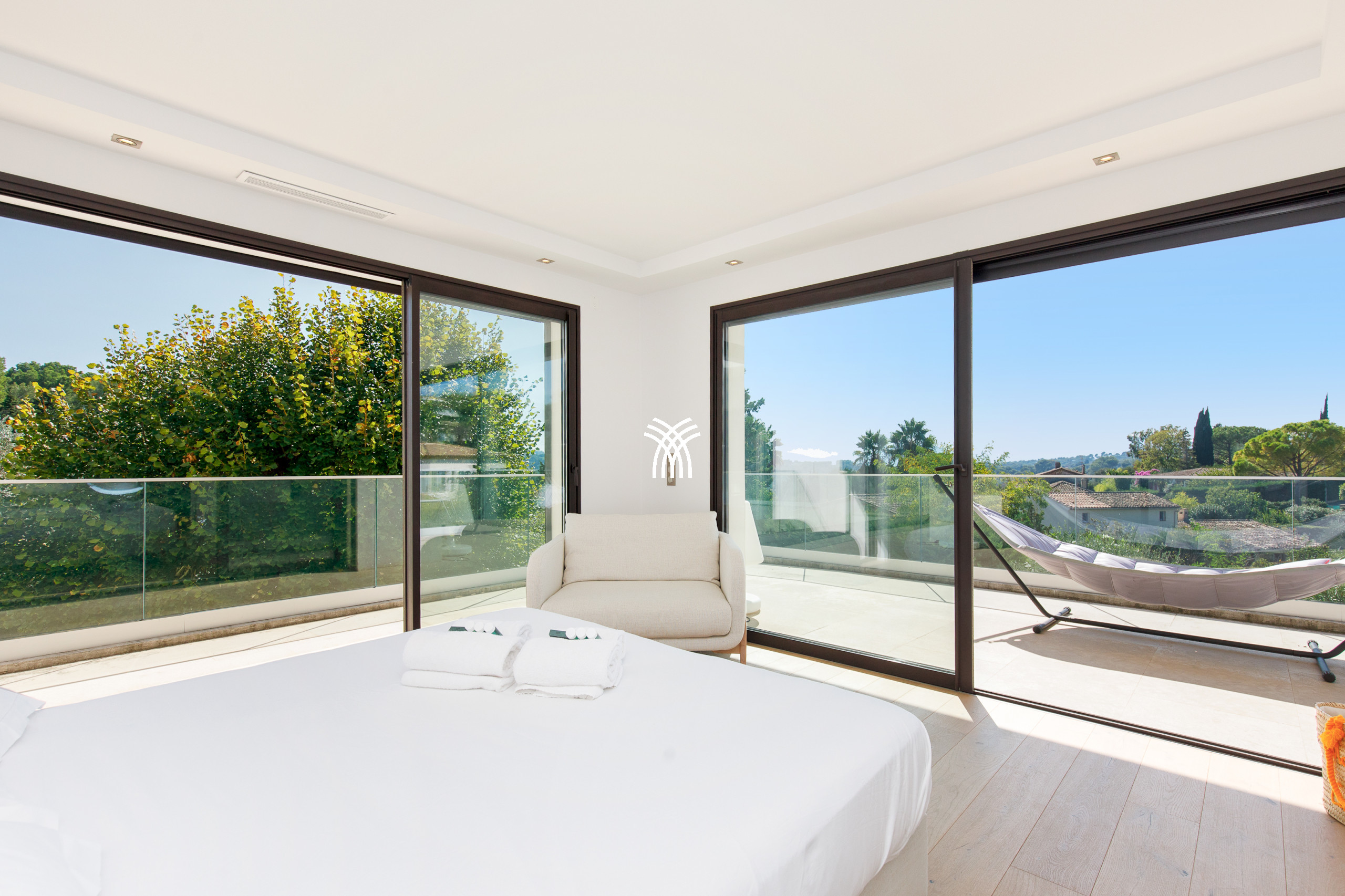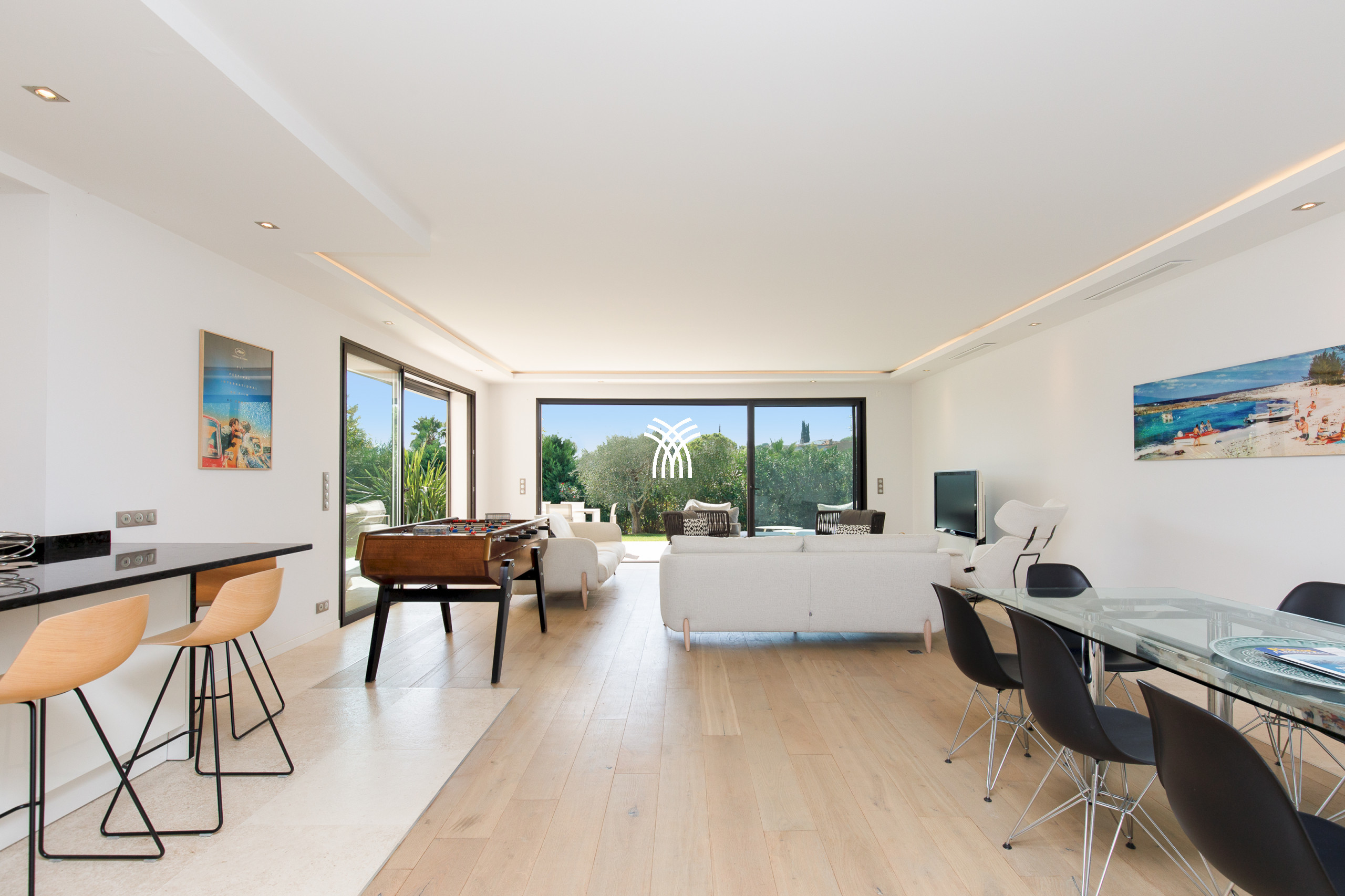À 7 km de Cannes et de ses plages, dans un quartier résidentiel calme, villa moderne située sur un terrain de 1000 m² non exposé directement.