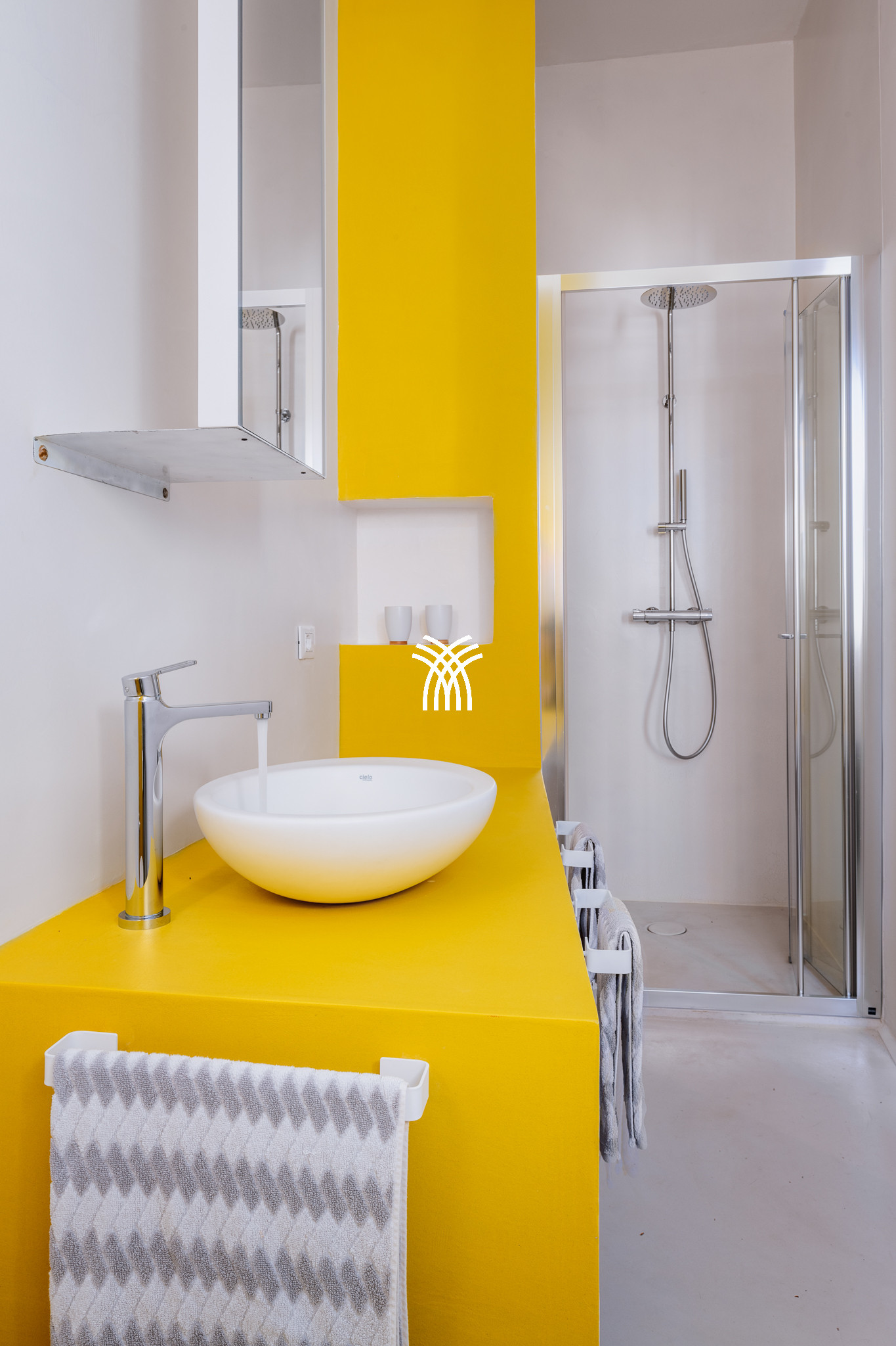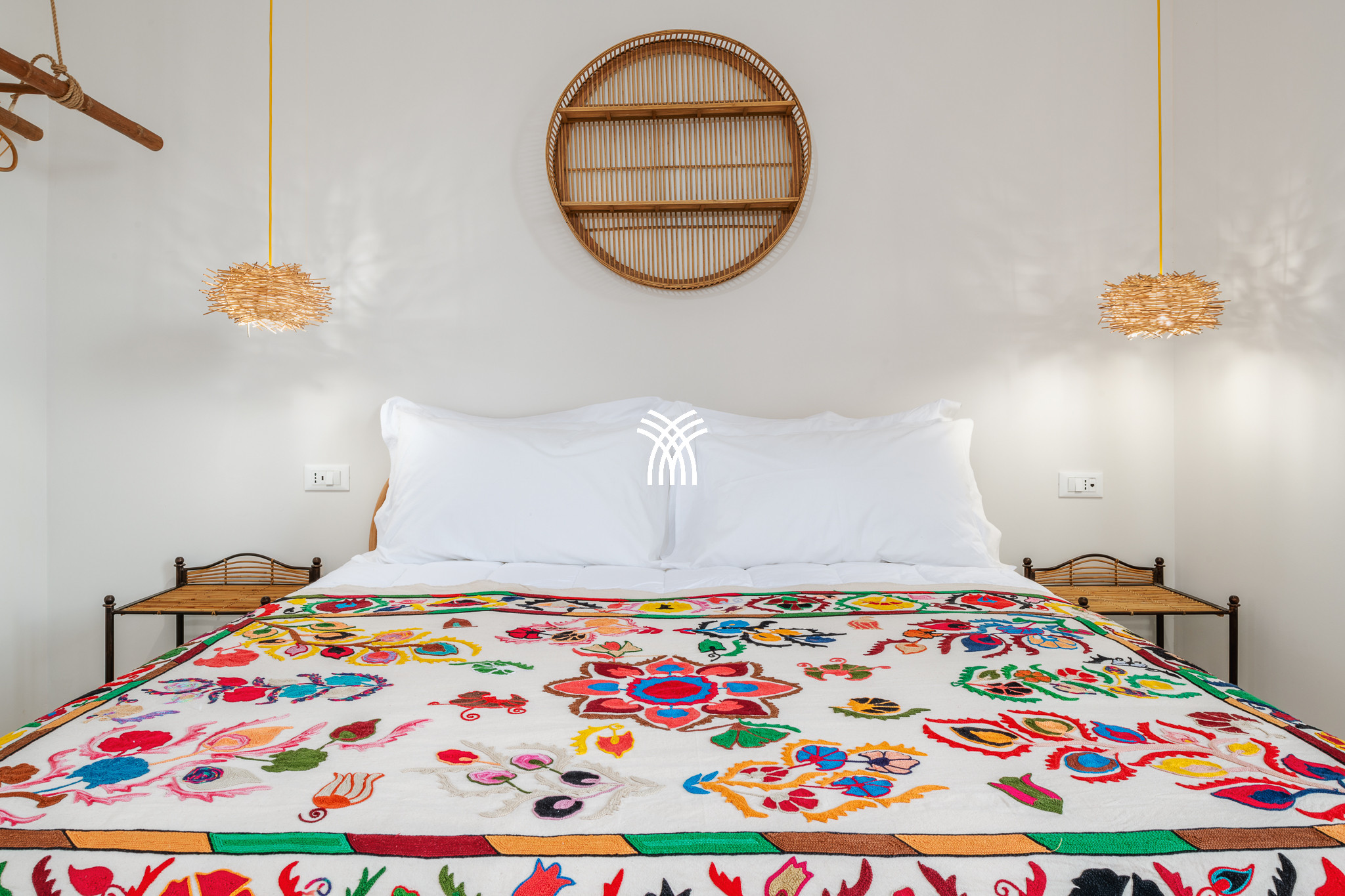 Chaque chambre est une escale à part entière, un hommage vibrant à un continent, une culture ou une couleur, guidée par le symbolisme des chakras et les souvenirs de voyage des propriétaires. La Camera Rossa, inspirée de l’Inde, évoque la force du chakra racine avec ses teintes profondes et ses lignes puissantes. La Camera Arancione, influencée par l’Afrique, respire la chaleur et la sensualité avec ses matériaux nobles et son mobilier sur mesure. La Camera Gialla, baignée de lumière, rend hommage à l’Asie et au chakra du plexus solaire à travers une décoration mêlant bambou, fibres naturelles et objets ramenés de lointains périples. La Camera Verde, aux allures bucoliques, ouvre sur une terrasse en fer forgé et incarne l’amour et la nature, tandis que la Camera Blu, dotée d’une piscine privée, évoque la pureté du Moyen-Orient et la communication profonde.