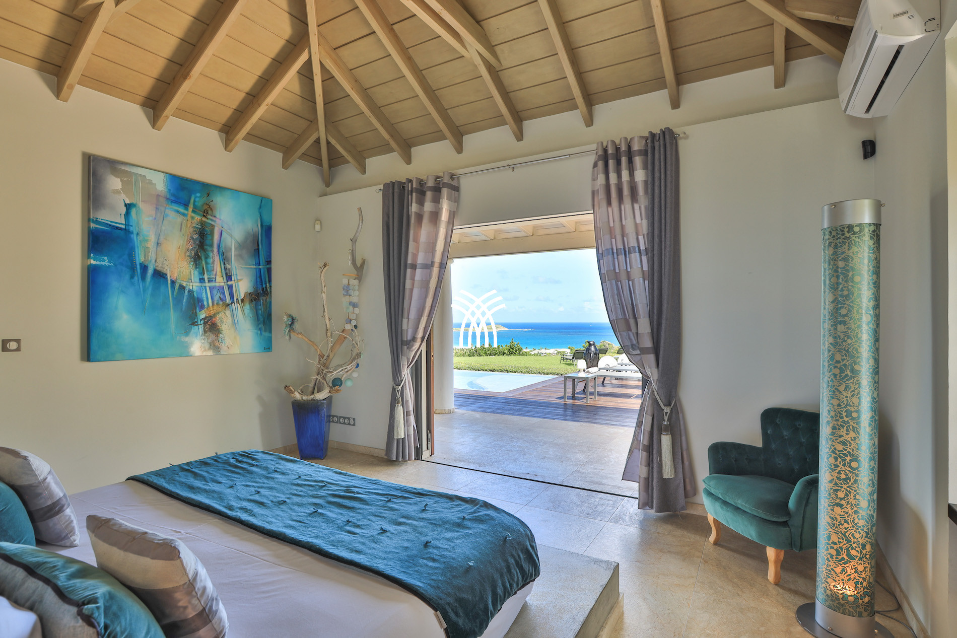 Villa Sunrise St Martin, villa 3 chambres, 3 salles de bains, moderne, située sur les hauteurs de la Baie Orientale vous offre une vue spectaculaire et exceptionnelle sur St Barth, Tintamarre et Pinel.