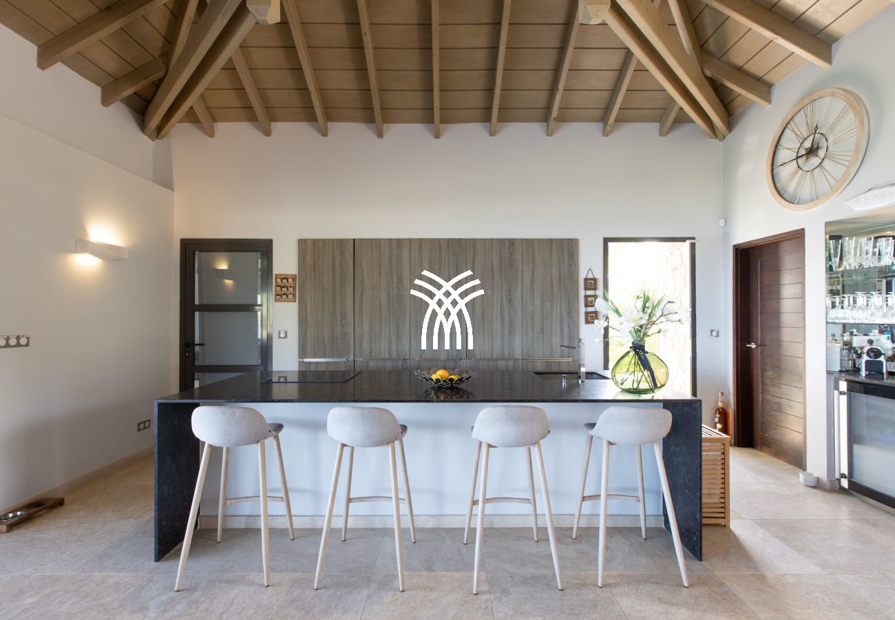 Le cœur de la villa est son espace de vie ouvert, mêlant harmonieusement les espaces intérieurs et extérieurs. Détendez-vous dans le salon élégant, équipé d'un système de divertissement haut de gamme, ou préparez des repas dans la cuisine moderne et épurée dotée d'appareils de premier ordre. L'espace repas en plein air sur la terrasse est parfait pour savourer des repas tout en profitant d'un panorama pittoresque.