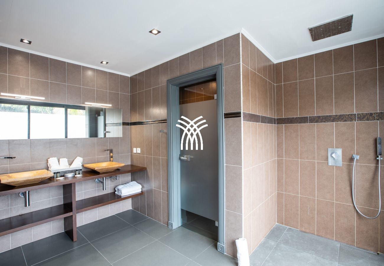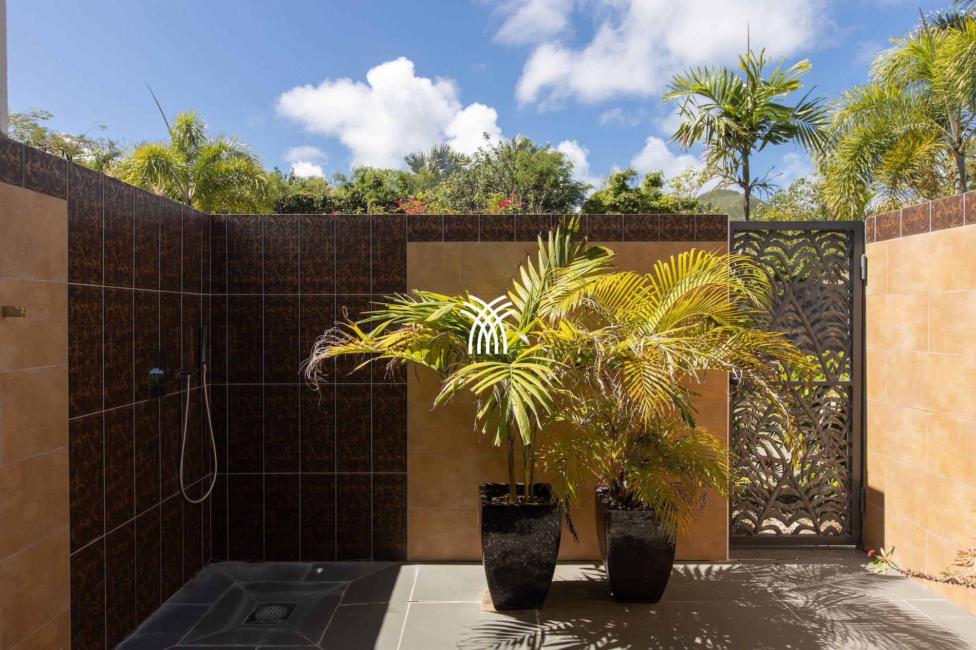 Certaines chambres disposent de douches extérieures pour une expérience tropicale unique. Chaque chambre est équipée d’une salle de bain privative, garantissant confort et intimité à tous les invités.
