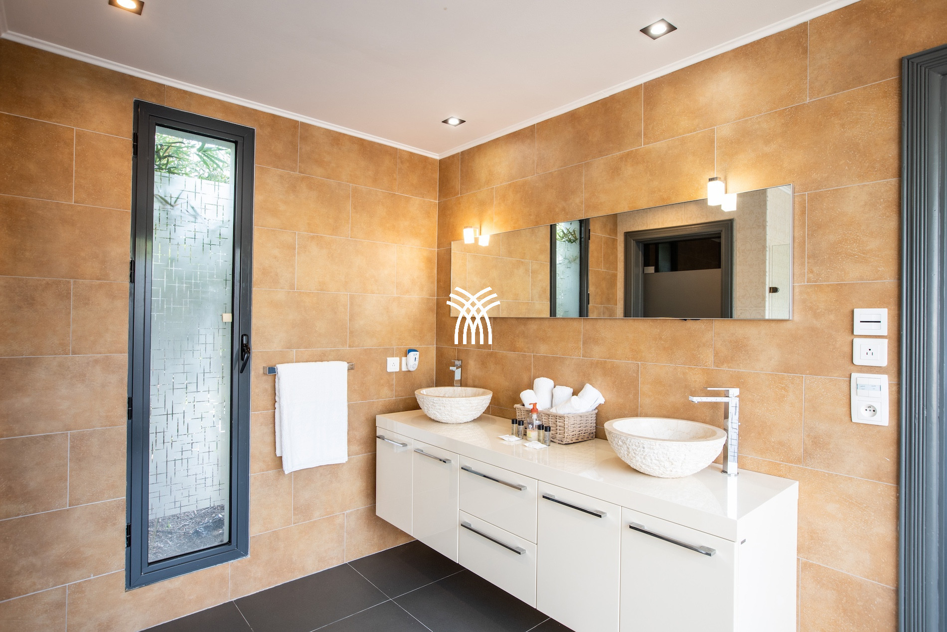 Trois chambres sont de même taille avec leur salle de bains en suite, leur douche extérieure et la suite parentale possède un jacuzzi.