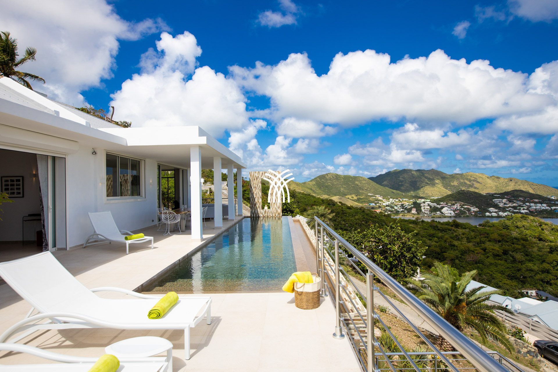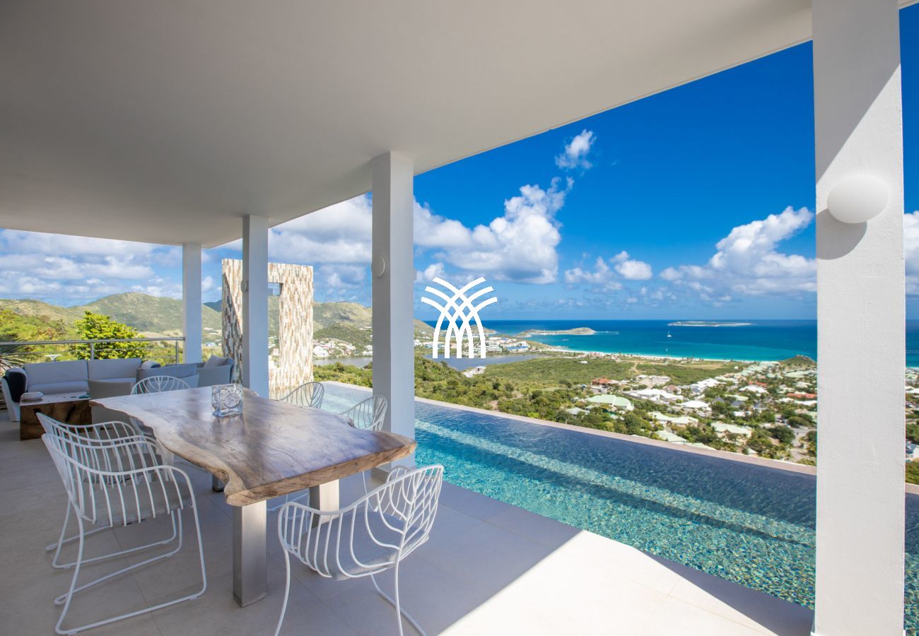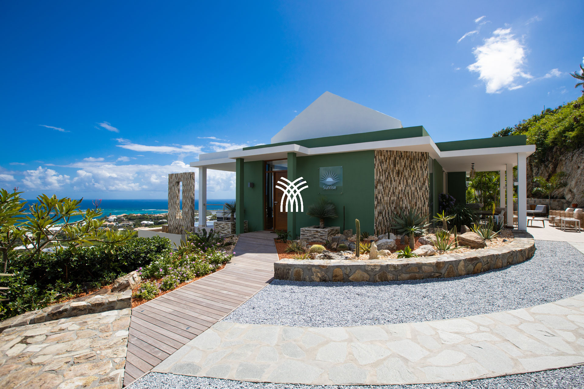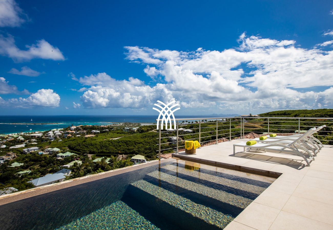 Villa Sunrise St Martin, villa 3 chambres, 3 salles de bains, moderne, située sur les hauteurs de la Baie Orientale vous offre une vue spectaculaire et exceptionnelle sur St Barth, Tintamarre et Pinel.