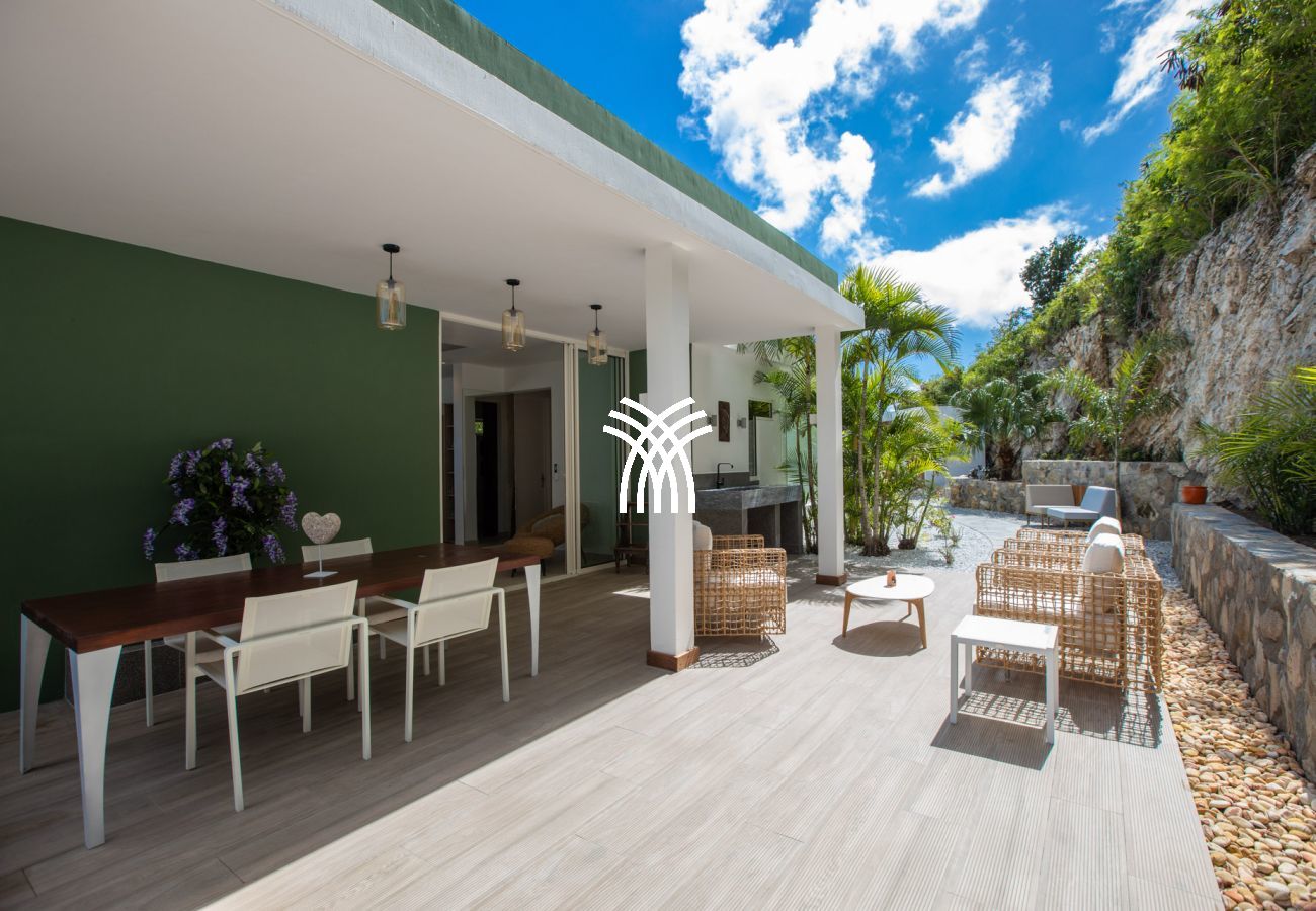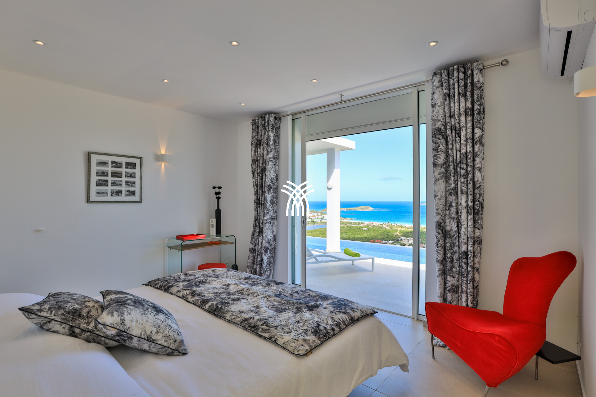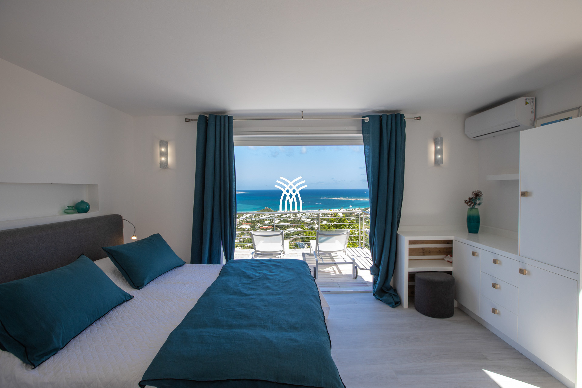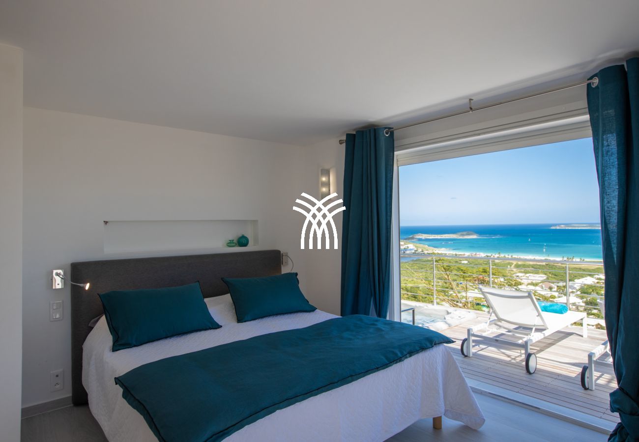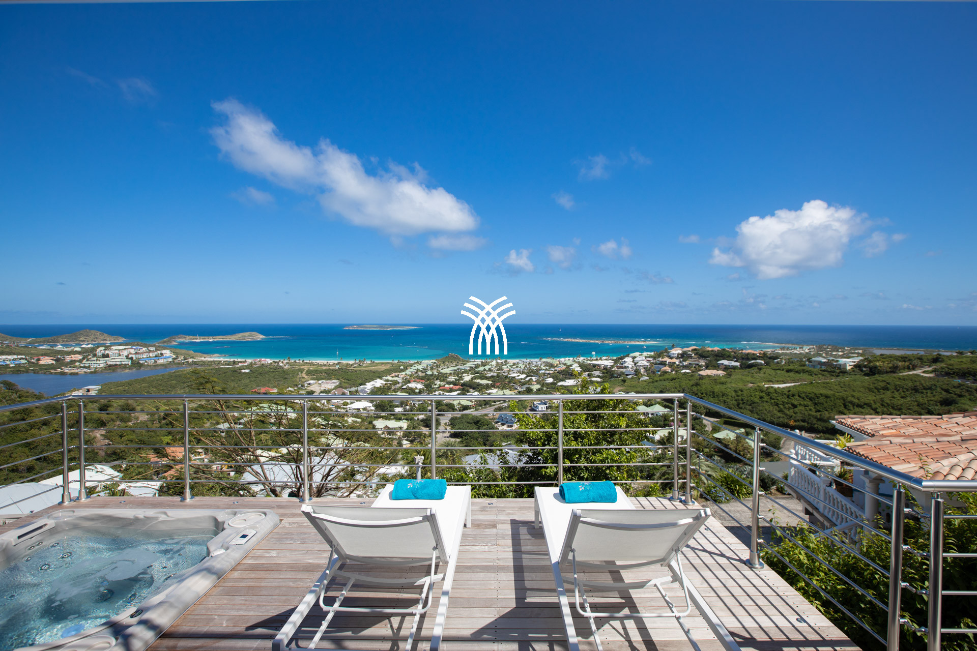 Villa Sunrise St Martin, villa 3 chambres, 3 salles de bains, moderne, située sur les hauteurs de la Baie Orientale vous offre une vue spectaculaire et exceptionnelle sur St Barth, Tintamarre et Pinel.