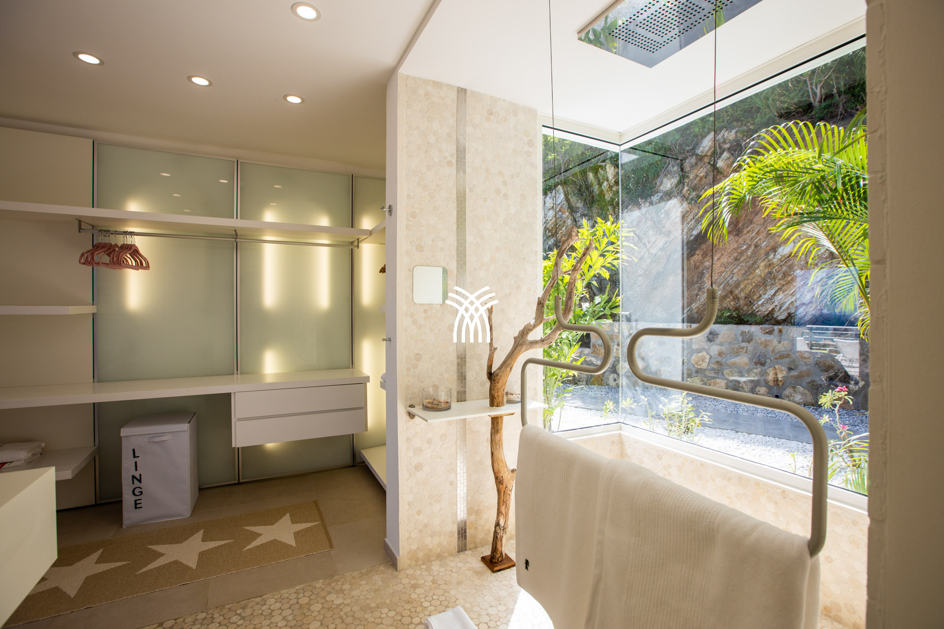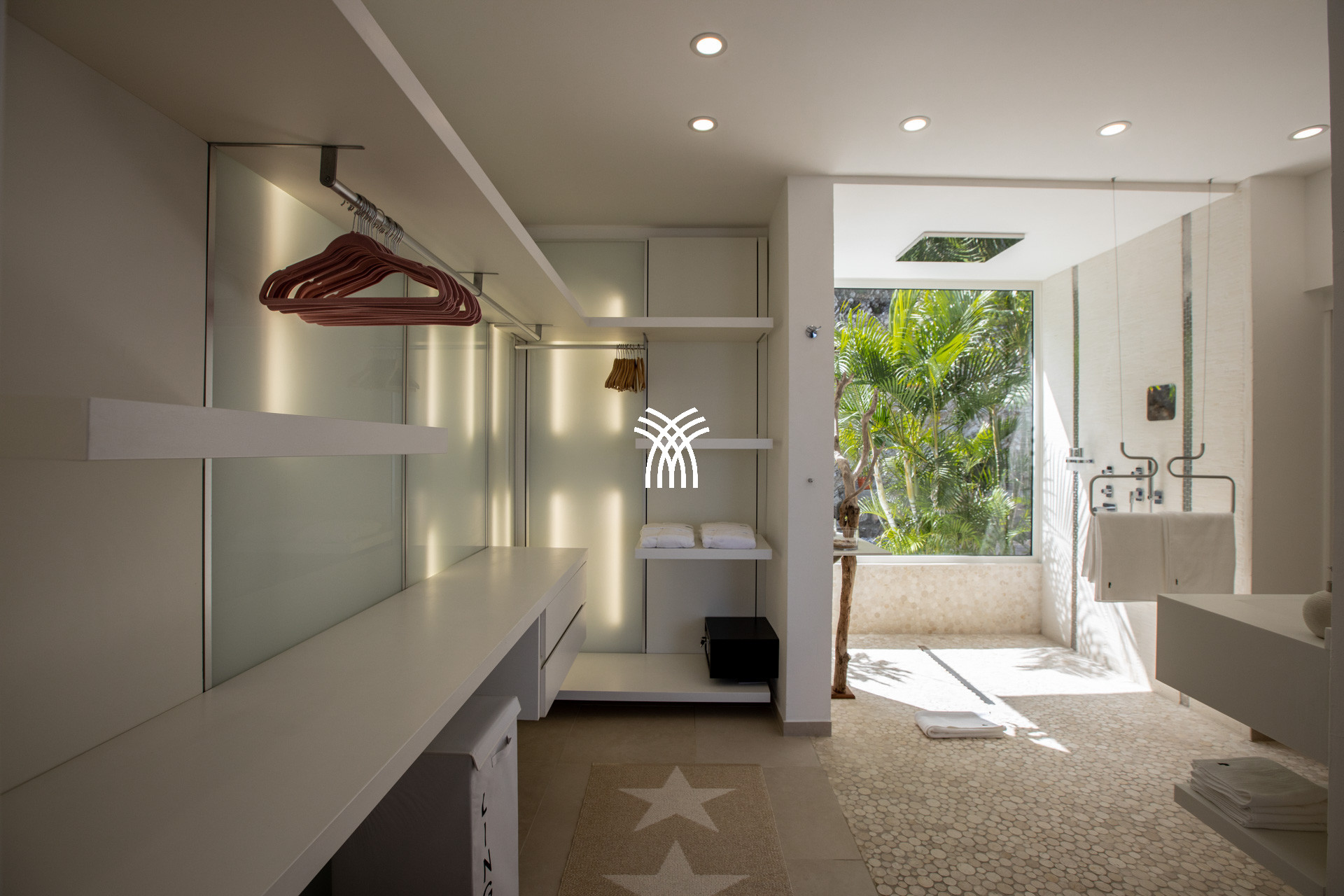Cette villa de prestige dispose de 3 chambres élégantes. Deux chambres bénéficient de douches extérieures, pour une expérience unique au cœur de la nature tropicale. La troisième chambre, aménagée avec deux lits simples et une télévision, est idéale pour accueillir des enfants, créant ainsi une villa parfaitement adaptée aux familles.