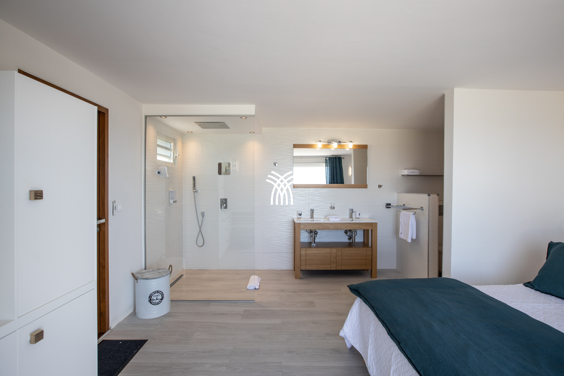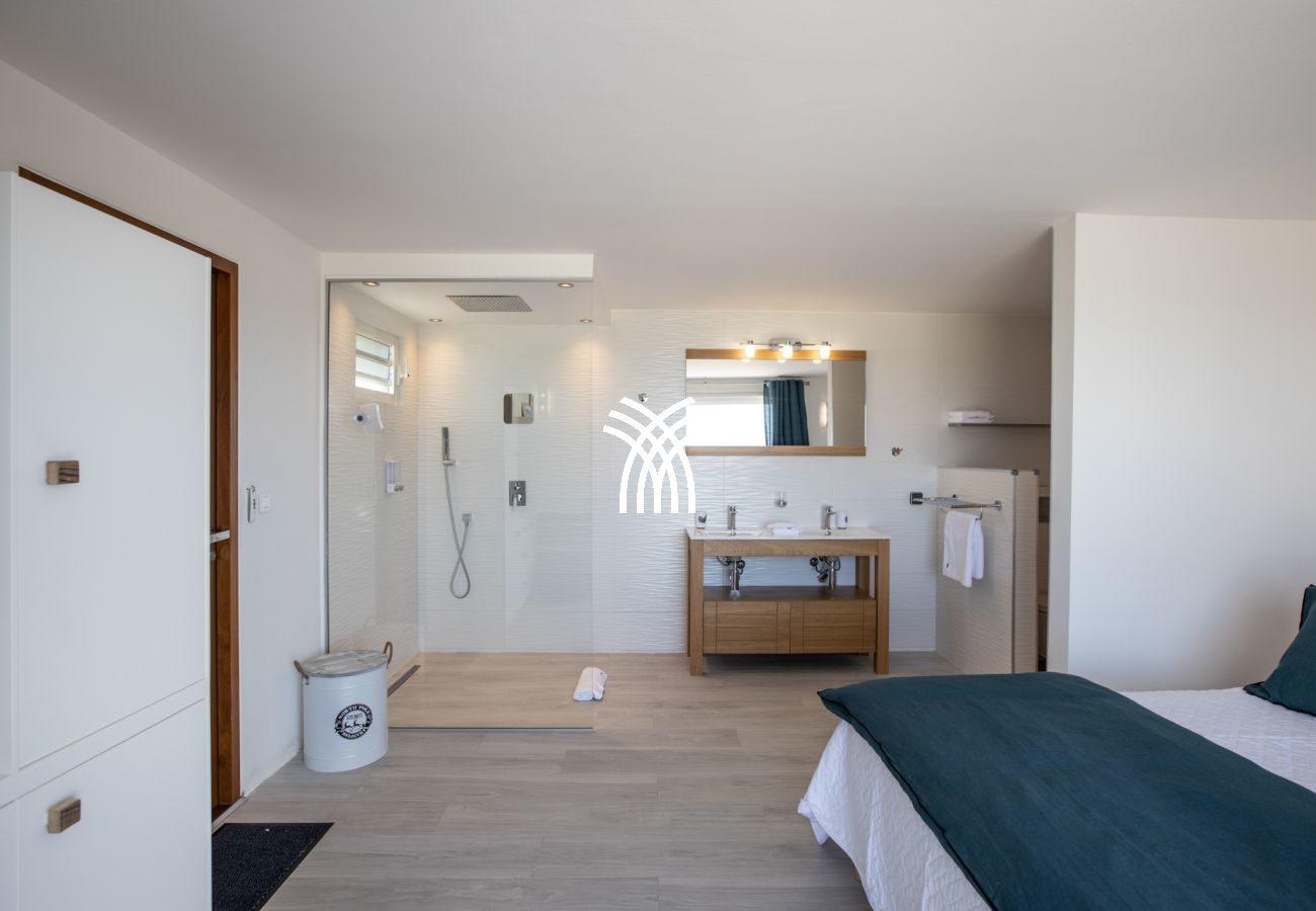 L’espace de vie, spacieux et convivial, s’ouvre sur une terrasse ensoleillée et une piscine privée chauffée (chauffage disponible du 16 décembre au 15 avril), offrant un cadre idyllique pour se détendre face à l’océan. La cuisine haut de gamme est entièrement équipée pour préparer de délicieux repas dans un environnement chic et moderne.
