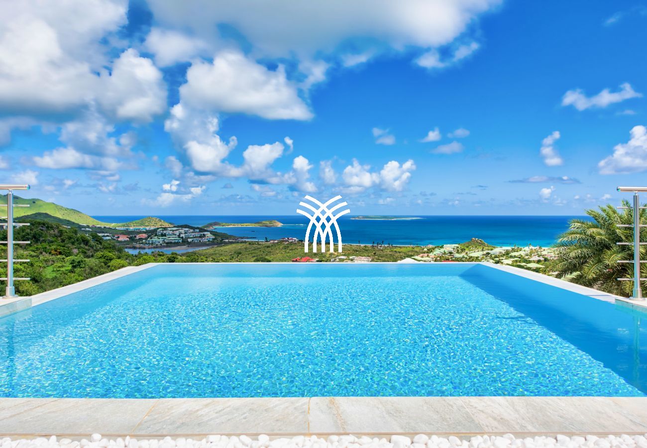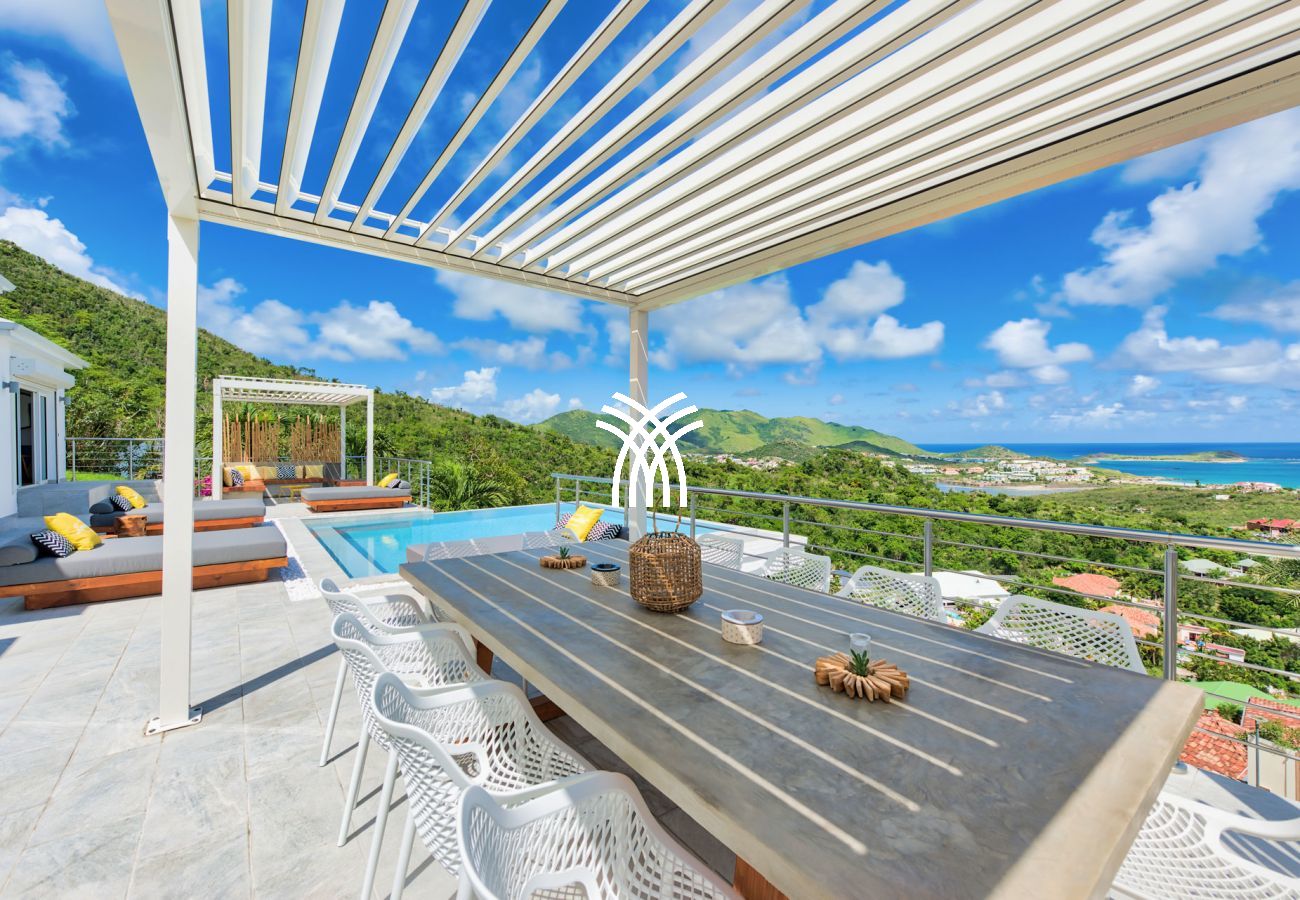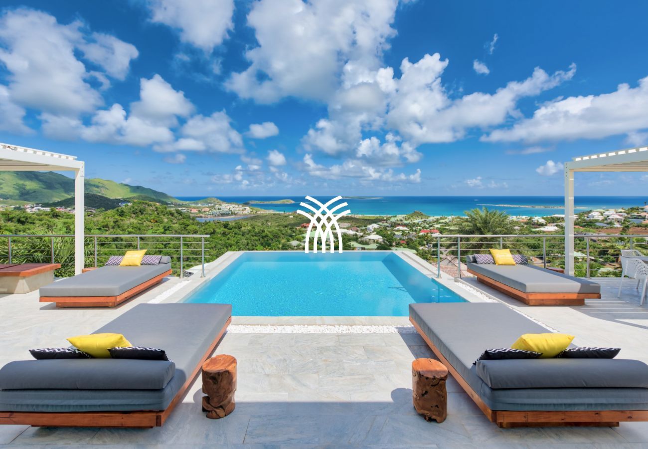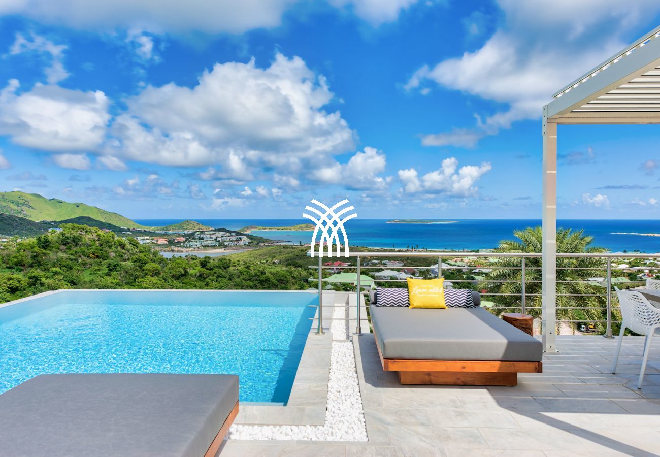 Villa Karukera St Martin, location de vacances moderne de 4 chambres et 4 salles de bains, est située sur les hauteurs de la Baie Orientale.
