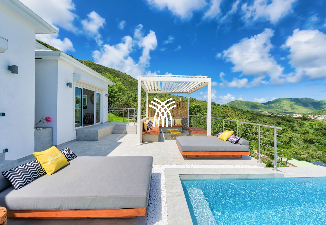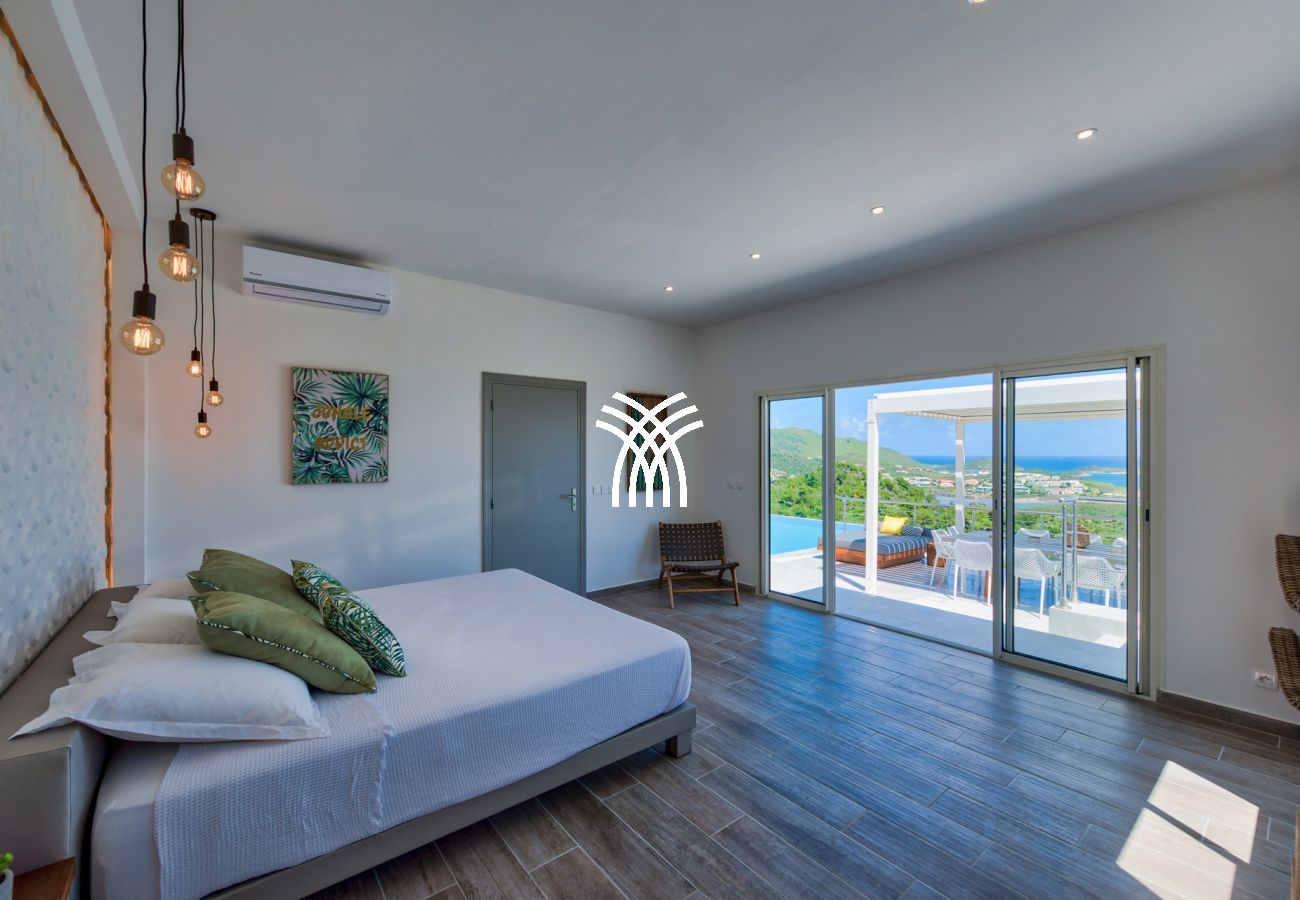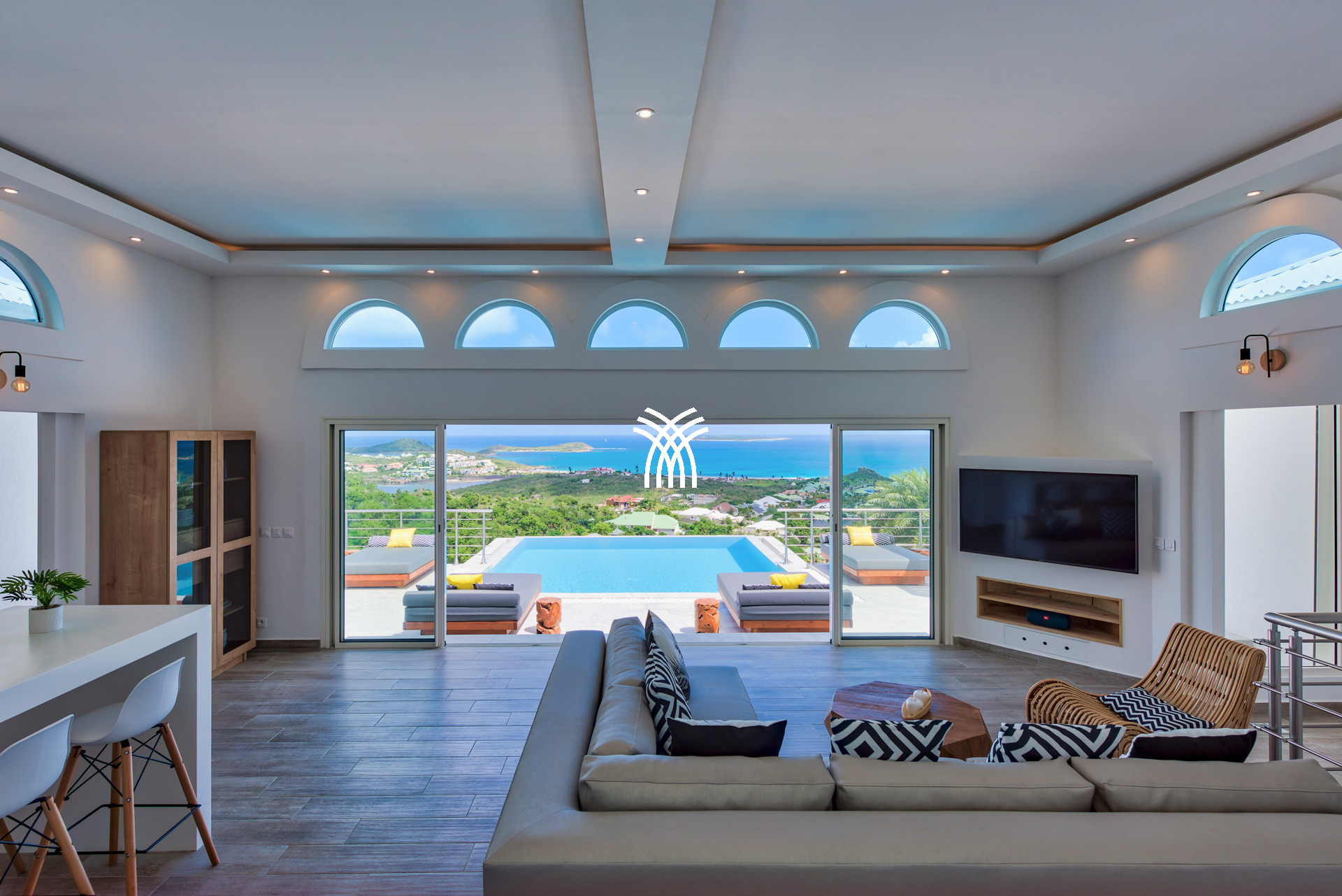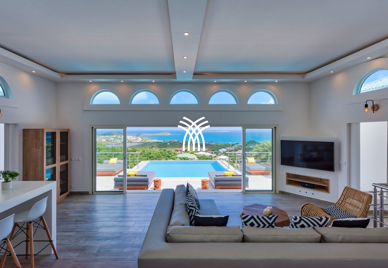 Villa Karukera St Martin, location de vacances moderne de 4 chambres et 4 salles de bains, est située sur les hauteurs de la Baie Orientale.