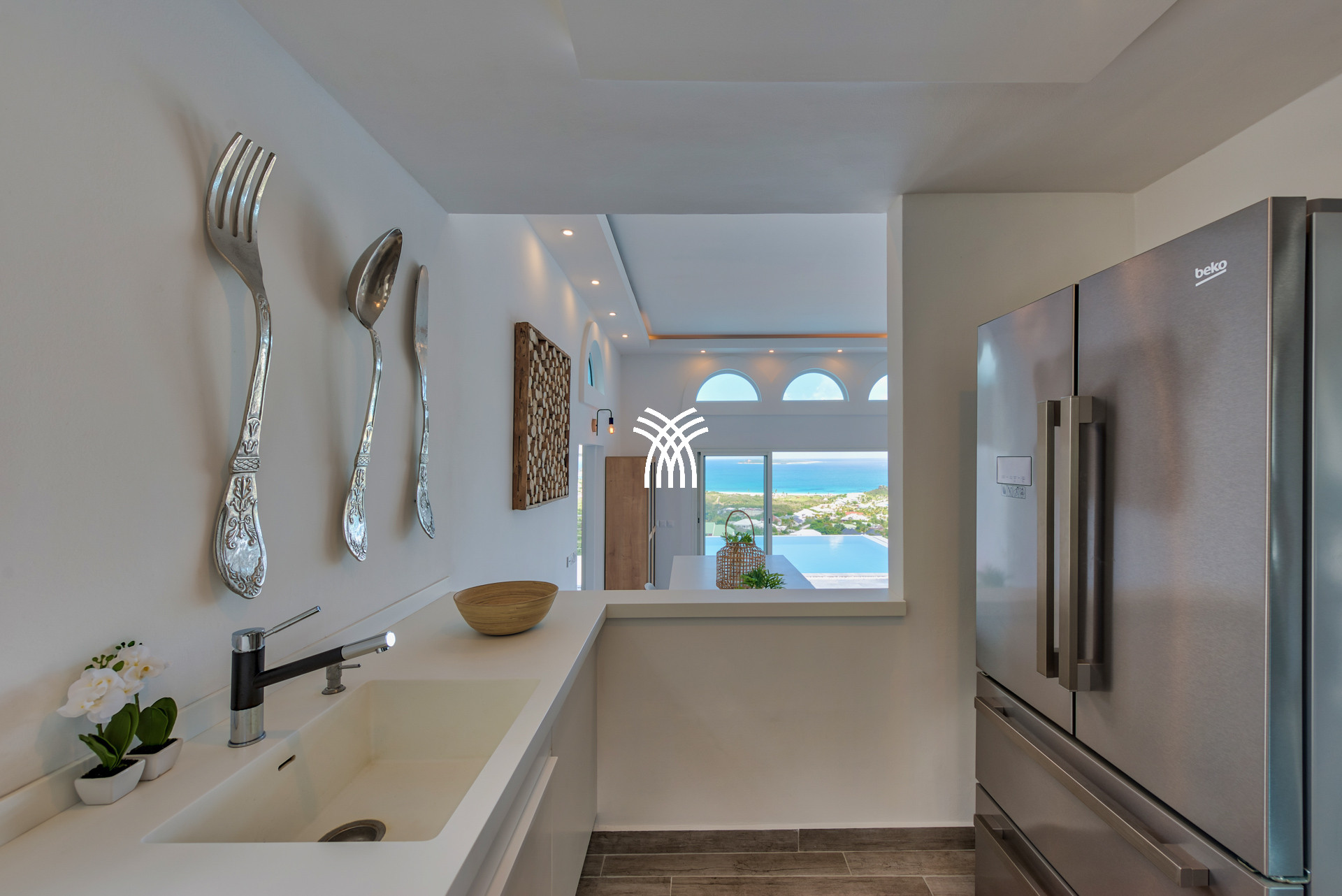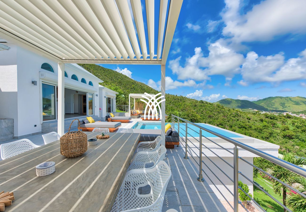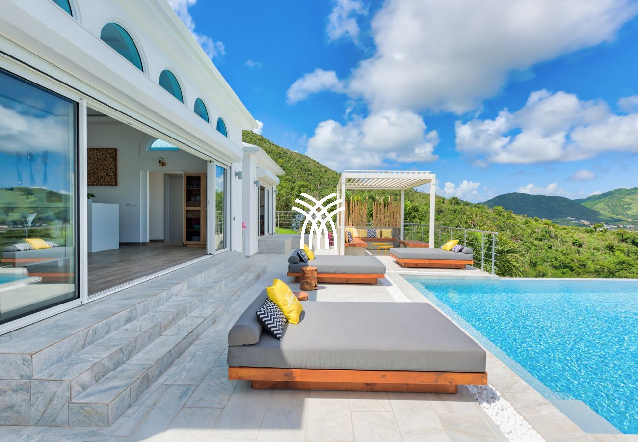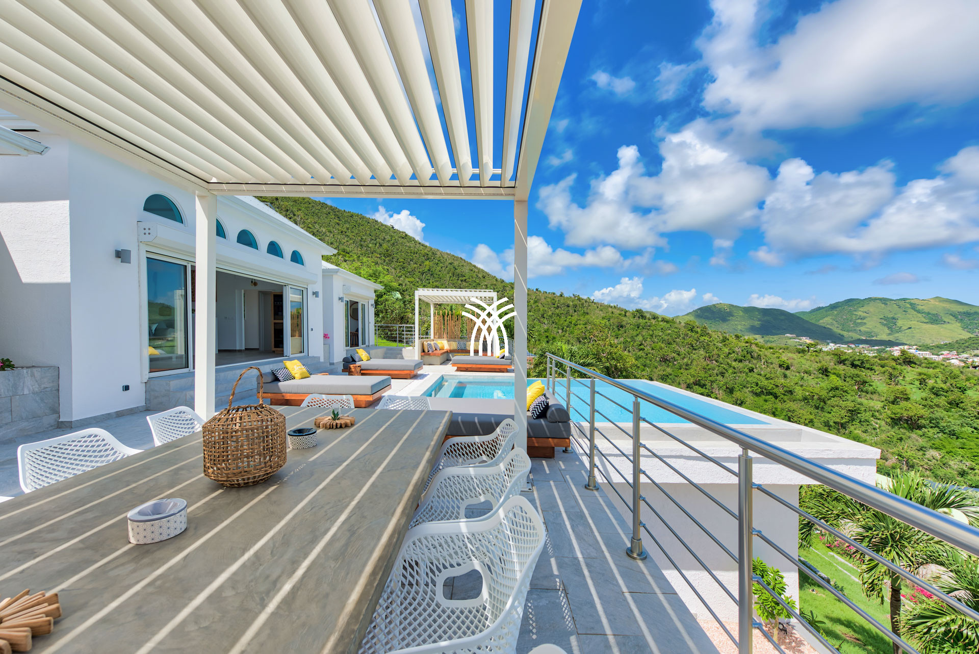 Villa Karukera St Martin, location de vacances moderne de 4 chambres et 4 salles de bains, est située sur les hauteurs de la Baie Orientale.