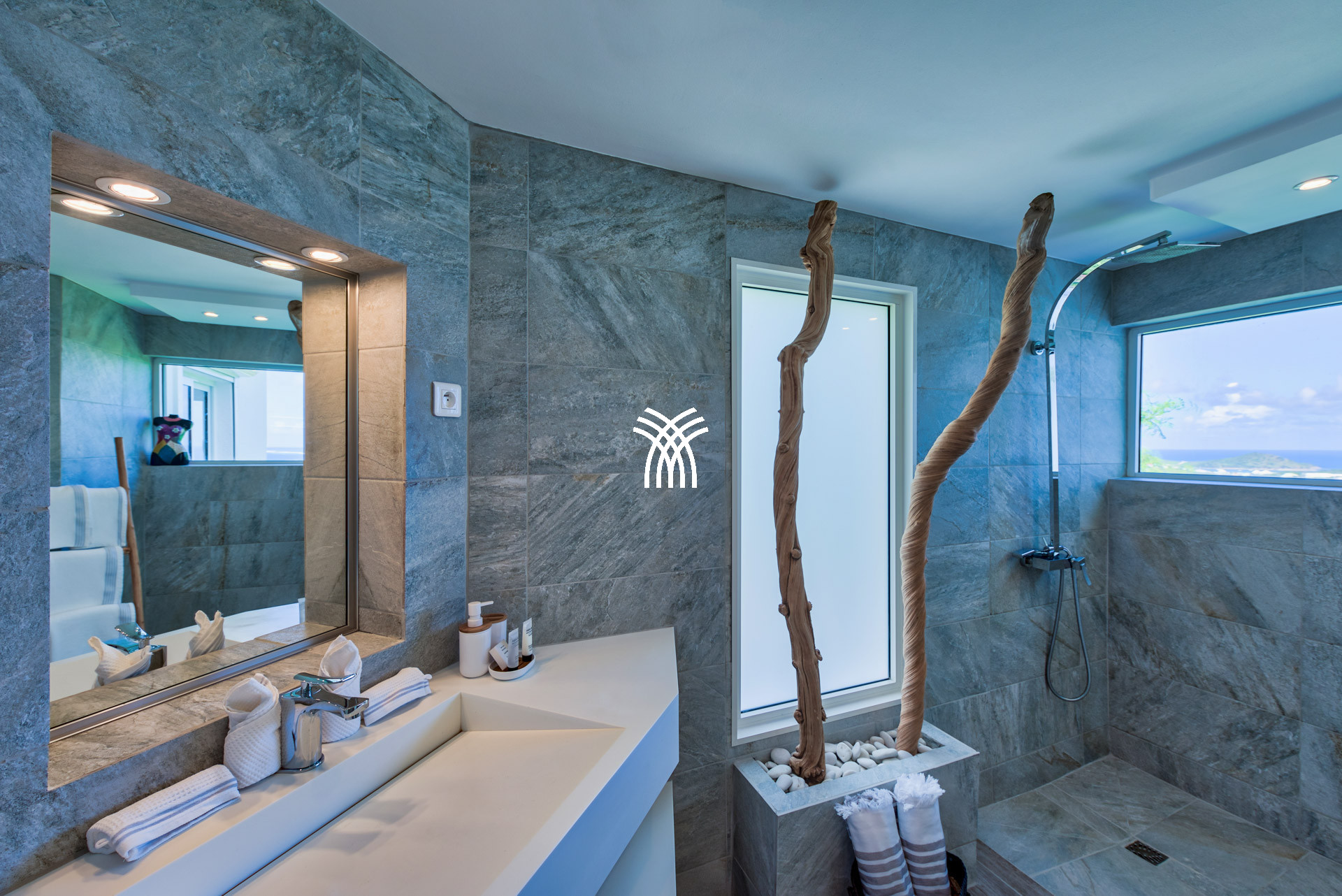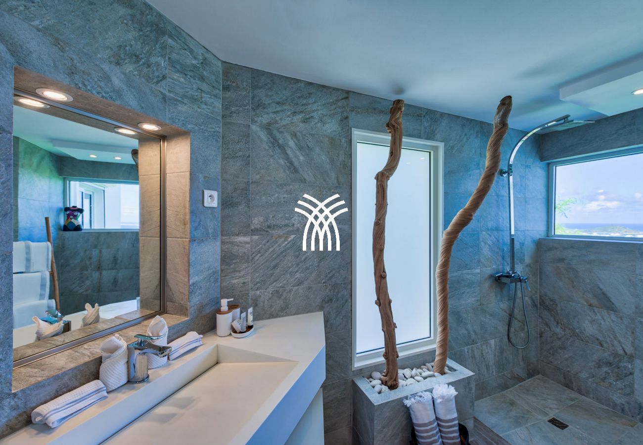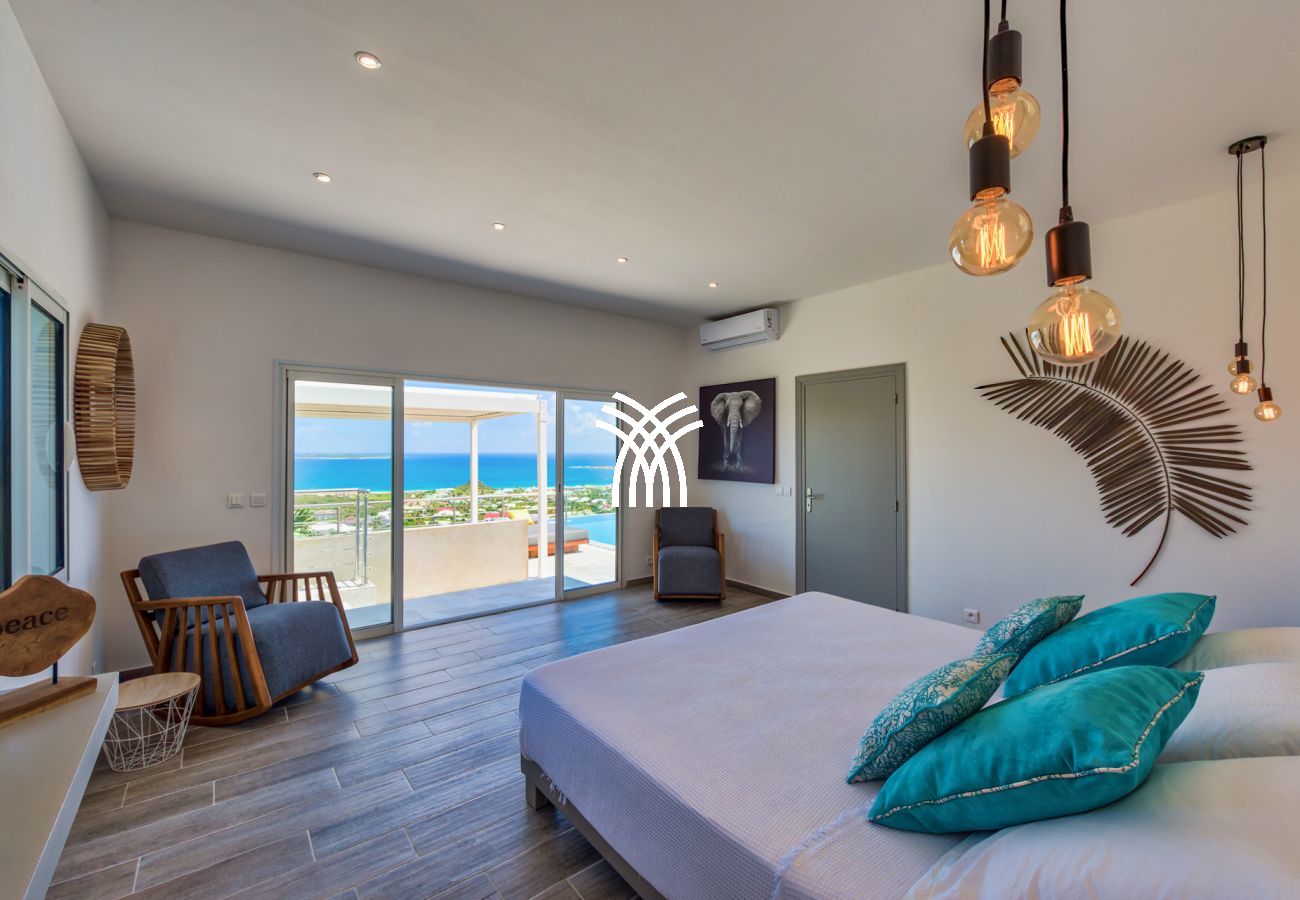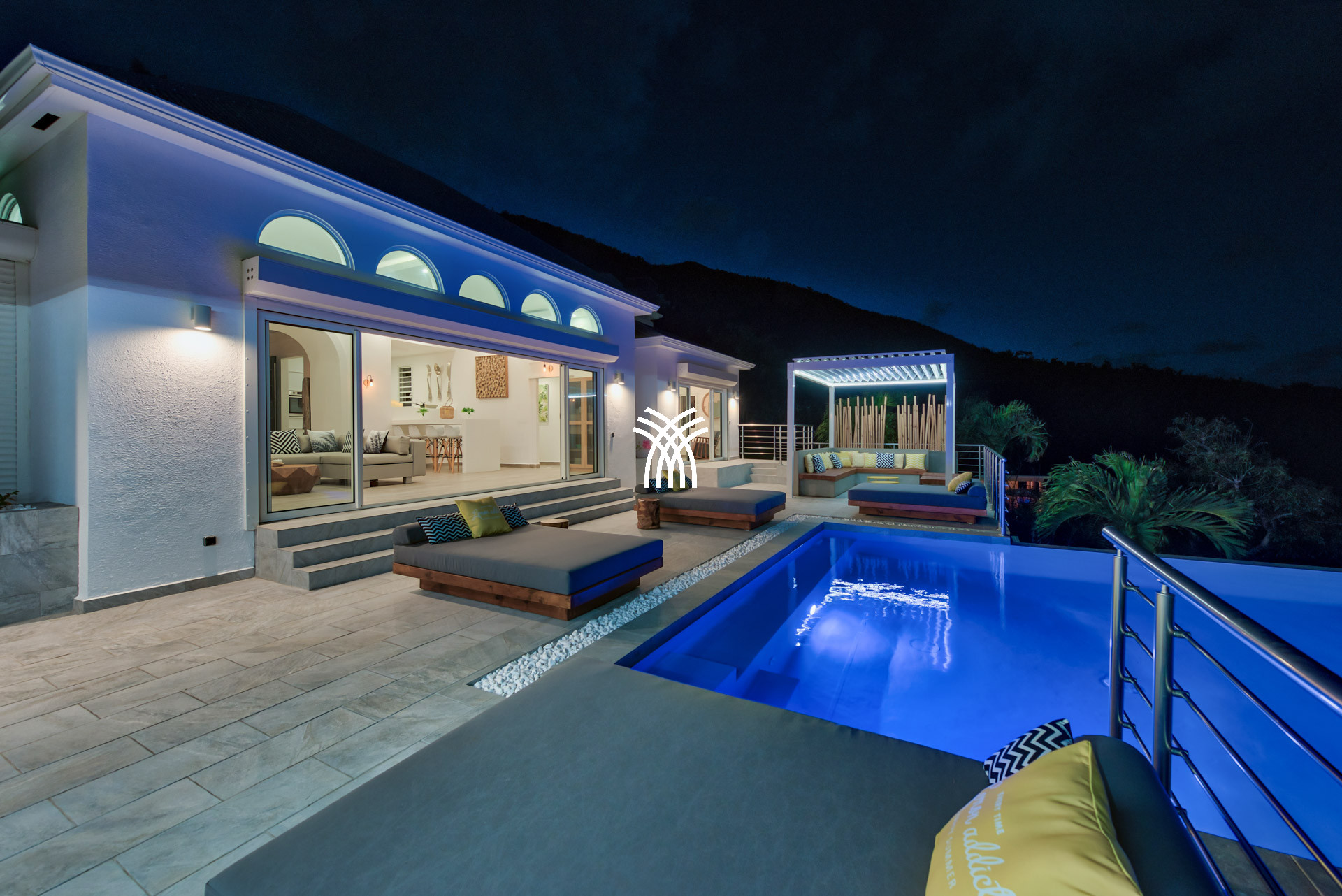 Villa Karukera St Martin, location de vacances moderne de 4 chambres et 4 salles de bains, est située sur les hauteurs de la Baie Orientale.
