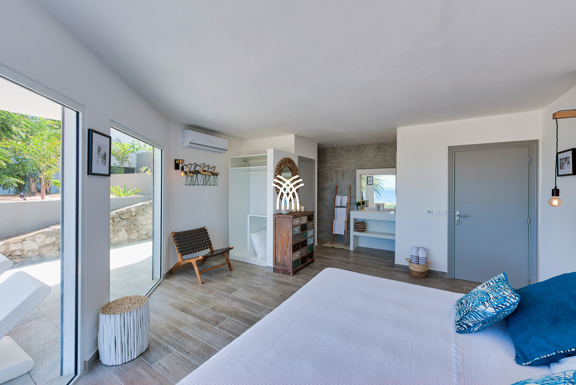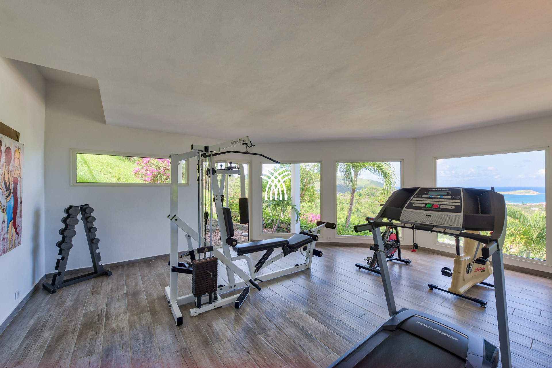 Les 4 chambres sont accessibles de l’intérieur de la villa entièrement climatisée ainsi qu'une salle de sport avec vue sur la mer.